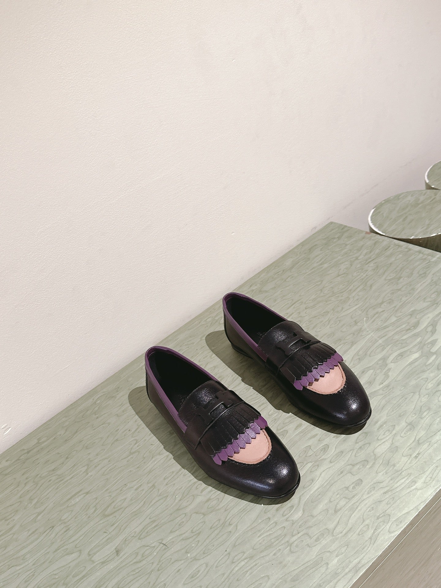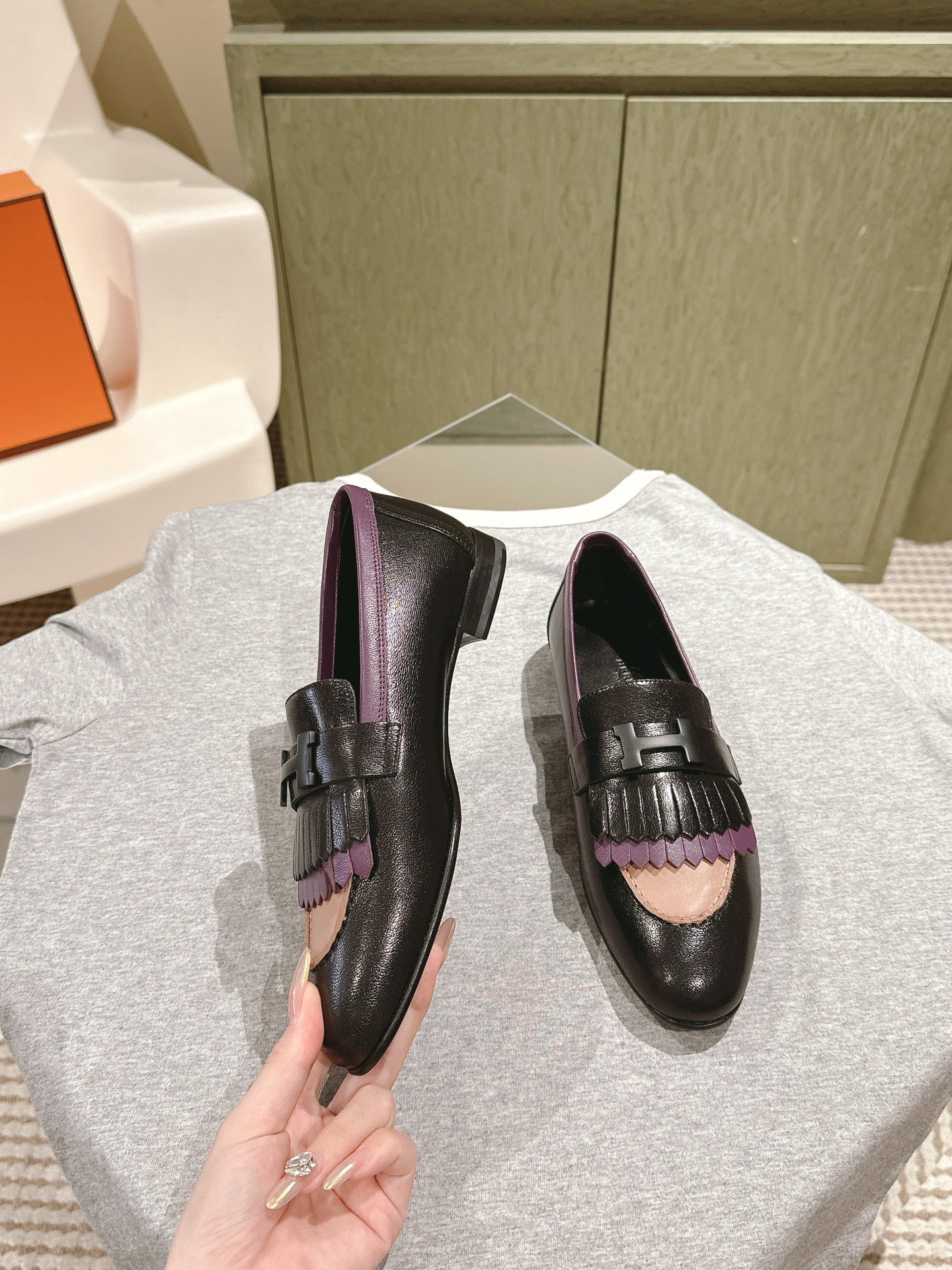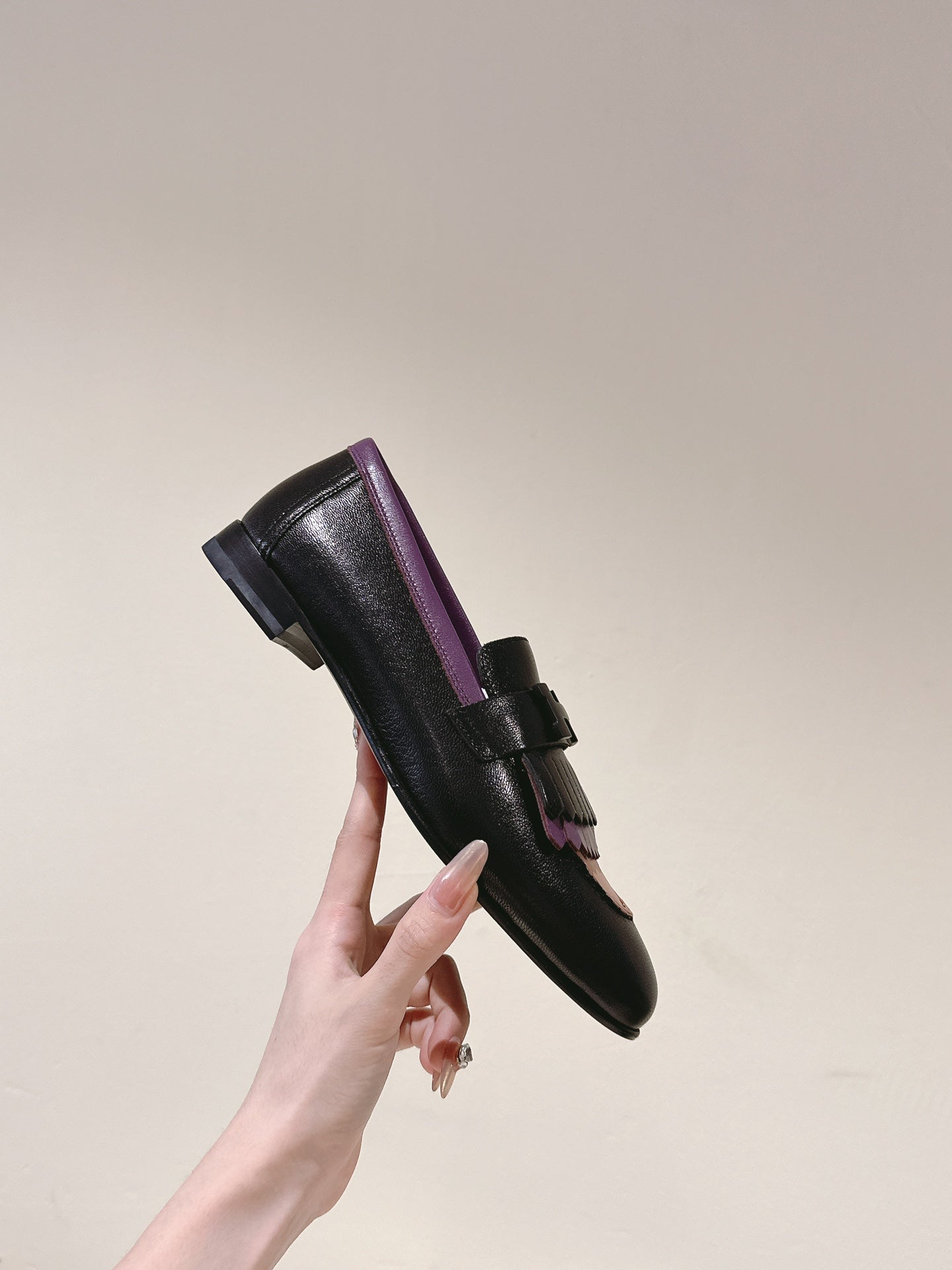 HM Mocassins Royal Loafers Black Purple Sheepskin 445012