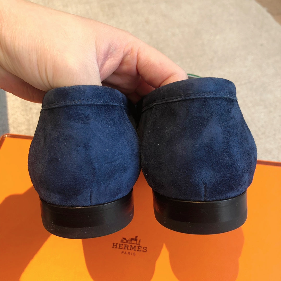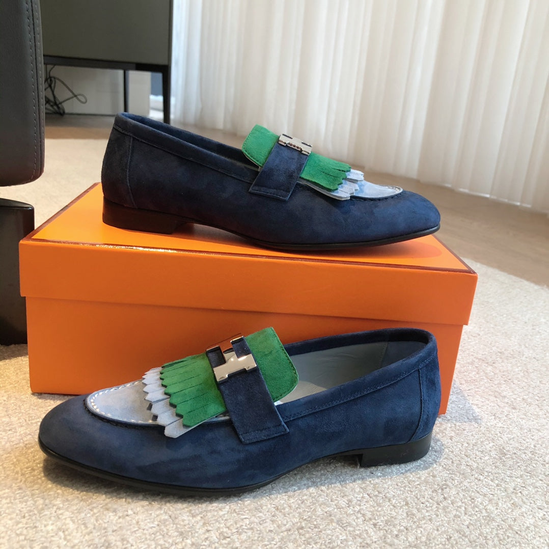 Royal Loafer Blue Mix Gren and Baby Blue Suede Calfskin With Fringe Detail And Silver Signature Buckle 509434