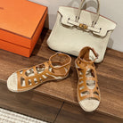 STRAW SOLE SANDAL CARAMEL LAMBSKIN