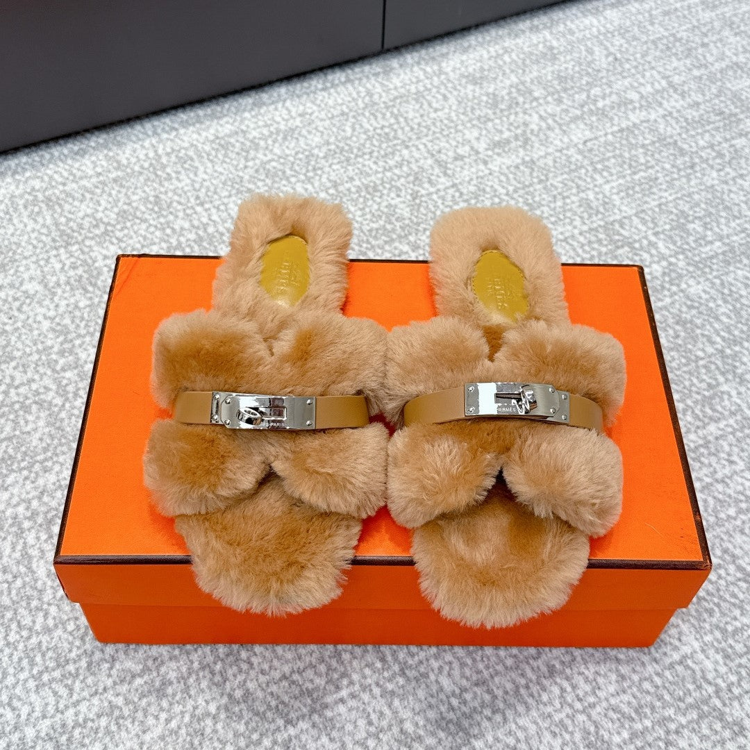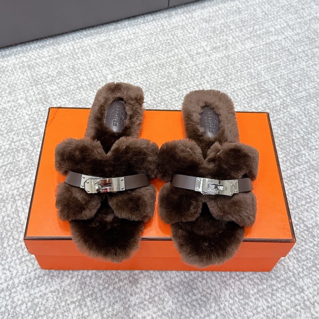HM 25ss Oz Mule Brown Goatskin And Shearling 461944