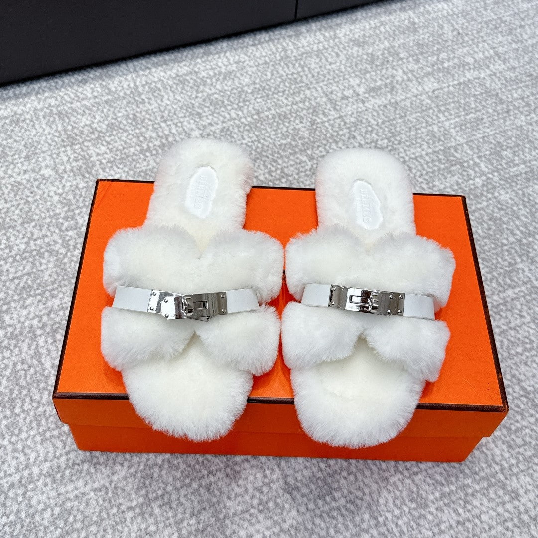 HM 25s H Shaped Slipper with Buckle White Shearling 462195