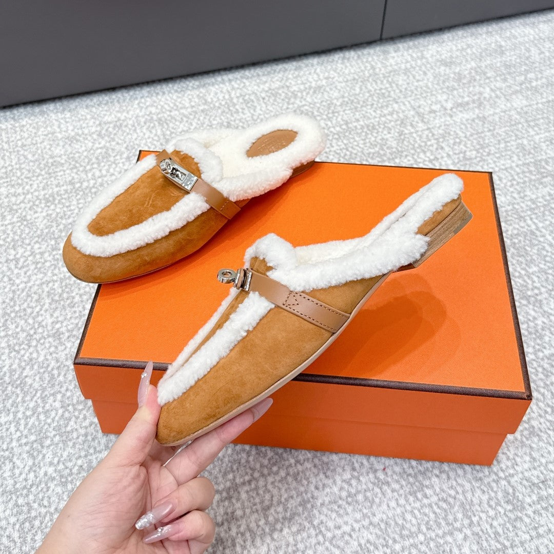 HM 25ss Oz Mule Brown Suede And Shearling 461940
