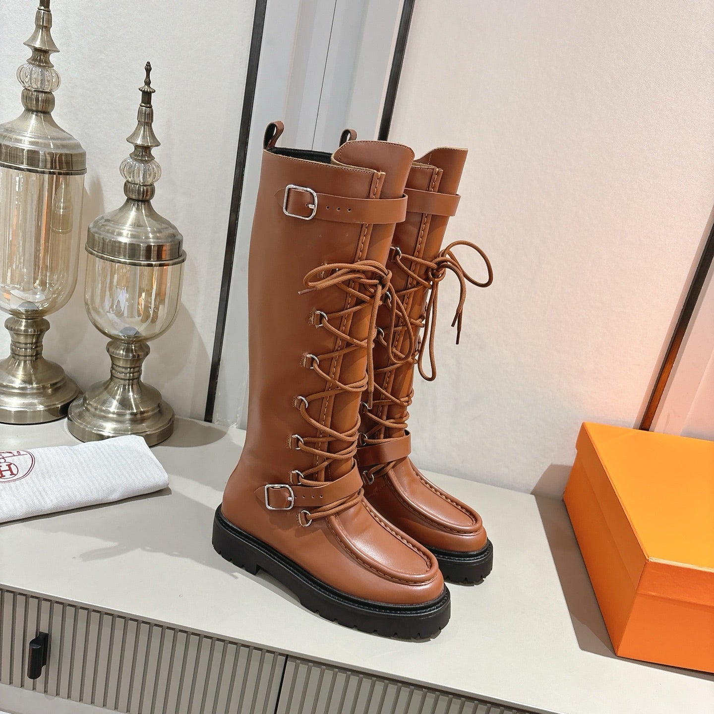 HM Lace Up Boots 25mm Belt Buckle Caramel Leather 466586