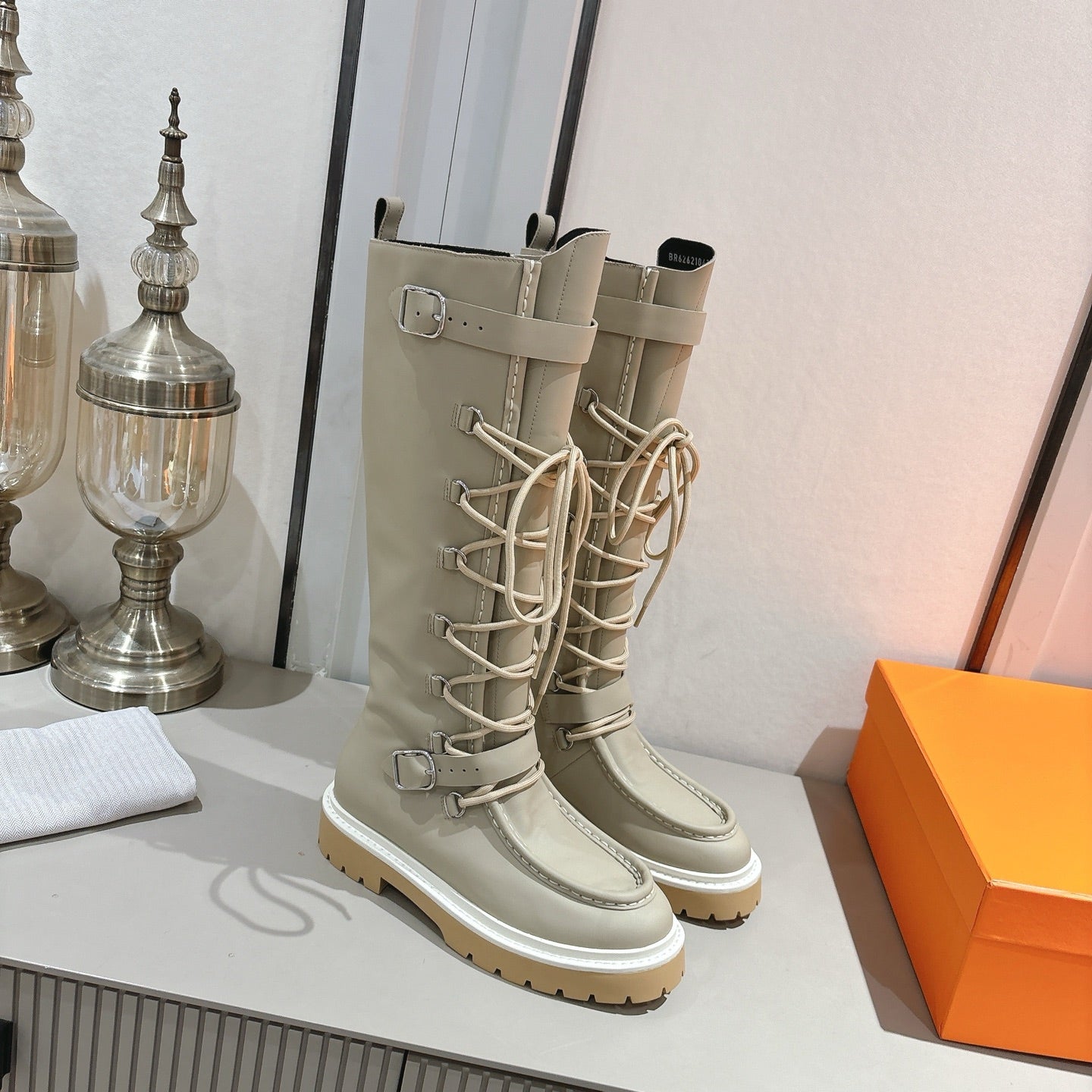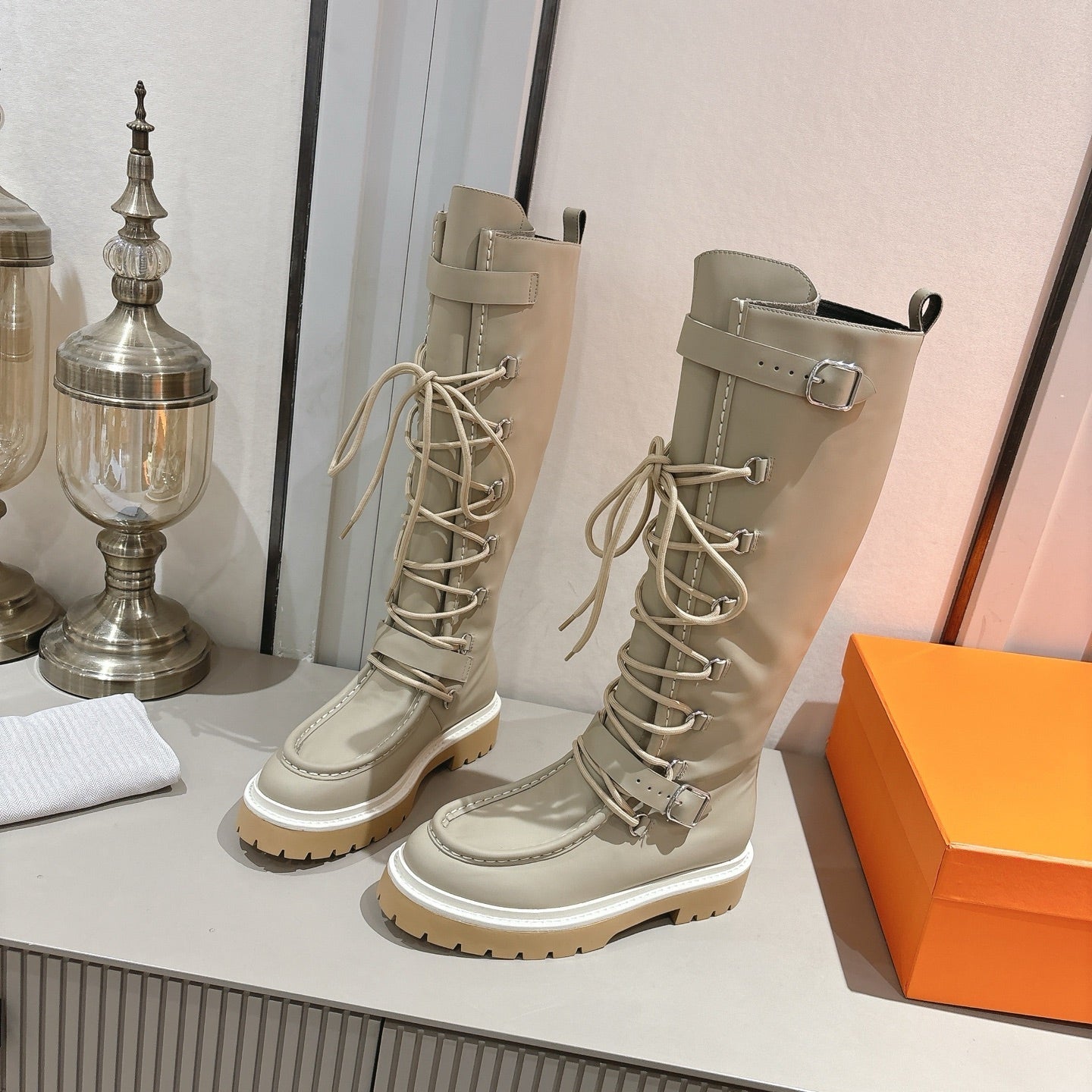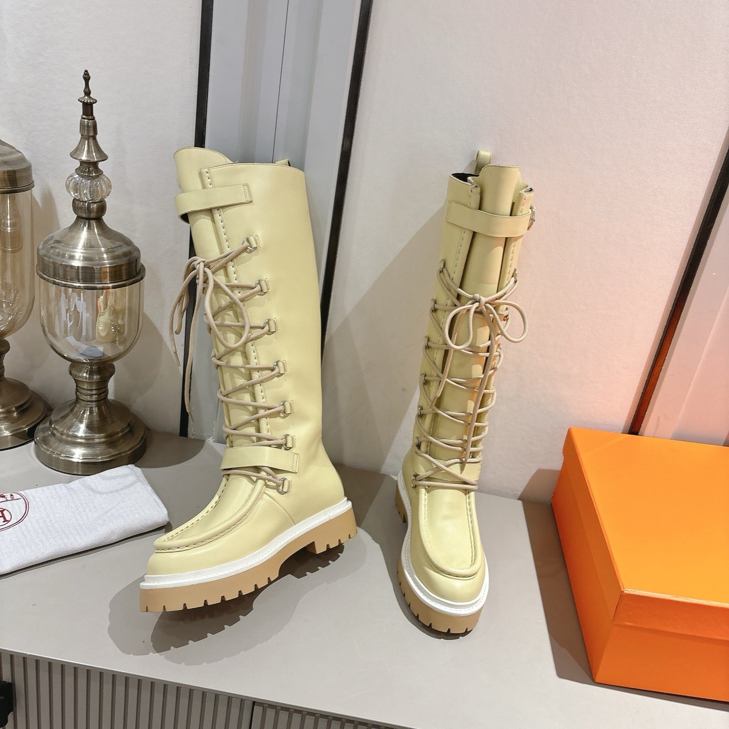 HM Lace Up Boots 25mm Belt Buckle Yellow-beige Leather 466587