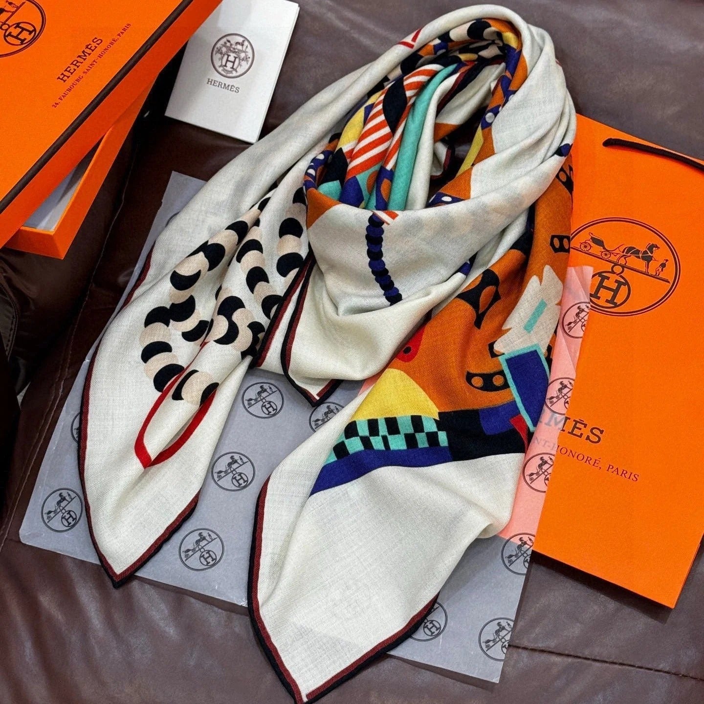 HERMES 25S SCARF 135 IN CASHMERE SILK 854593