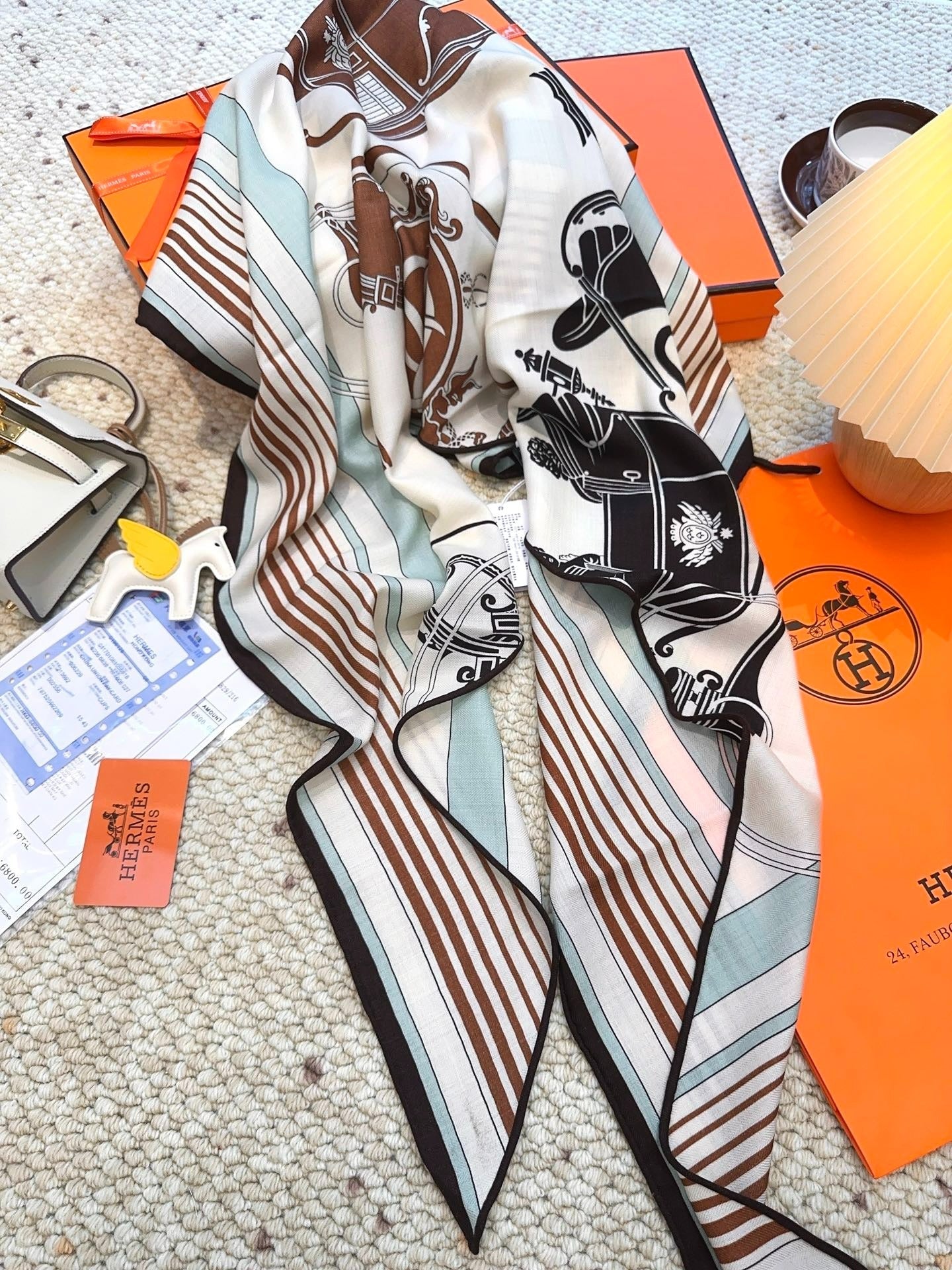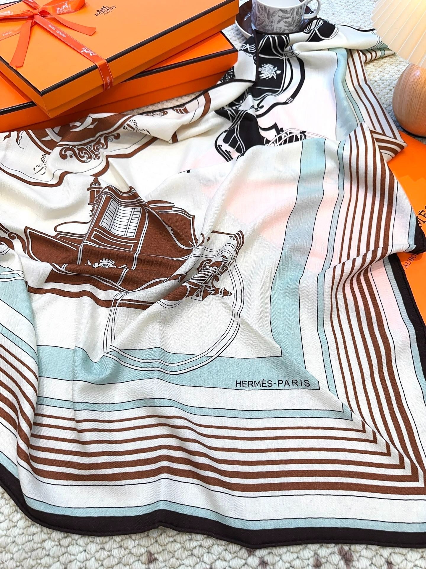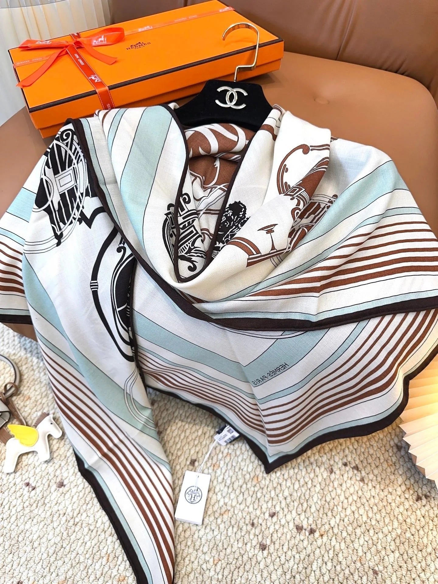 HERMES 25S SCARF 140 IN CASHMERE SILK 854529