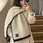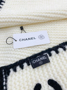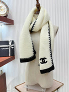 KNIT SCARF 200 CM IN WHITE CASHMERE WITH BLACK LOGO 383911