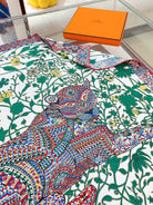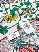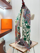 Le Jaguar Et Le Colibri Shawl 90 CM In Green Colorful Silk Twill 274208