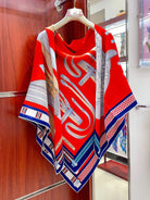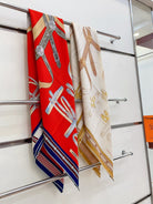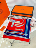 Lettres Equestres Shawl 140 CM Red Colorful Cashmere And Silk 398260
