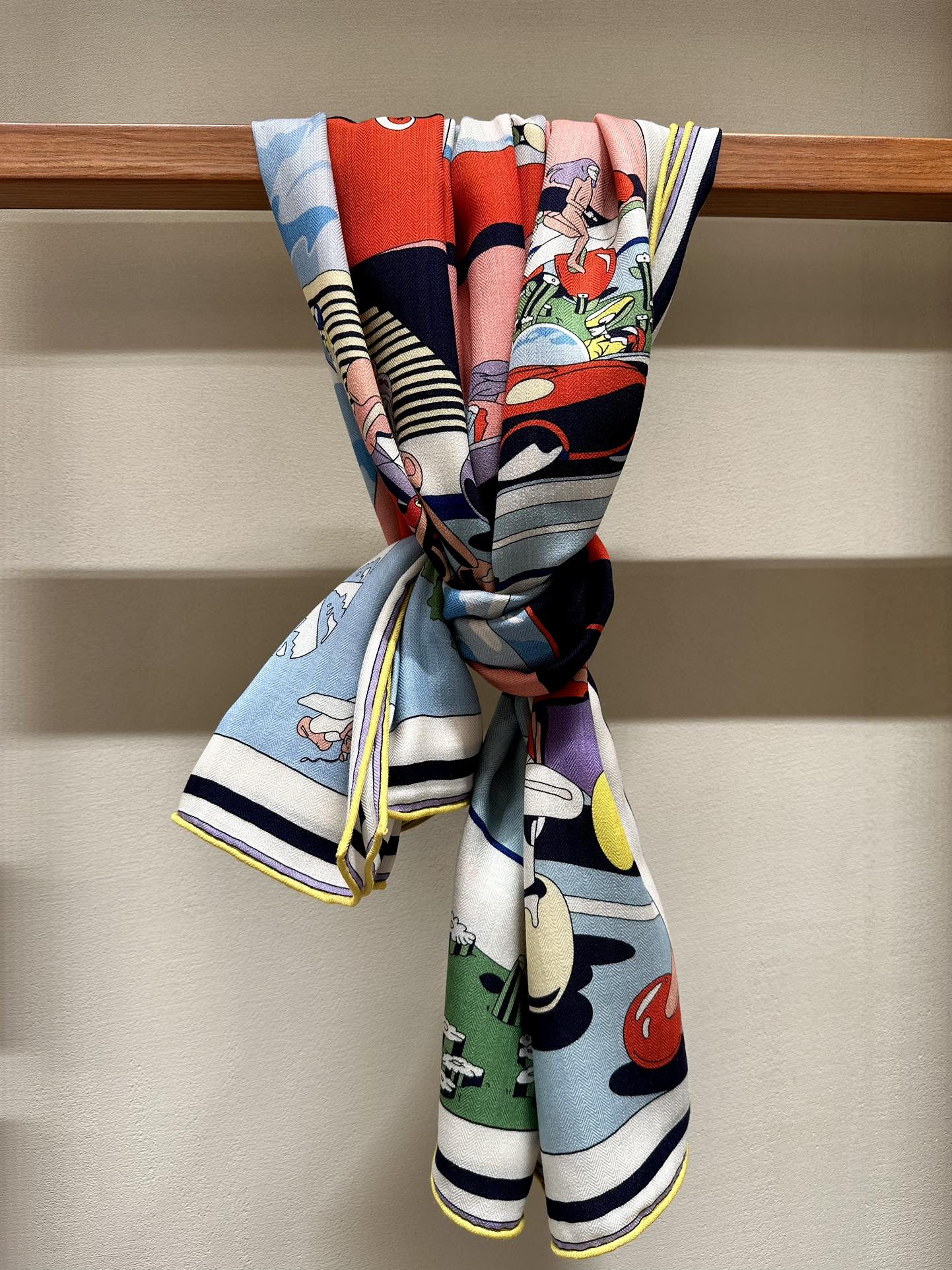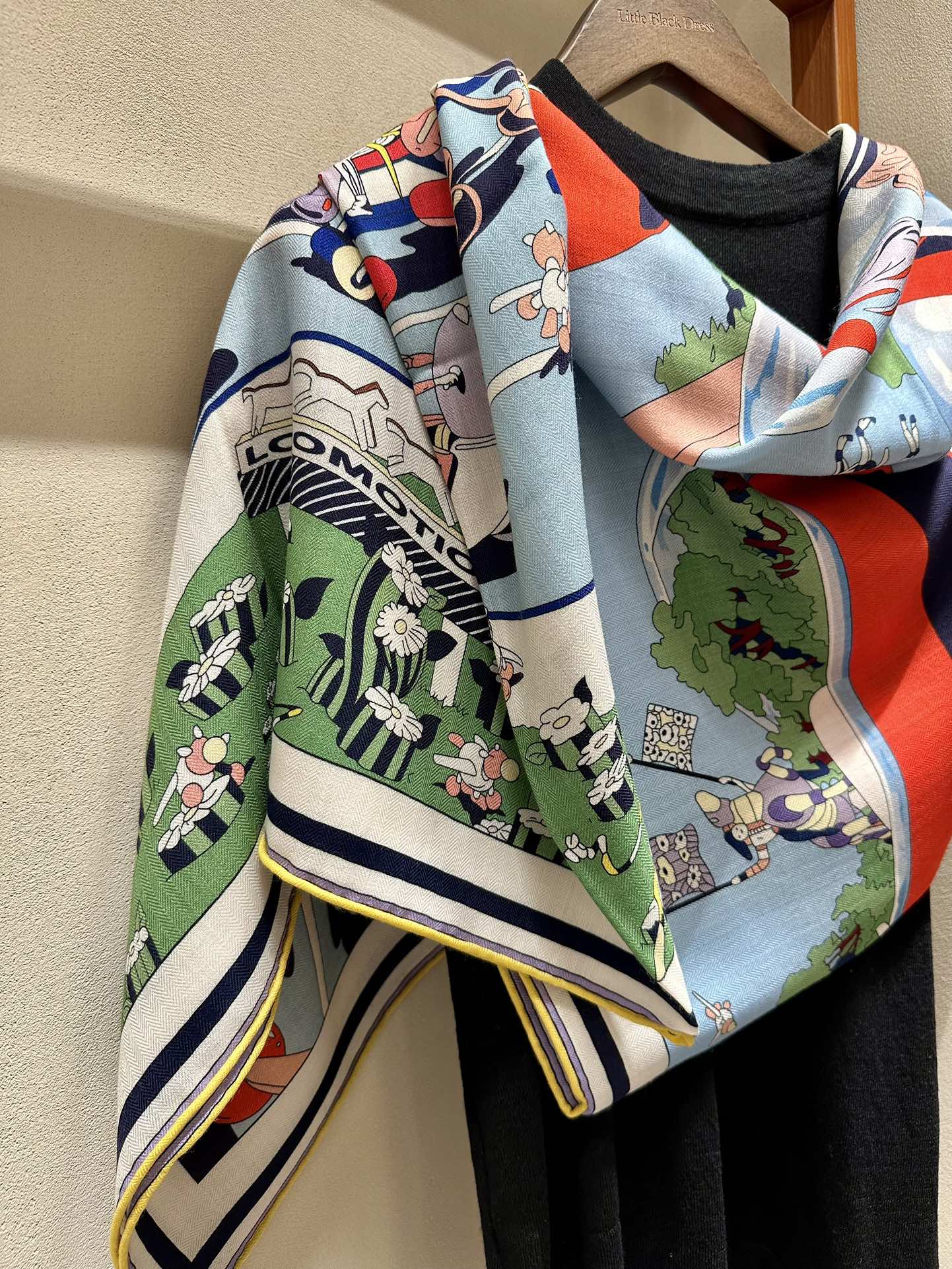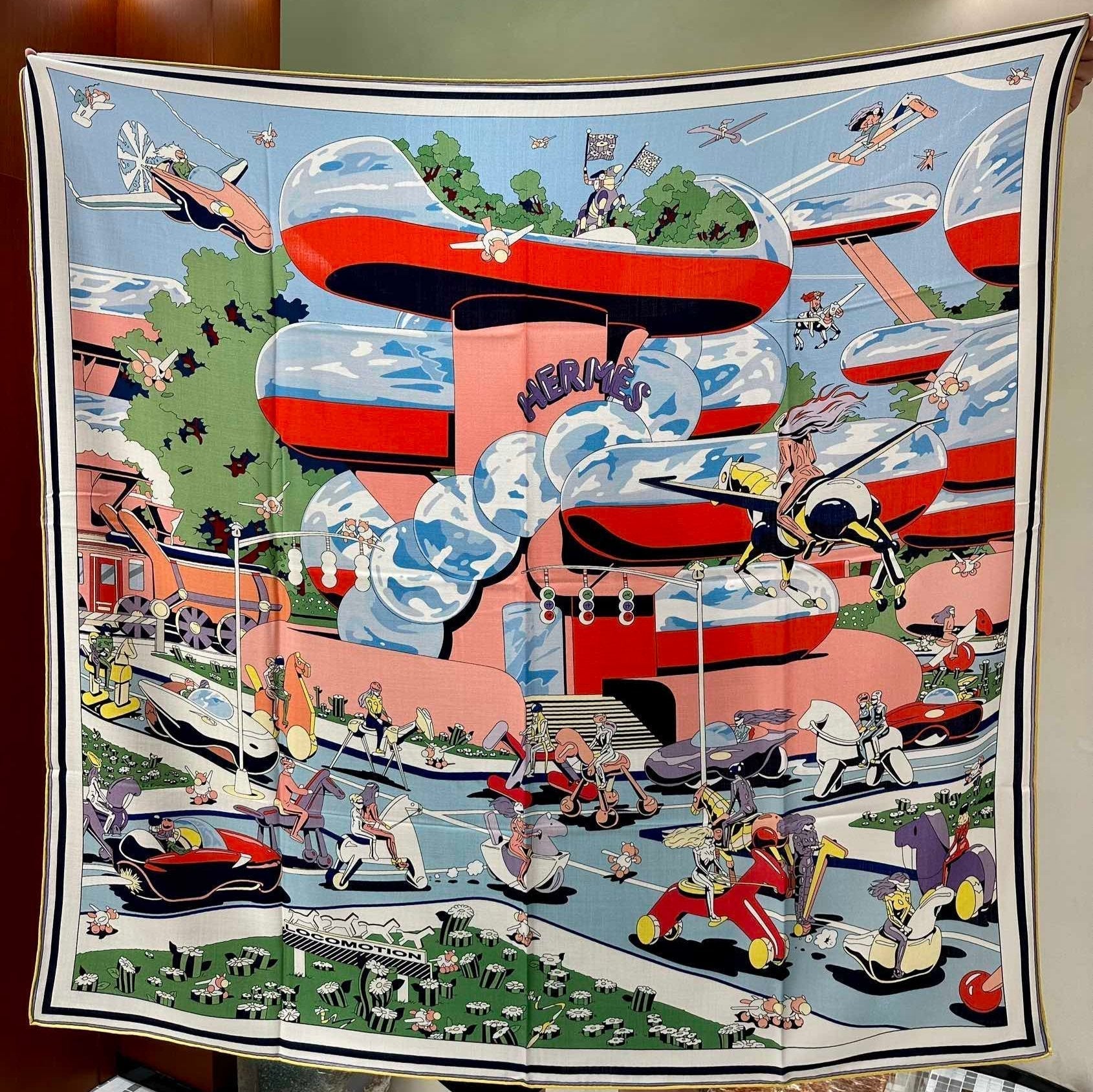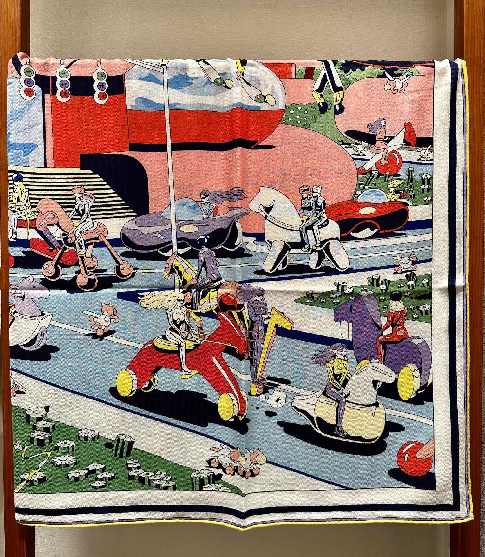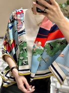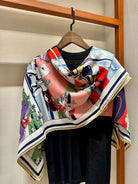 Locomotion Shawl 140 CM In Light Blue Colorful Cashmere And Silk 384147