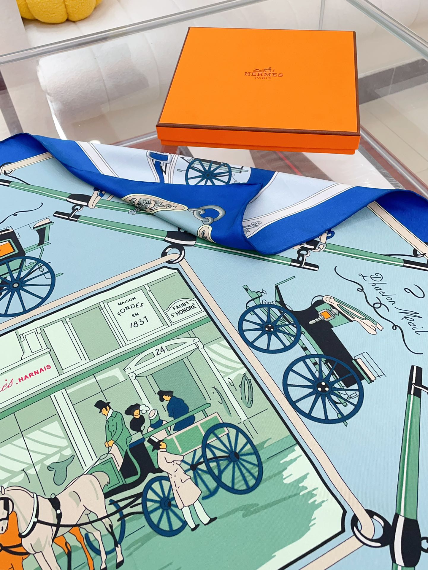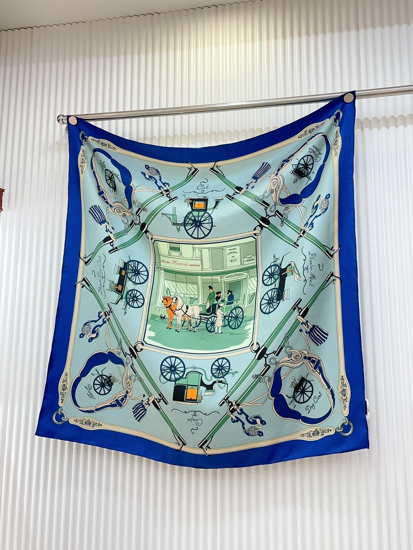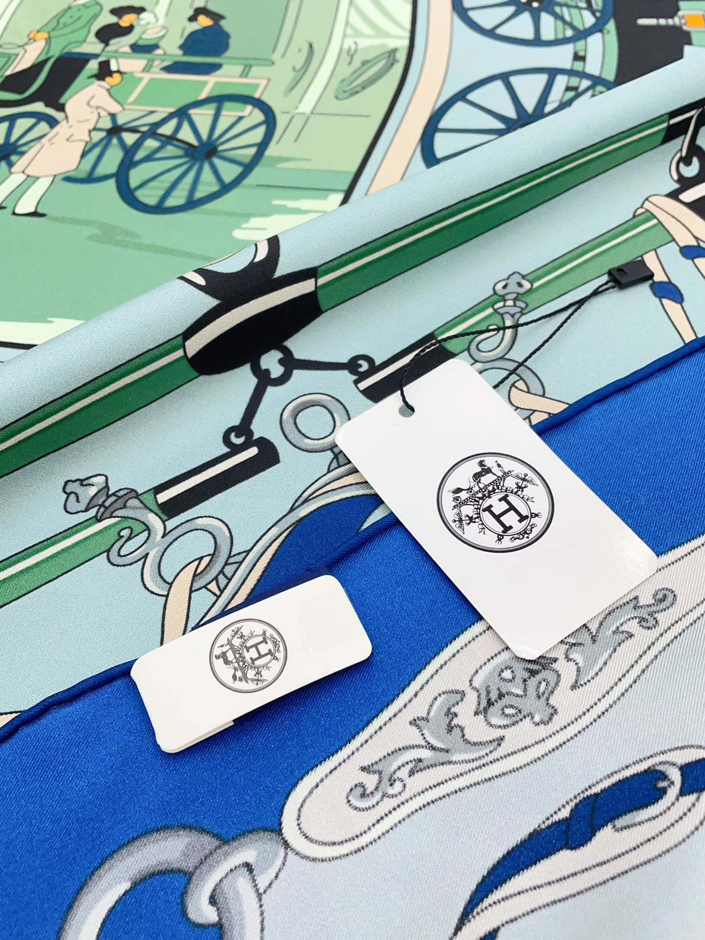 Palonniers scarf 90 CM In Light Turquoise Colorful Silk Twill 321912