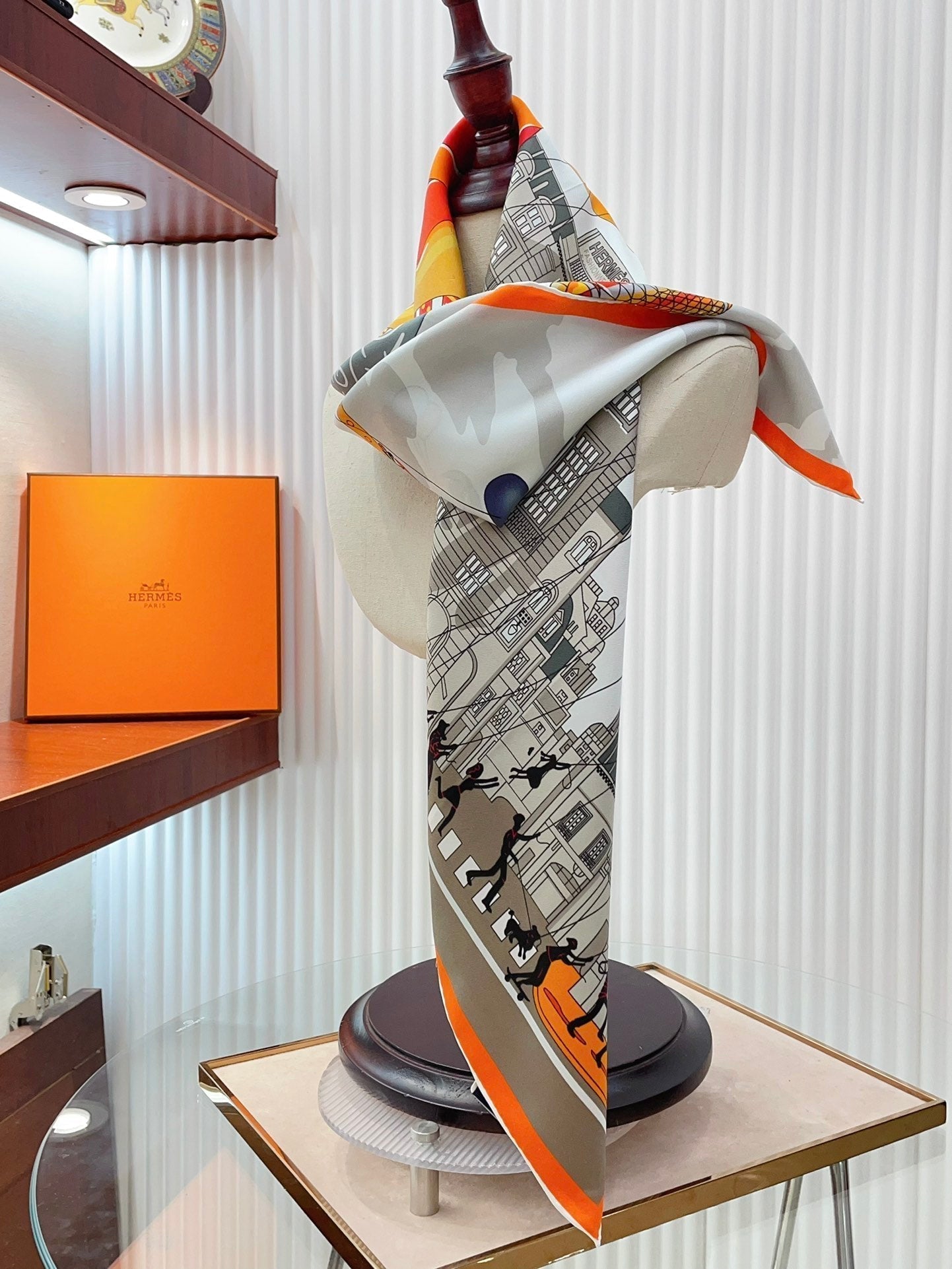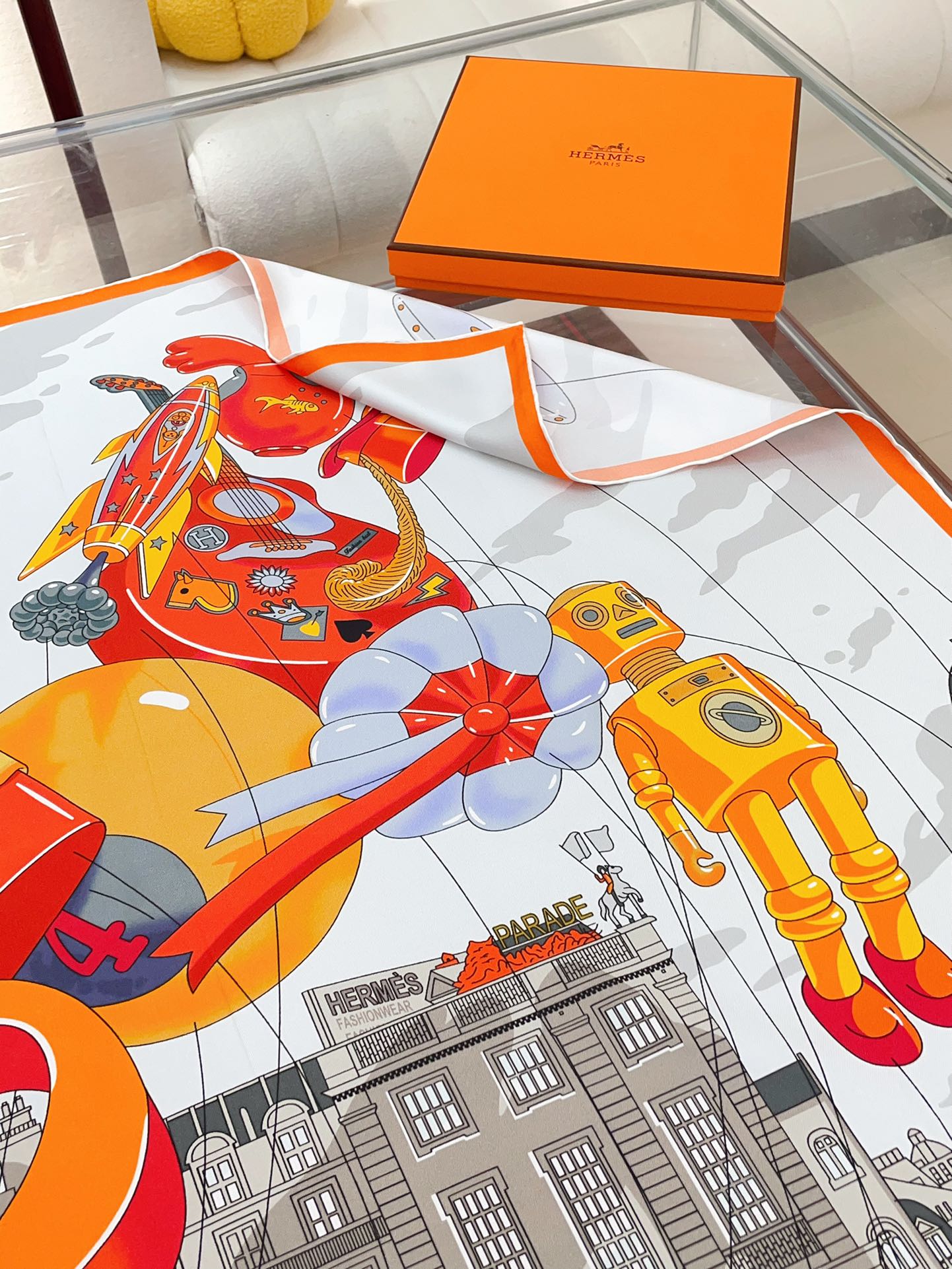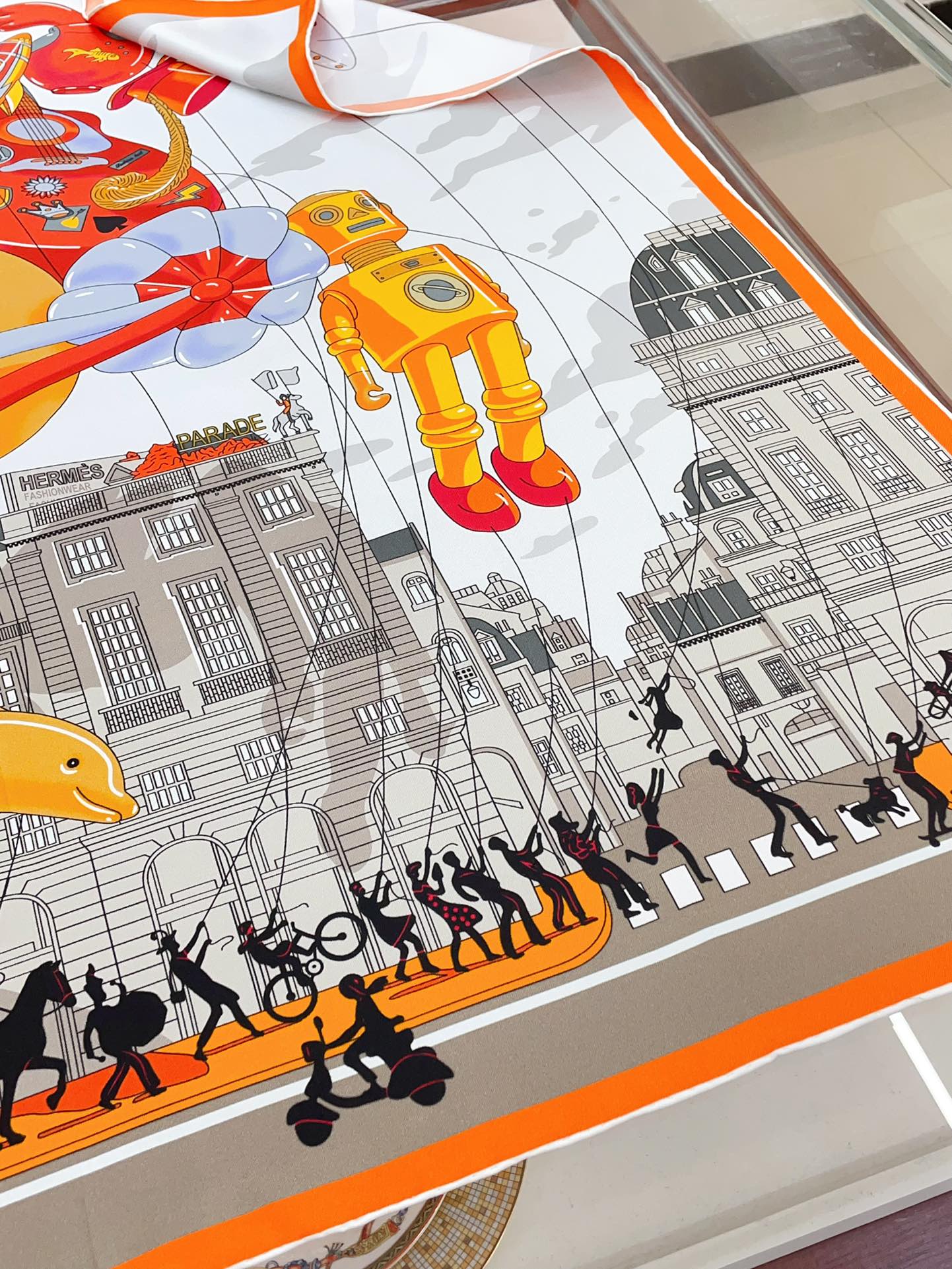 Parade Scarf 90 CM In White Grey Colorful Silk Twill 310306