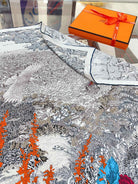 Retour A La Nature Shawl 90 CM In Grey Colorful Silk Twill 198583