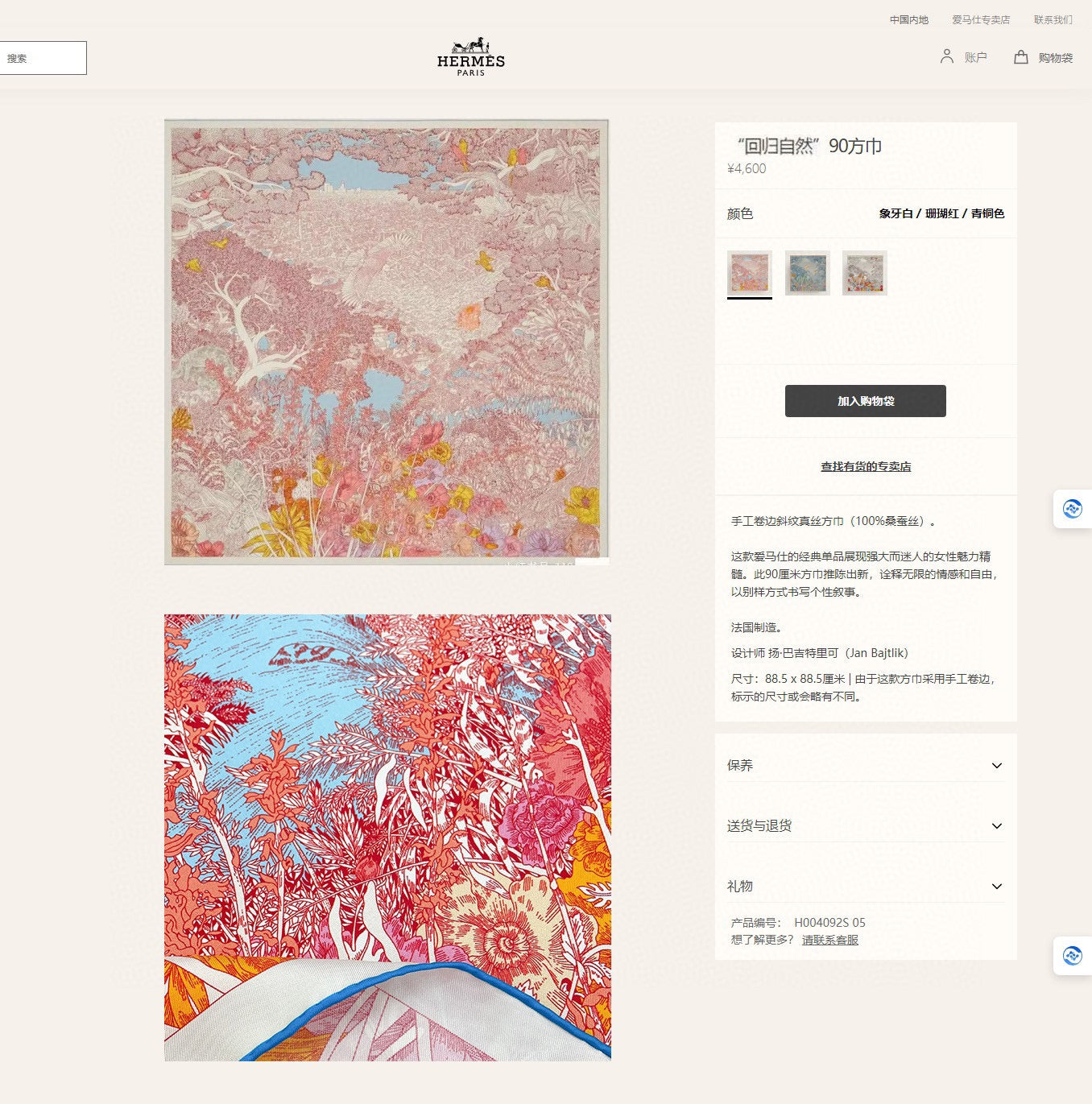 Retour A La Nature Shawl 90 CM In Pink Colorful Silk Twill 198584