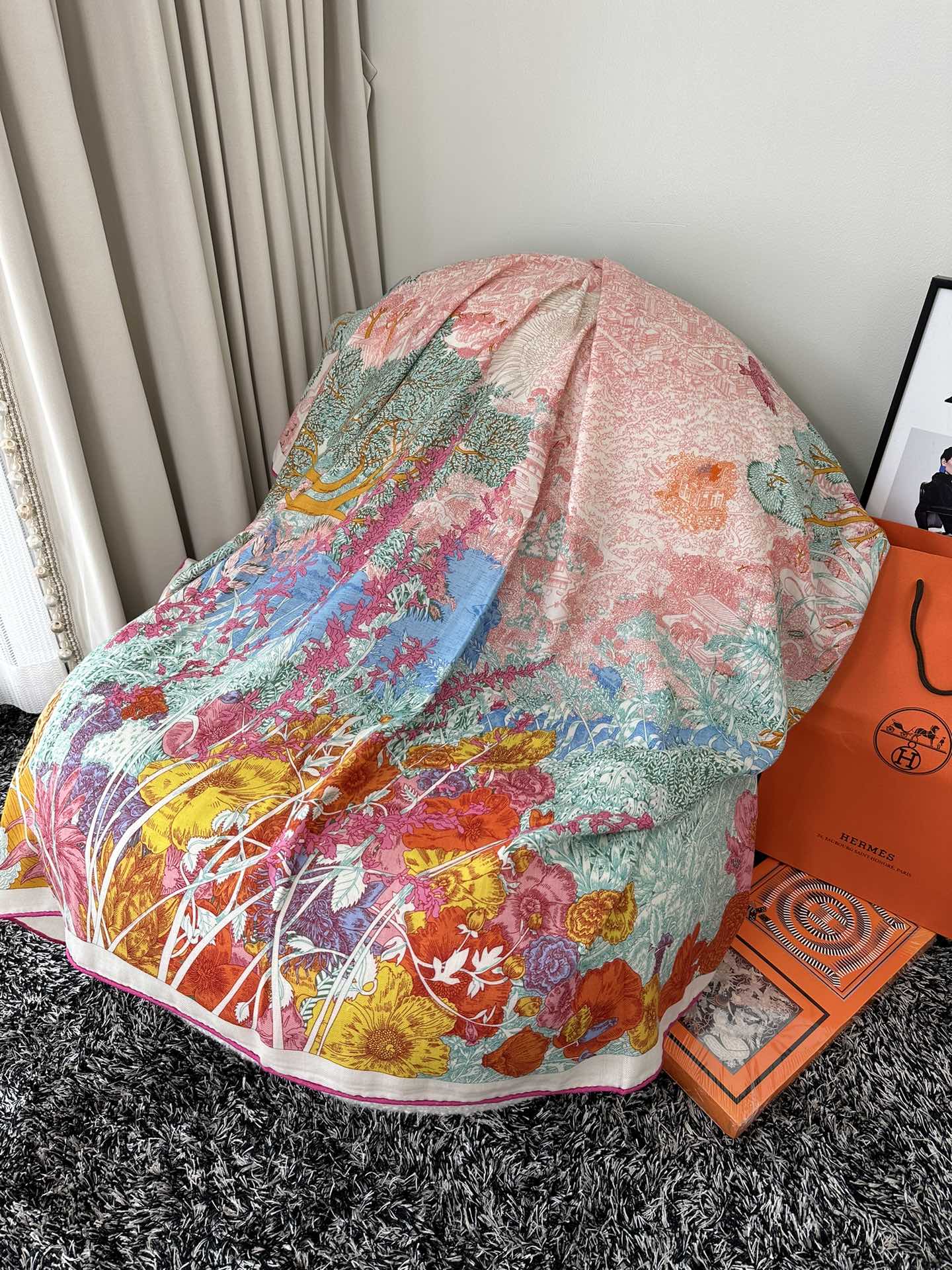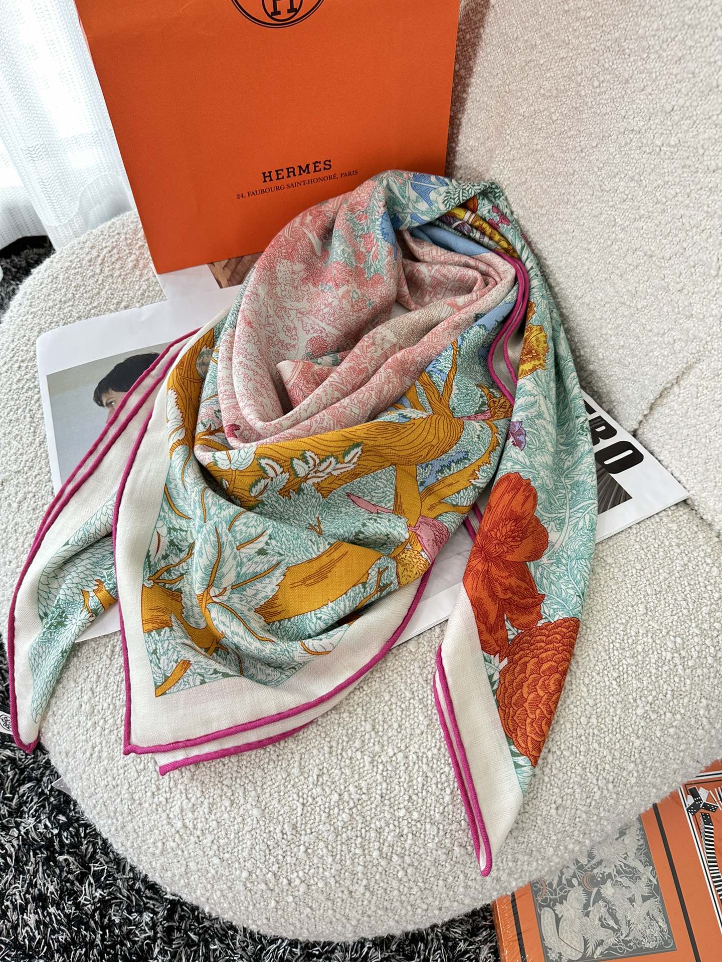 Retourala Nature Hermes Scarf 140 CM Turquoise Colorful Silk