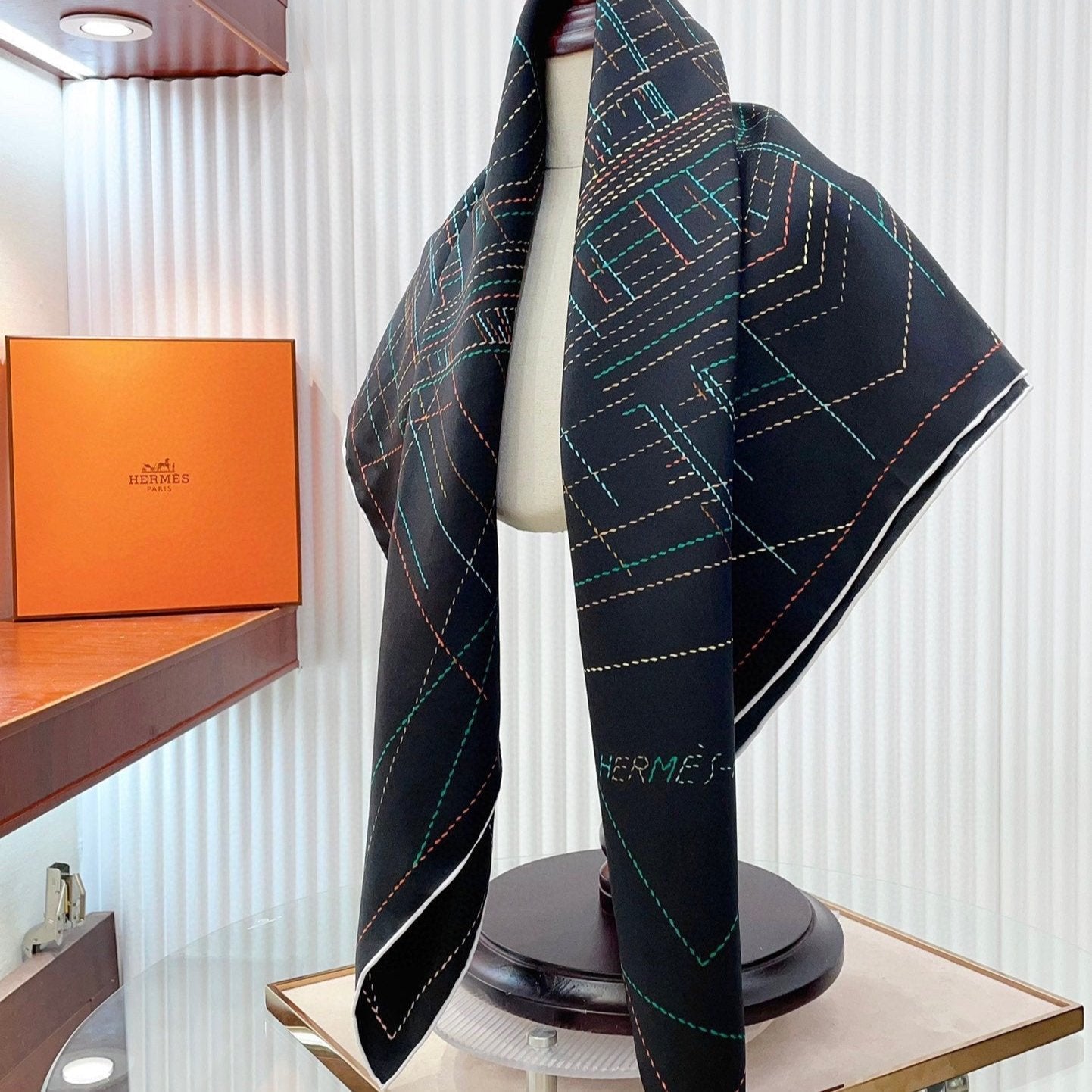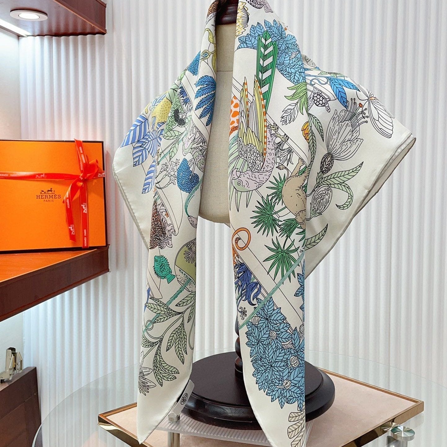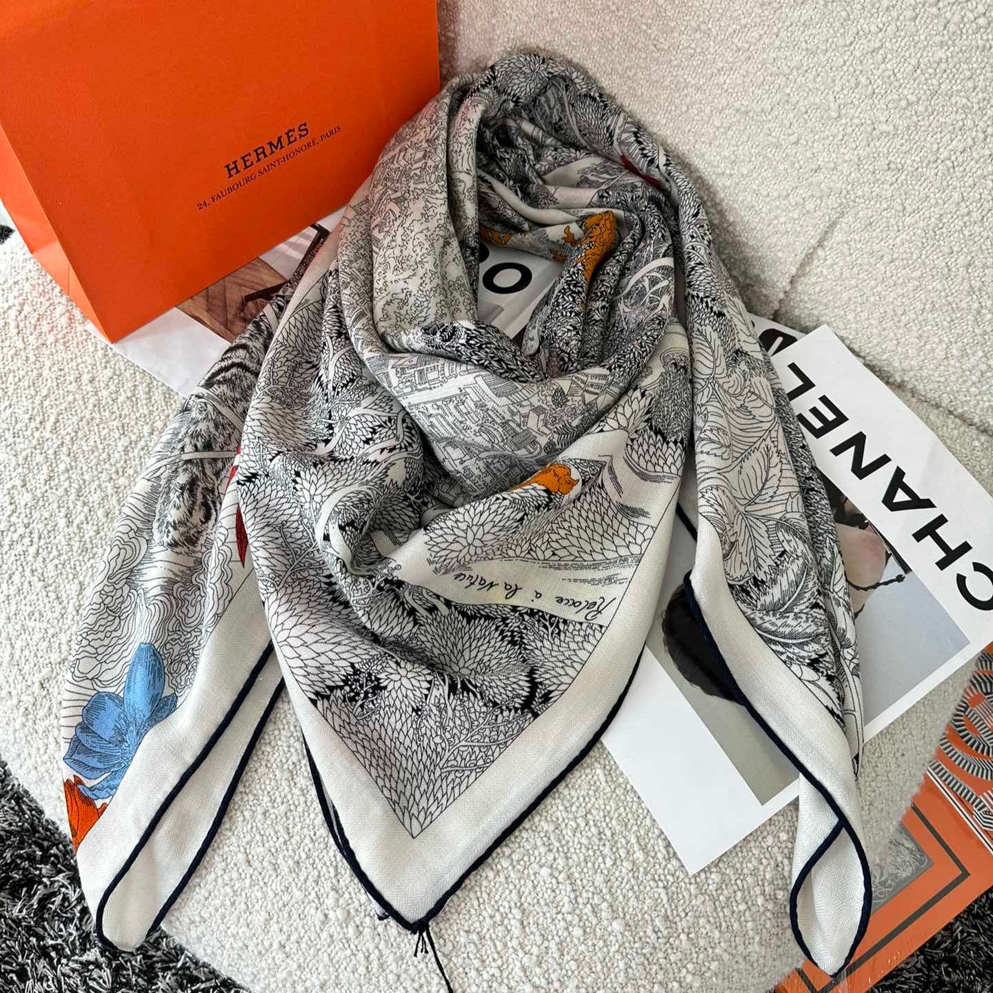 Retourala Nature Hermes Scarf 140 CM White Black Colorful Silk