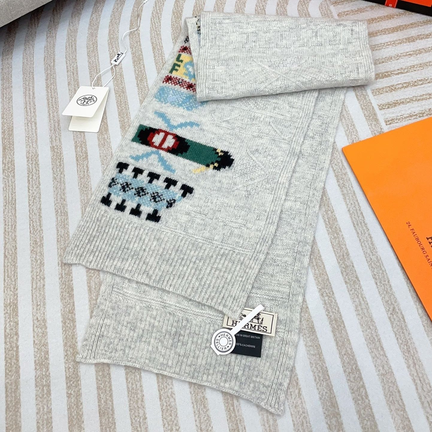 Scarf 180 CM Beige Mix Grey White Cashmere Knit 398251