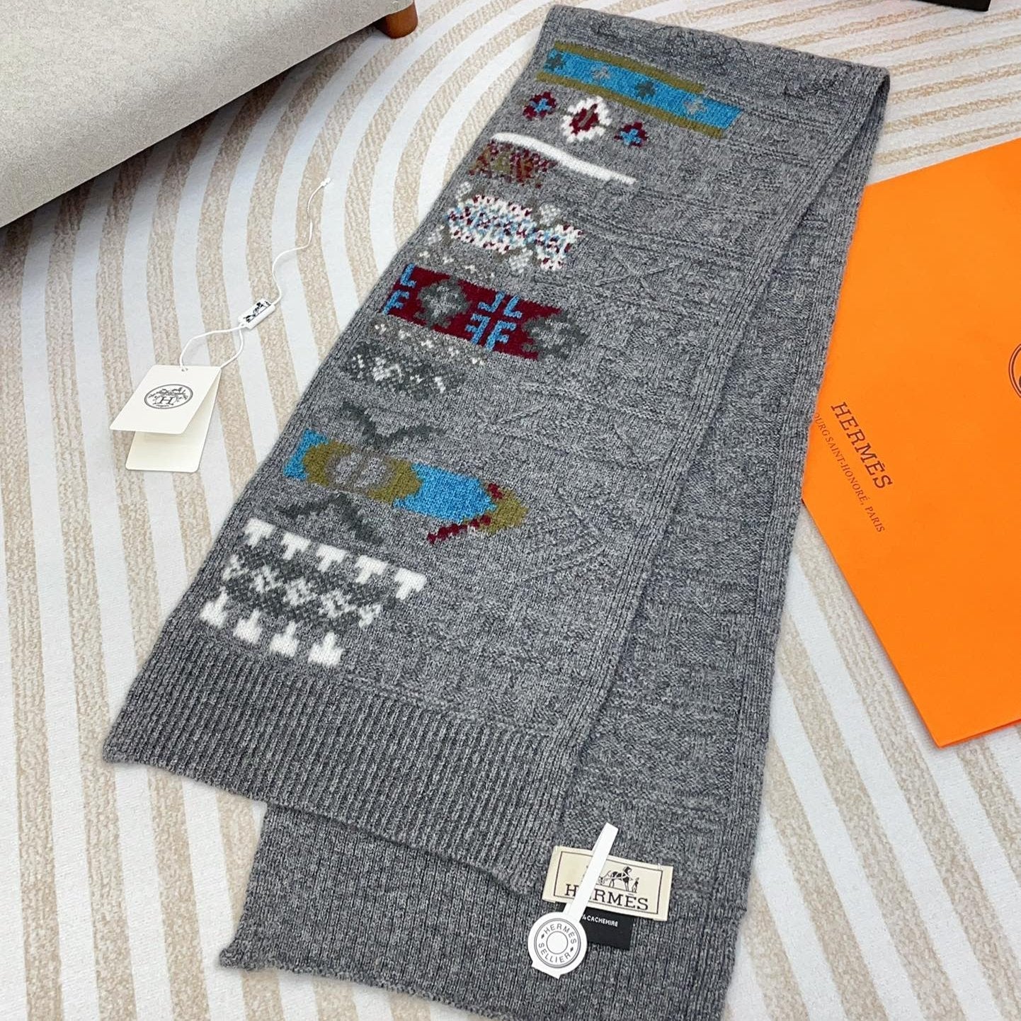 Retourala Nature Hermes Scarf 140 CM Green Gray Colorful Silk