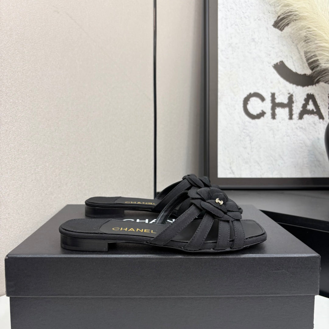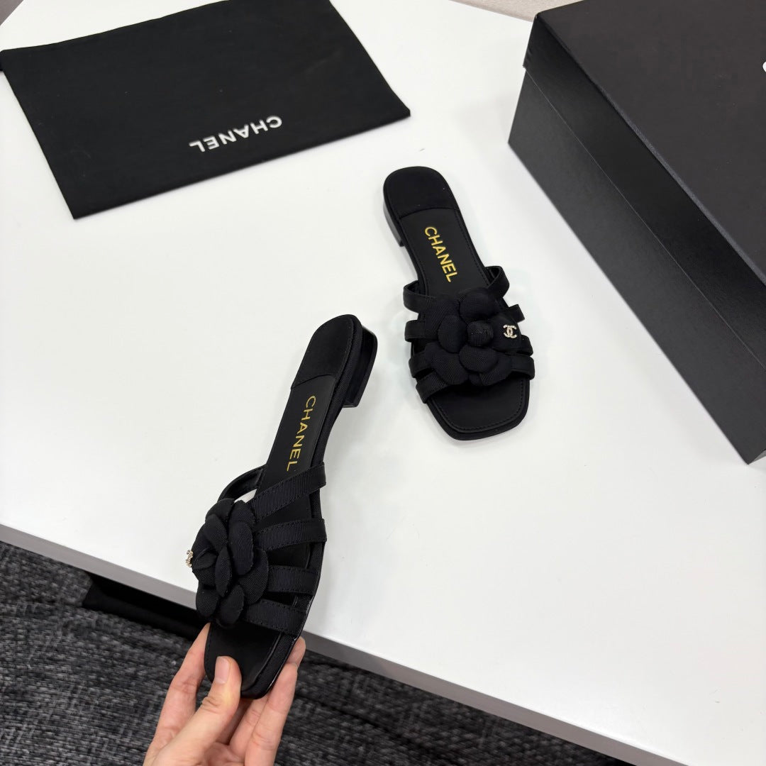 CC 25 Camellia Open Flat Mule Black Sheepskin And Fabric 368850