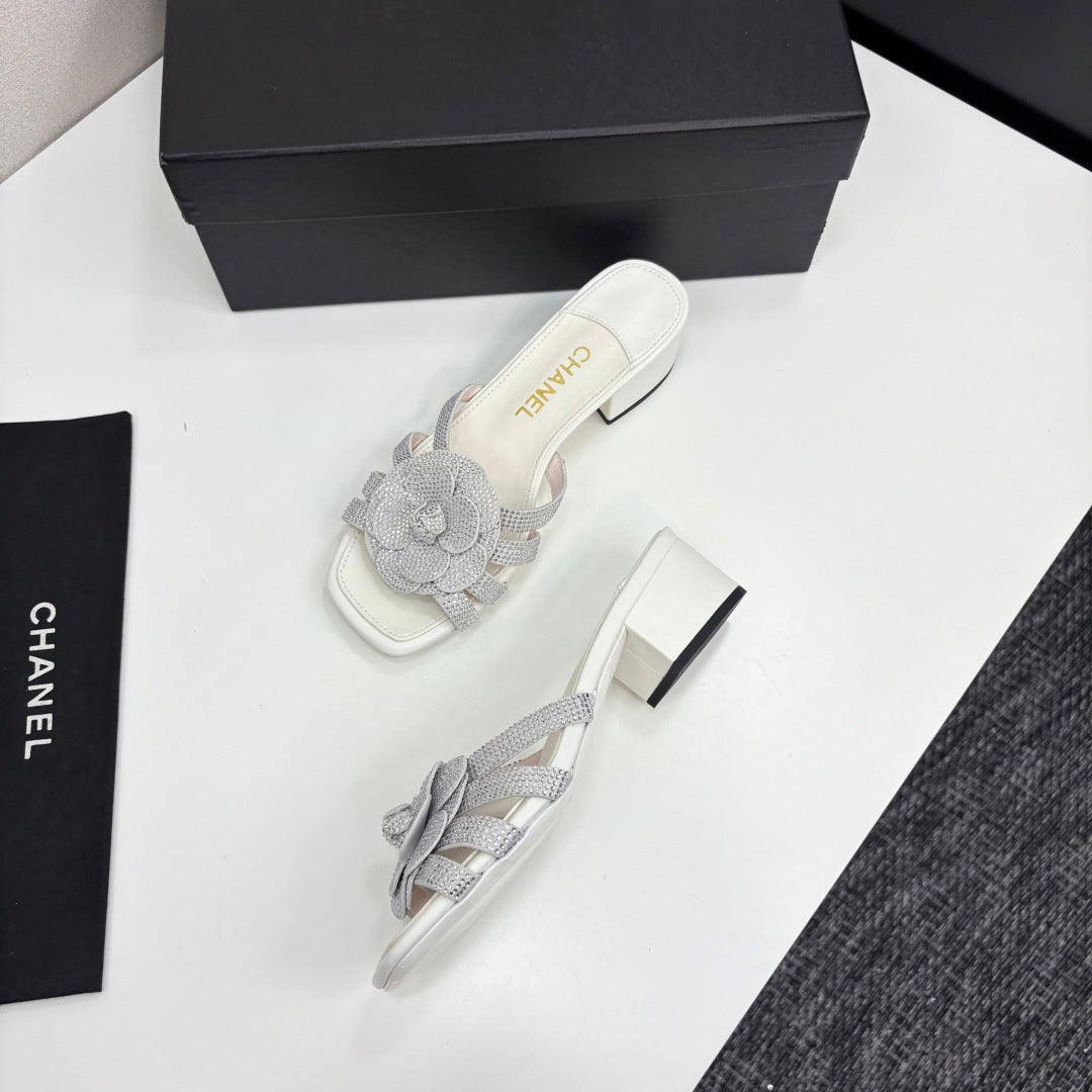 CC 25 Camellia Open Heel Mule Sandals 50mm Silver Stone Grain And Sheepskin 368859