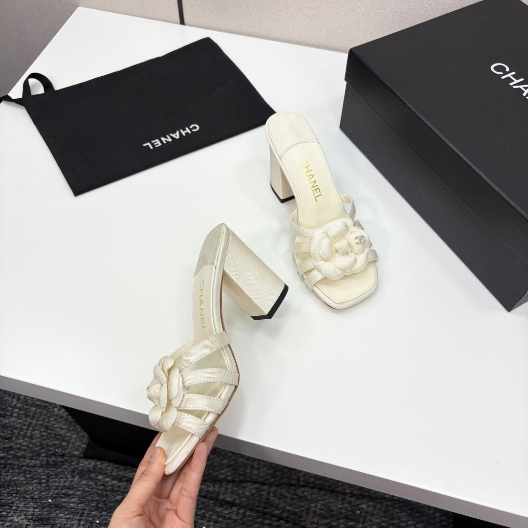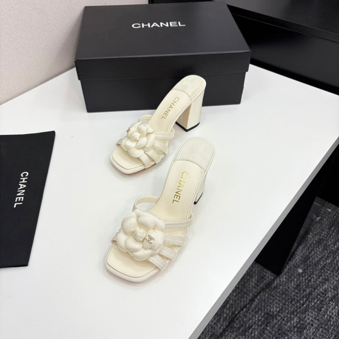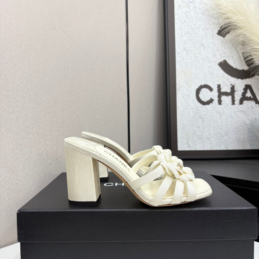 CC 25 Camellia Open Heel Mule Sandals 90mm Ivory Sheepskin And Fabric 368840