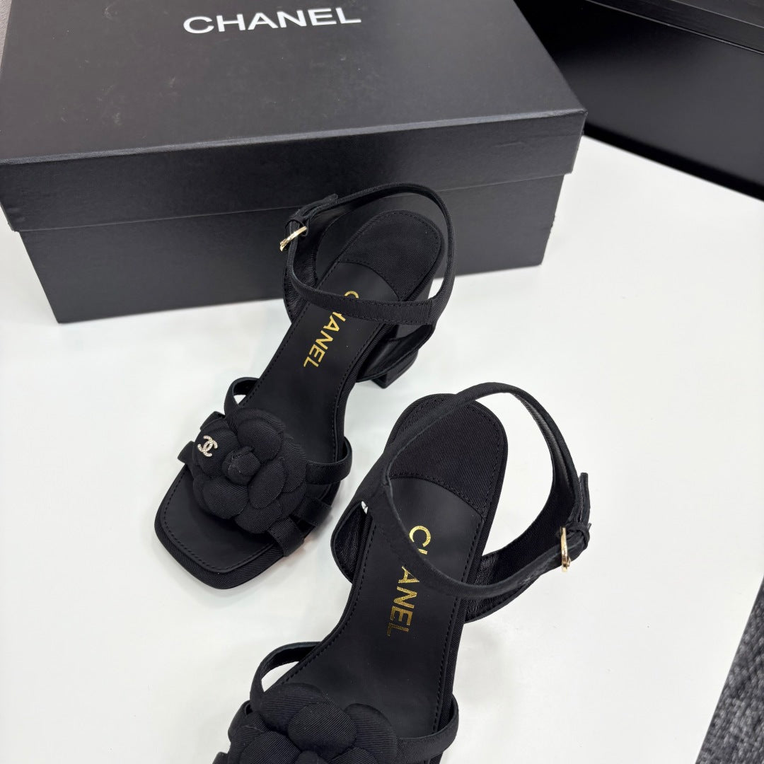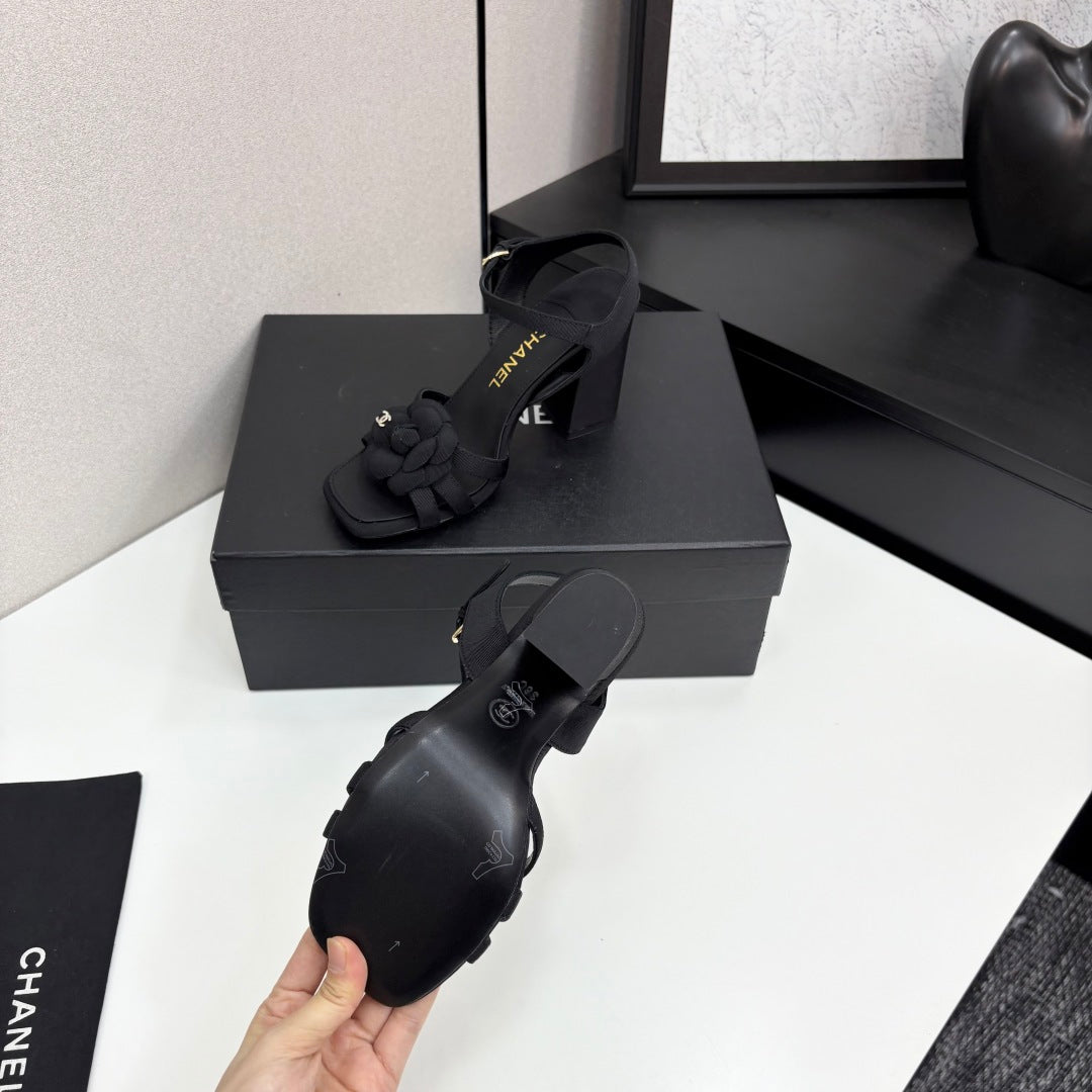 CC 25 Camellia Open Heel Sandals 90mm Black Sheepskin And Fabric 368819