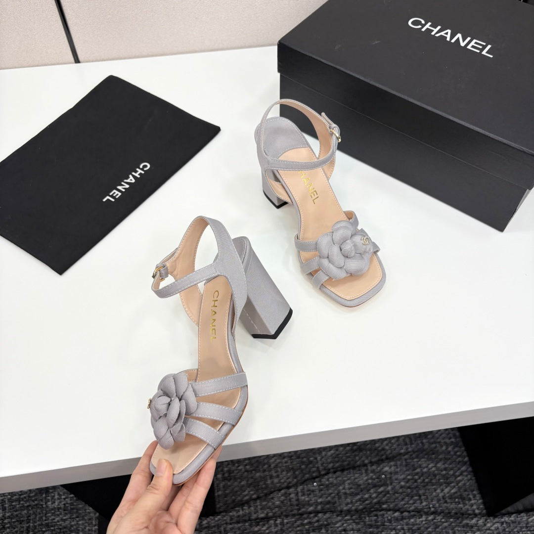 CC 25 Camellia Open Heel Sandals 90mm Grey Beige Sheepskin And Fabric 368817