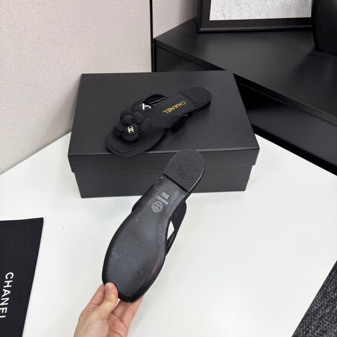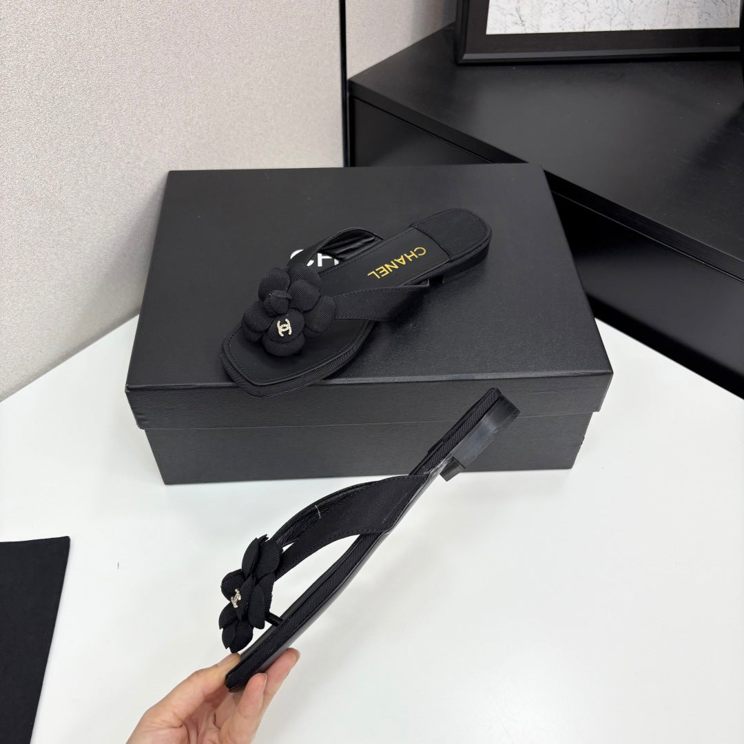 CC 25 Camellia Thong Sandals Black Sheepskin And Fabric 368838
