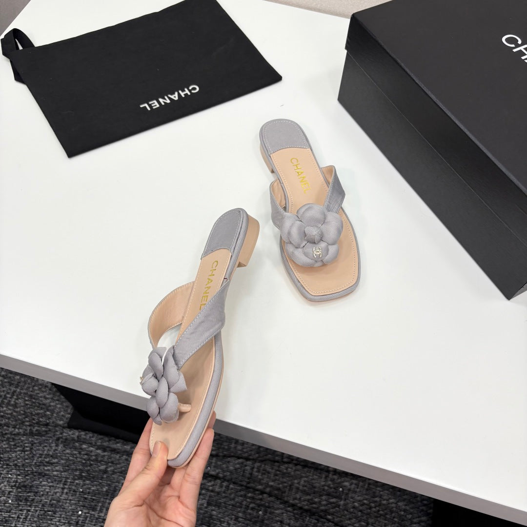 CC 25 Camellia Thong Sandals Grey Beige Sheepskin And Fabric 368837