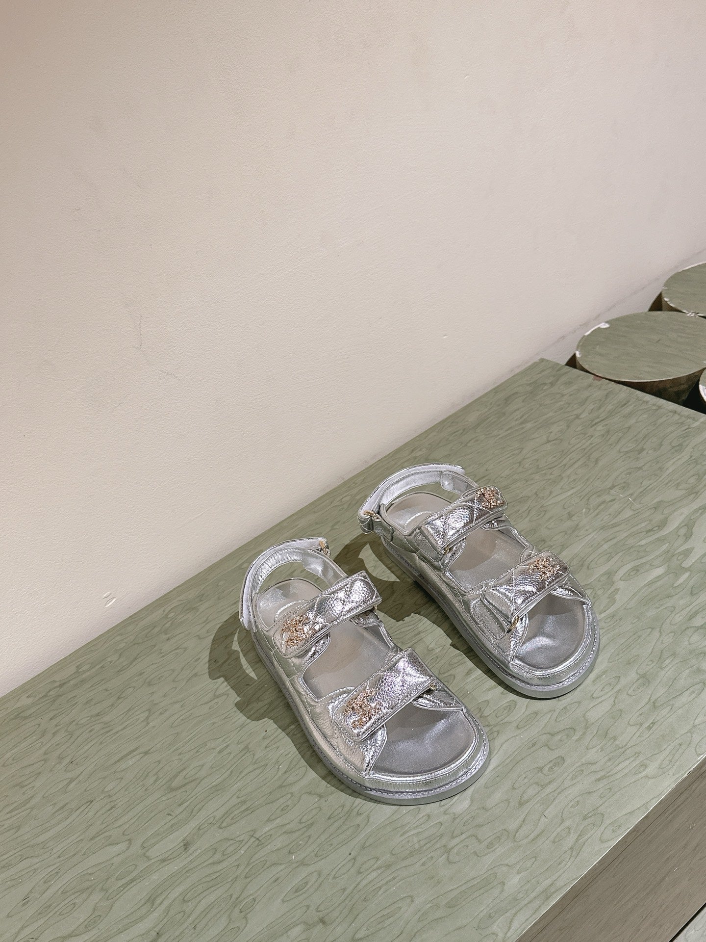 CC 25C Dad Sandals Silver Metalic Grained Calfskin 462236