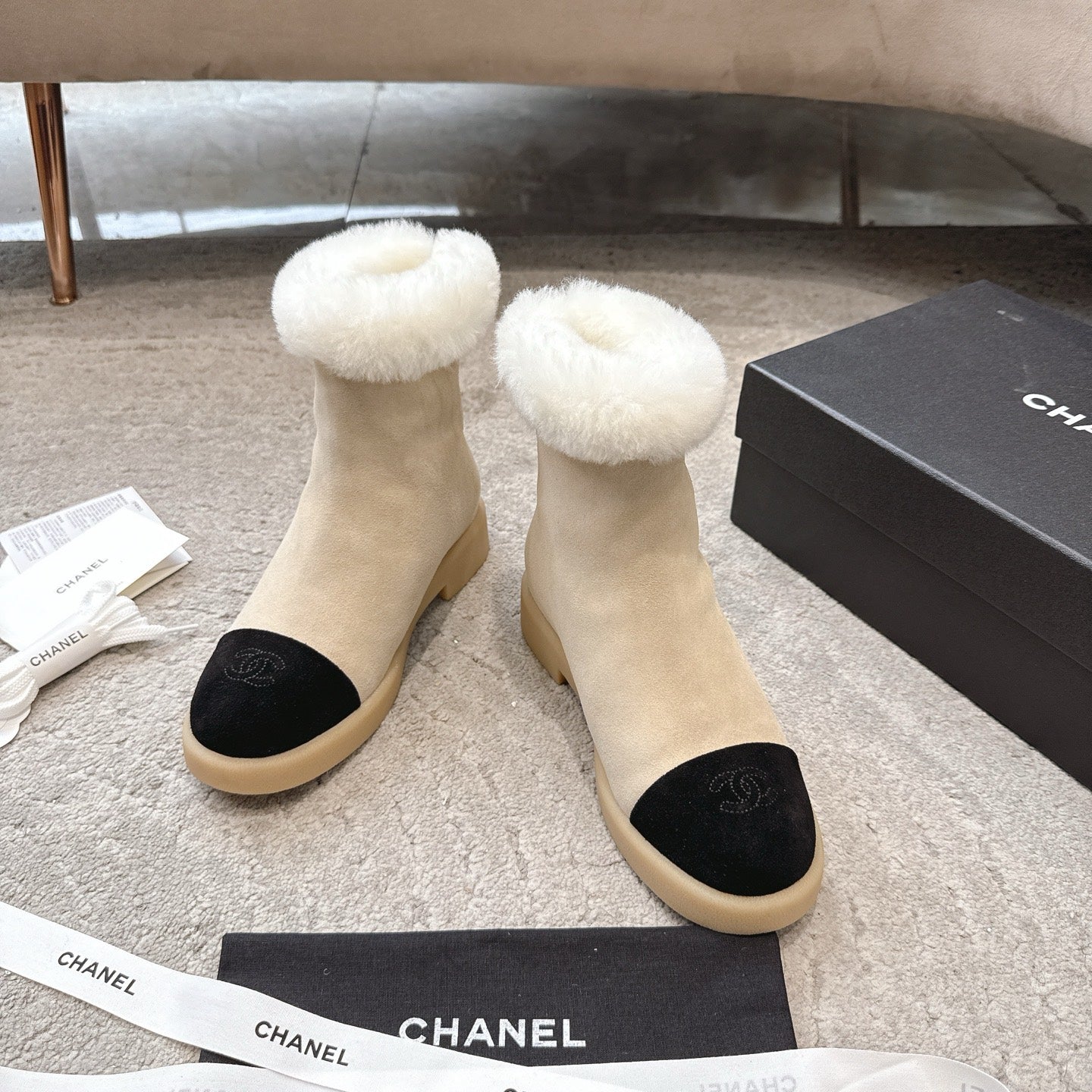 CC 25K Snow Boots 30mm Black Beige Wool Suede 527625