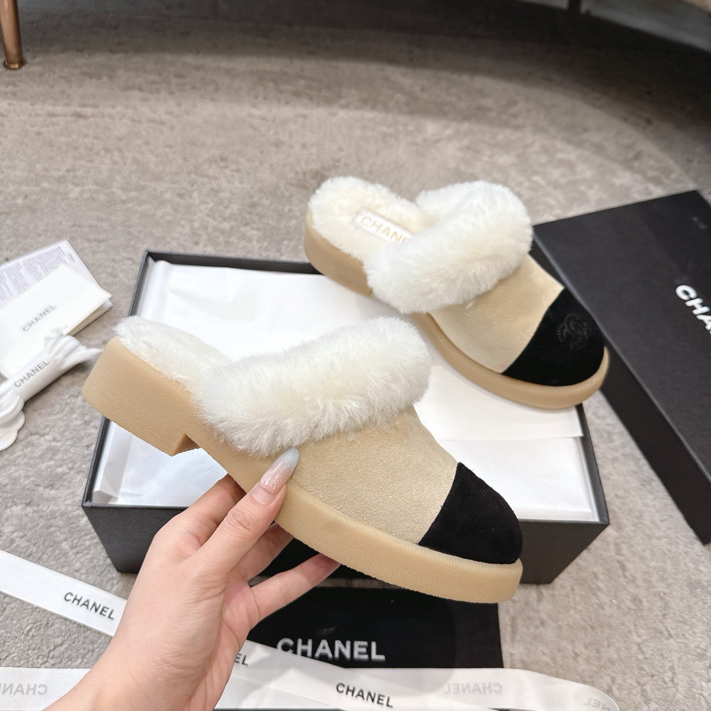 CC 25K Snow Mule 30mm Black Beige Wool Suede 527623