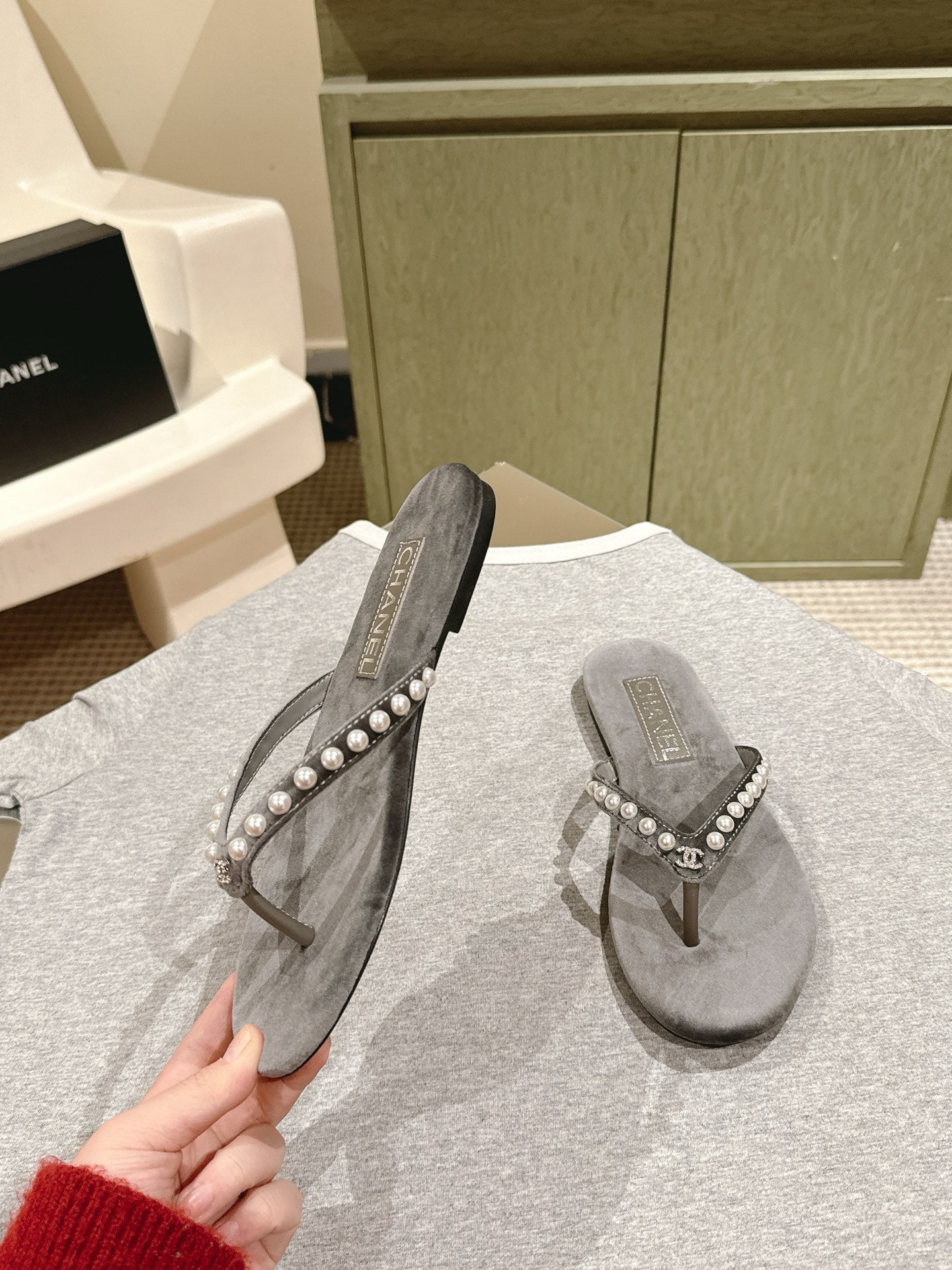 CC 25ss Pearl Thong Sandal Black Mix Grey Velvet 461640