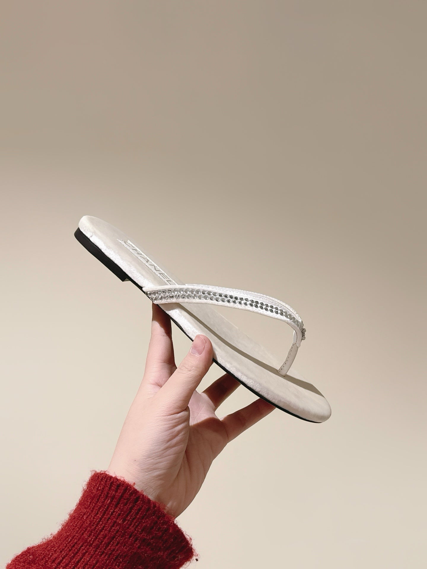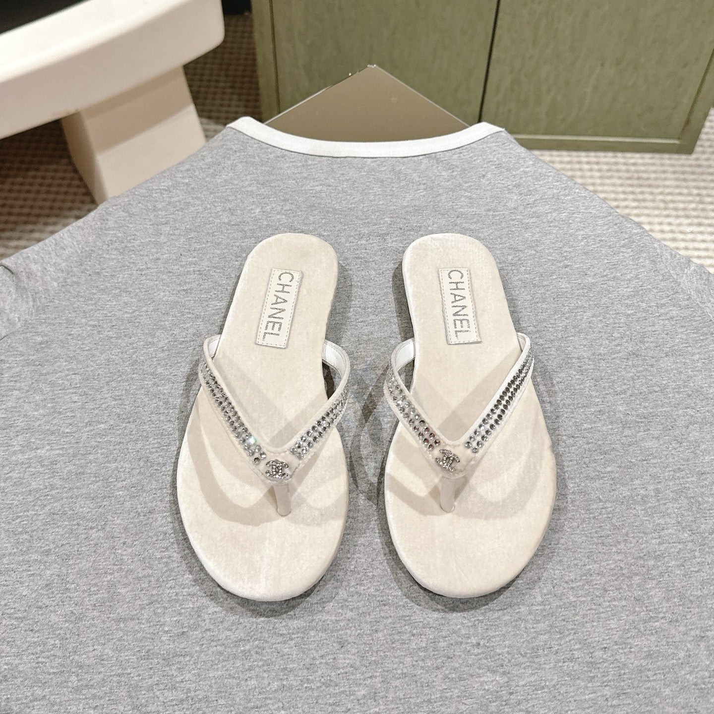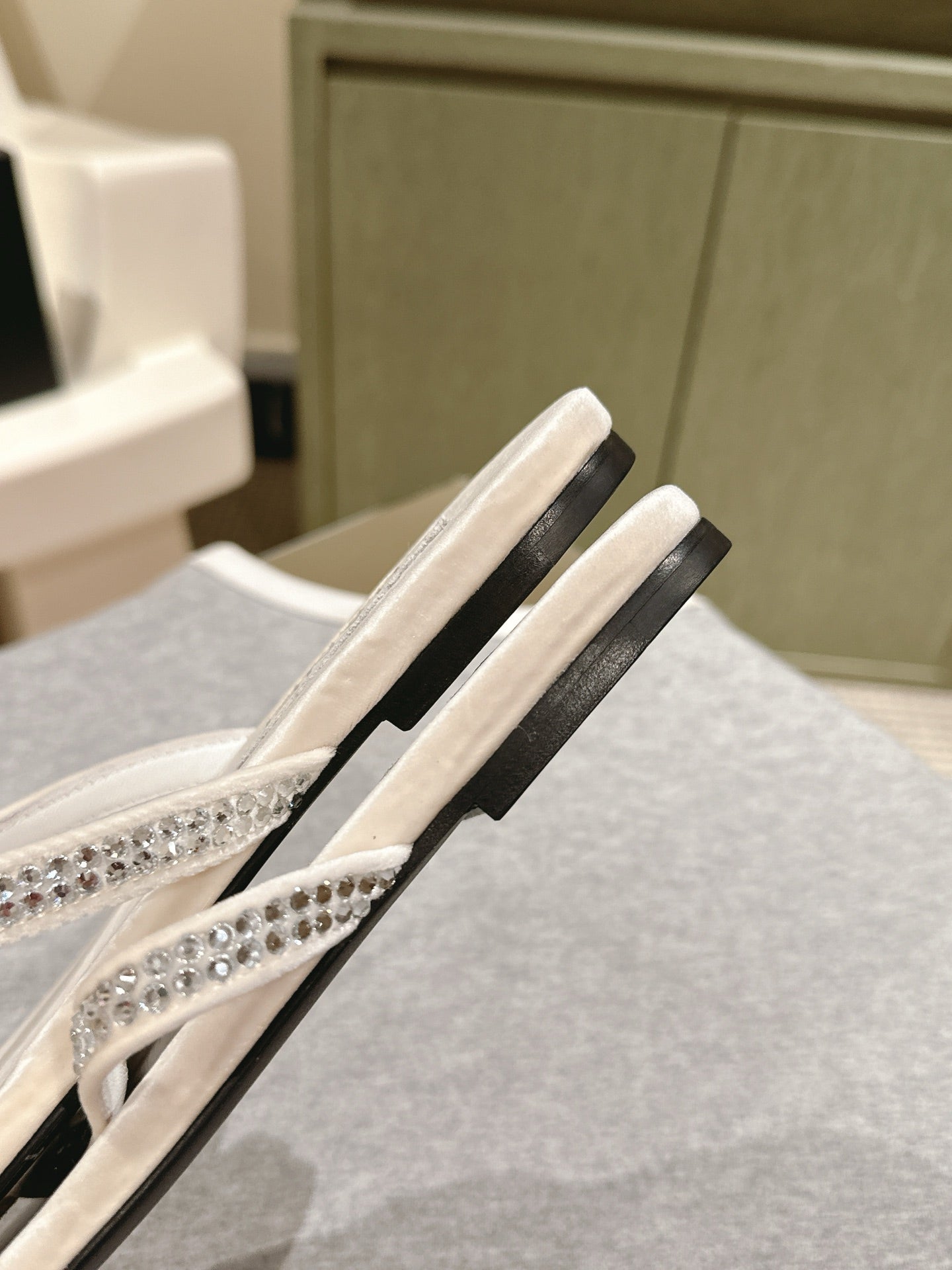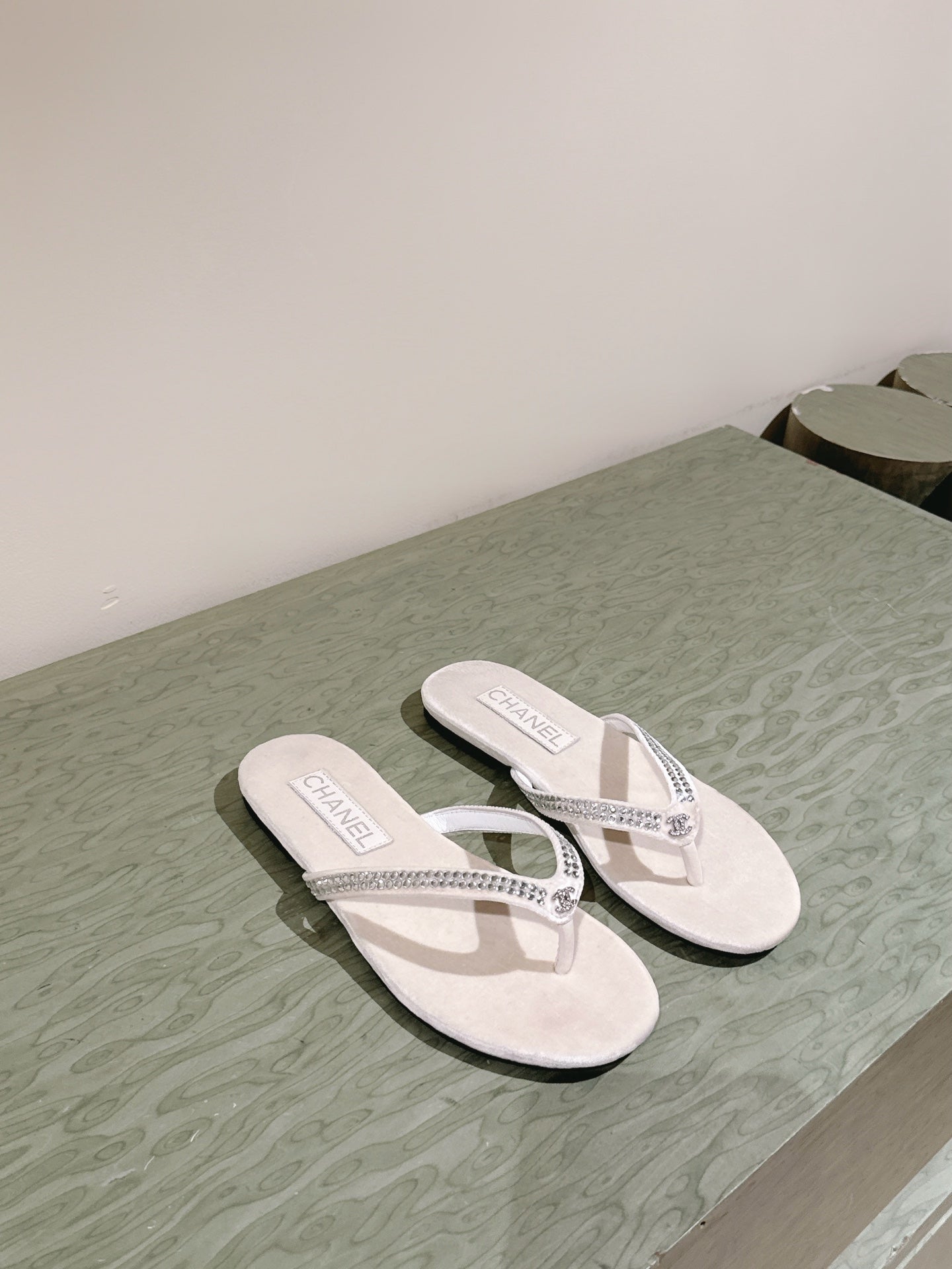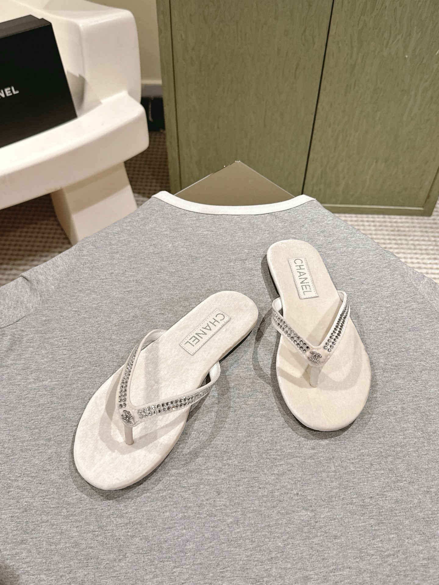 CC 25ss Rhinestone Thong Sandal Beige Velvet 461636