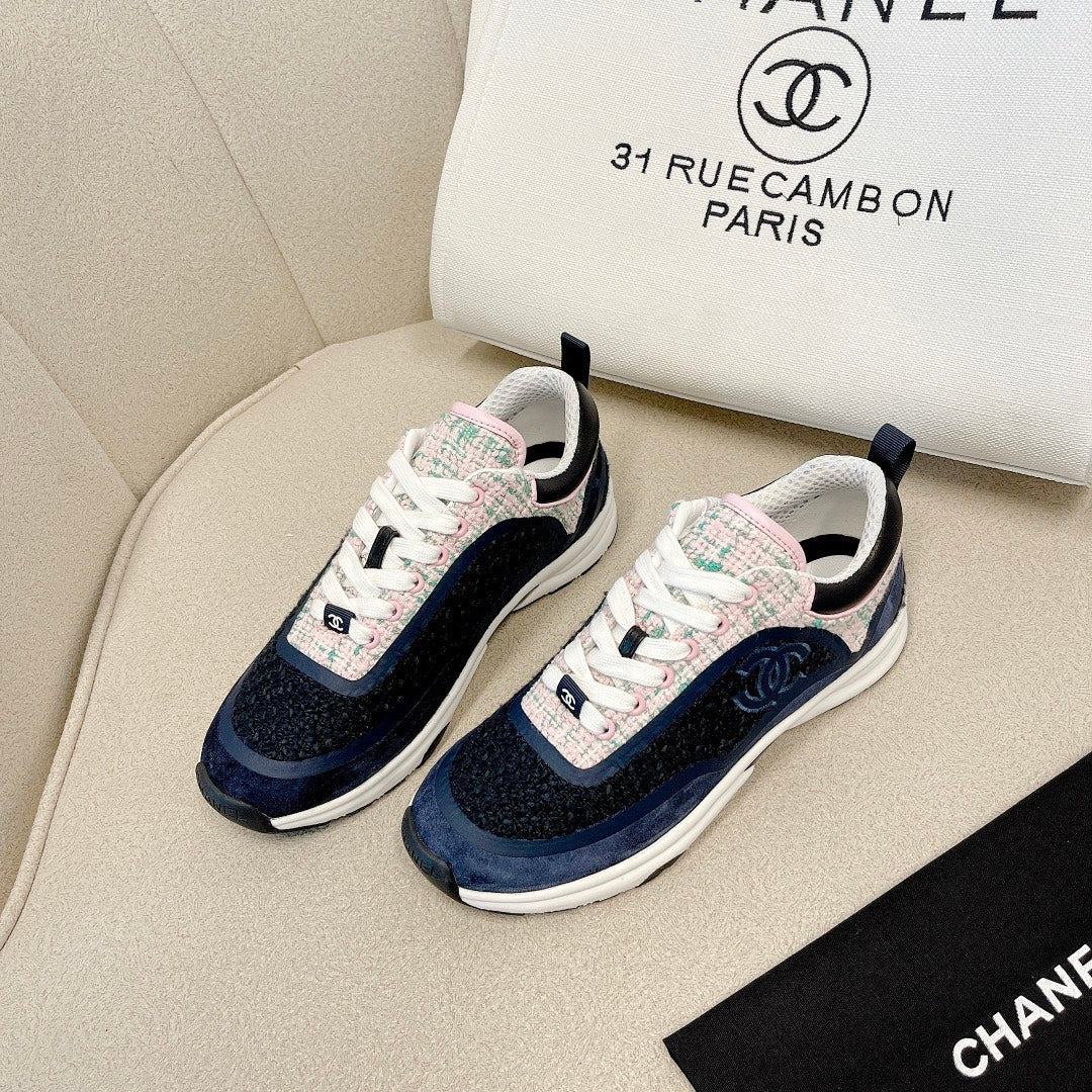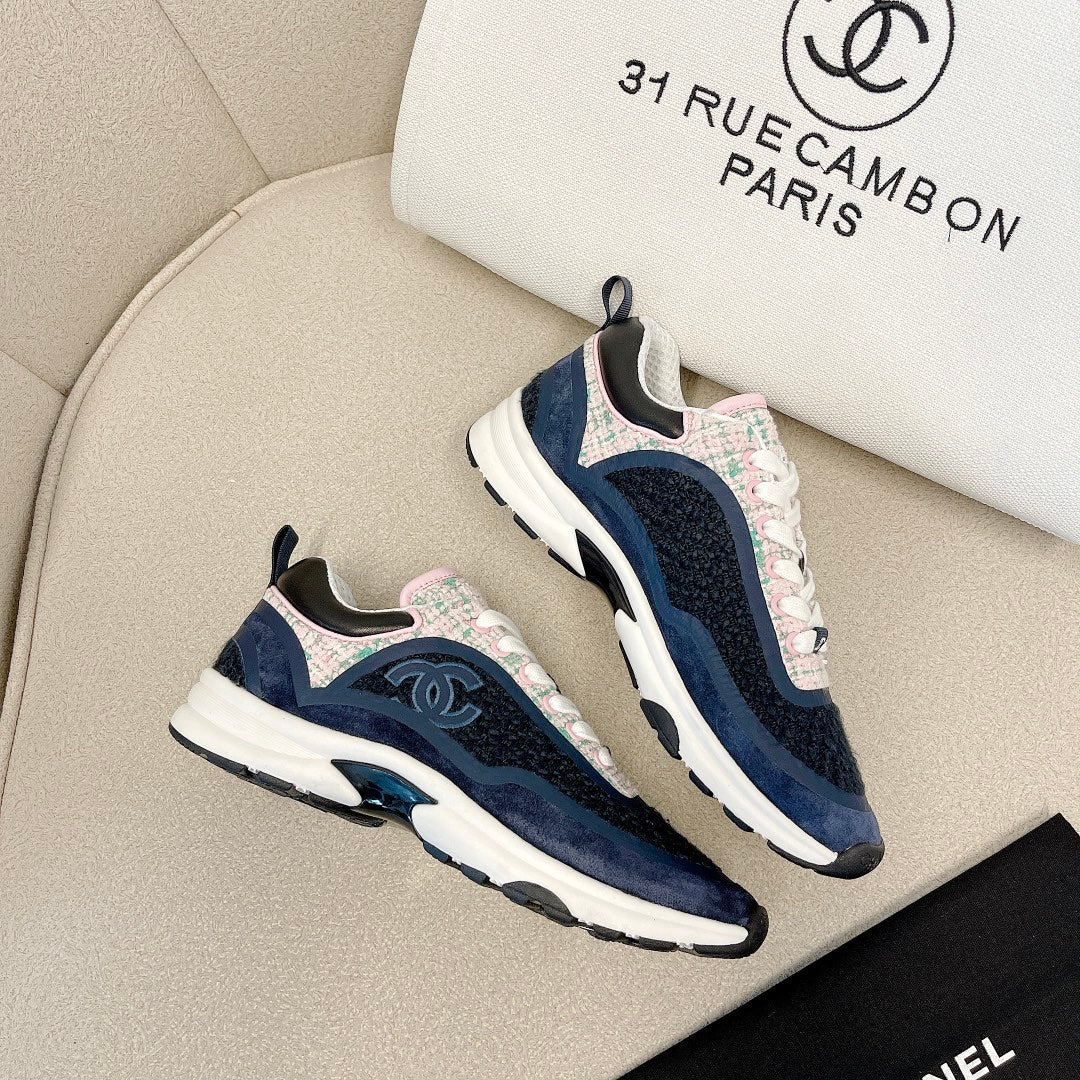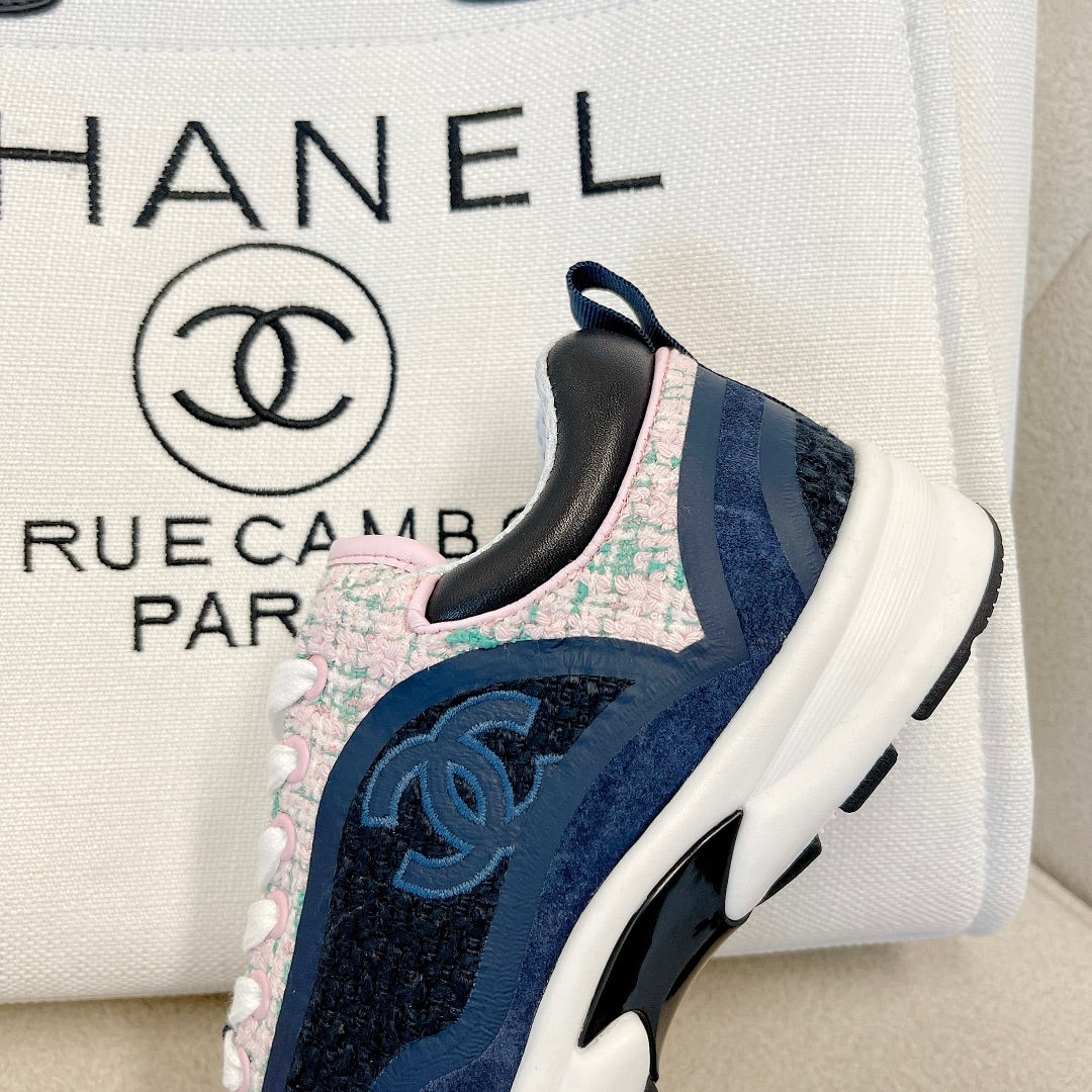 CC Low Top Sneakers Black & Blue Tweed Suede 527567