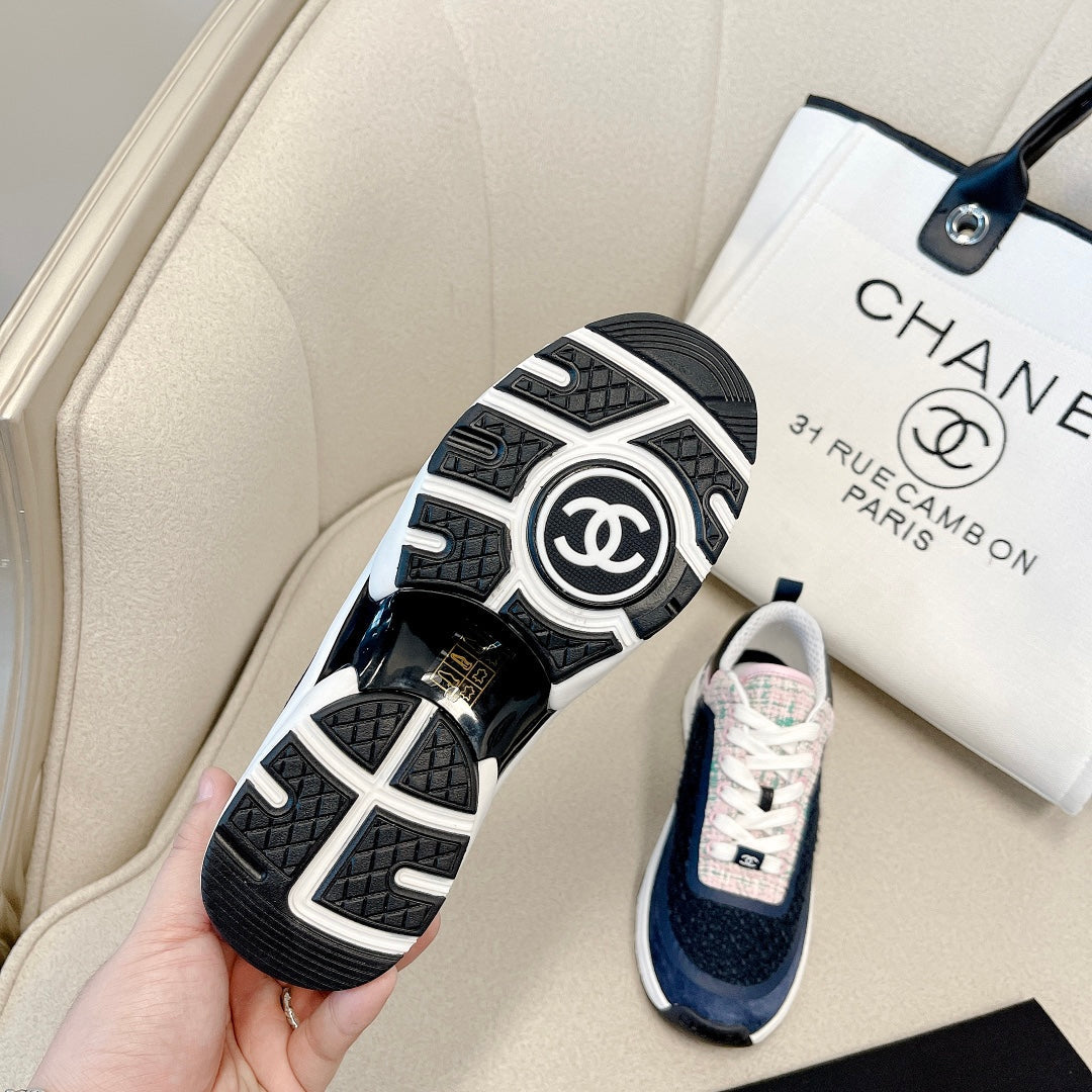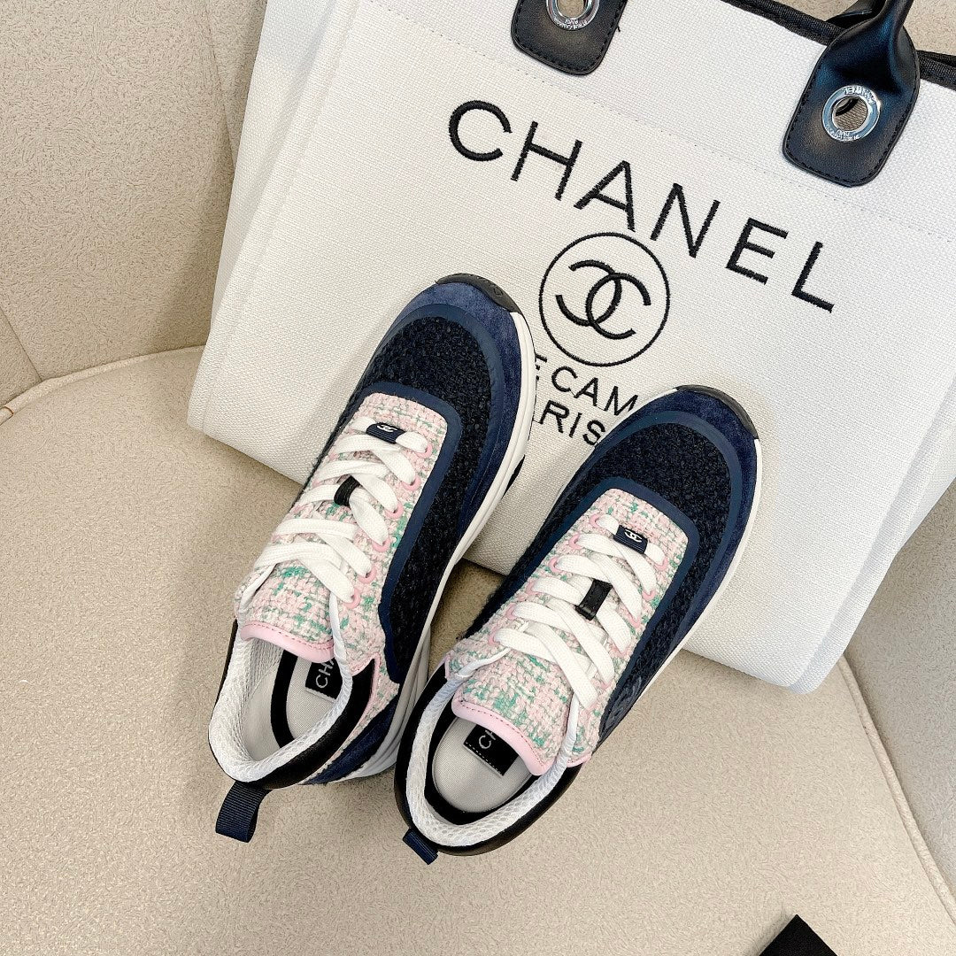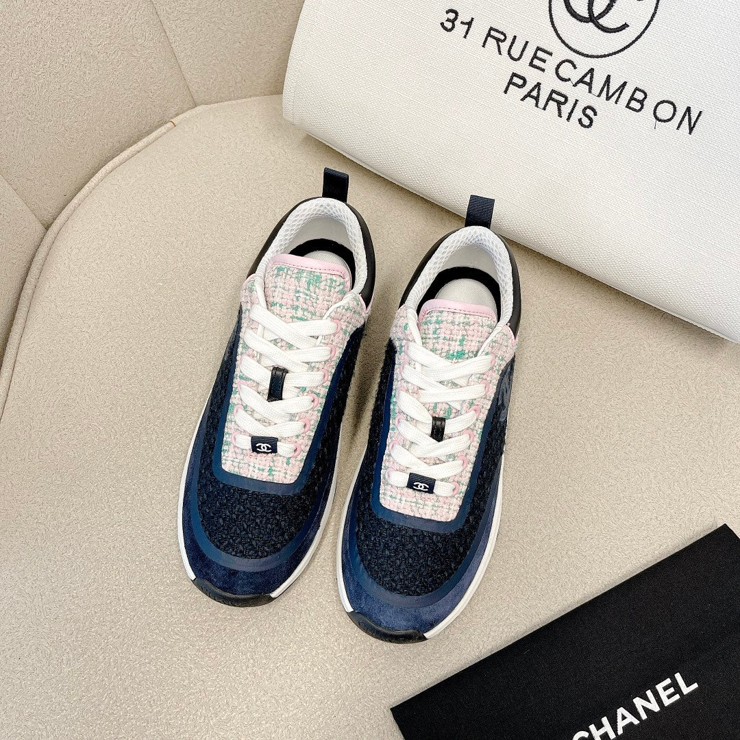 CC Low Top Sneakers Black & Blue Tweed Suede 527567