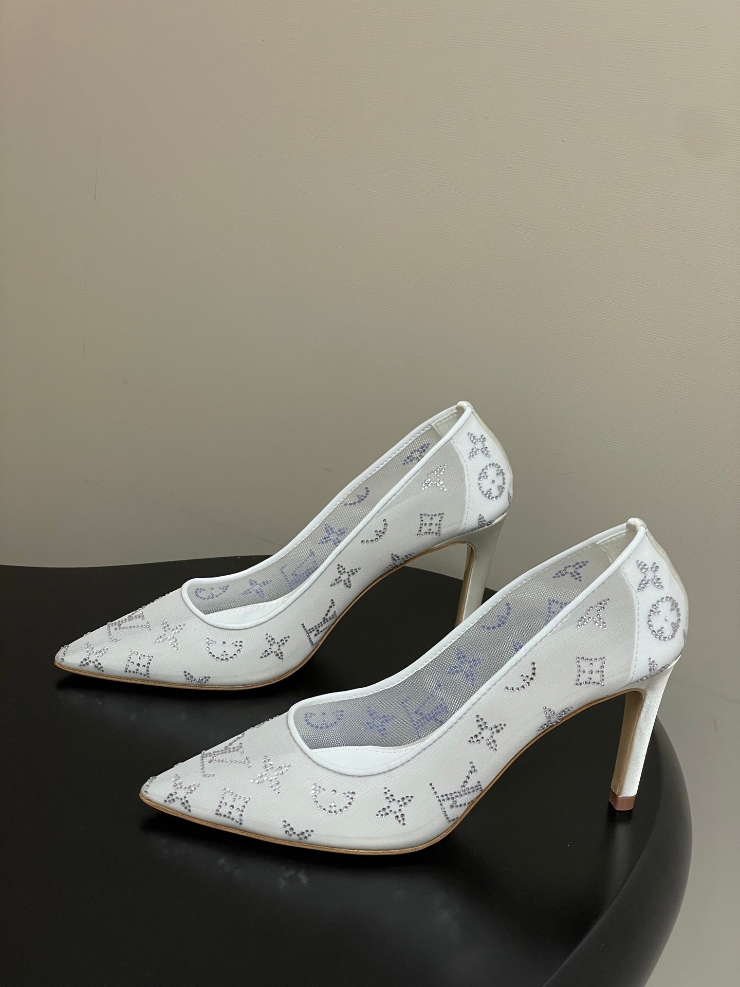 LV Gala High Heels Nude Beige Mesh Monogram Strass 525721