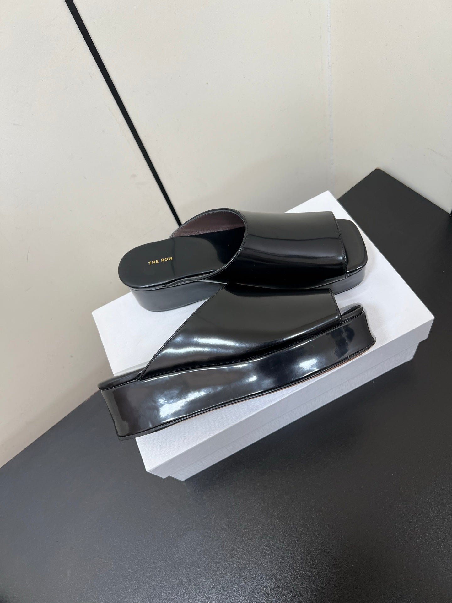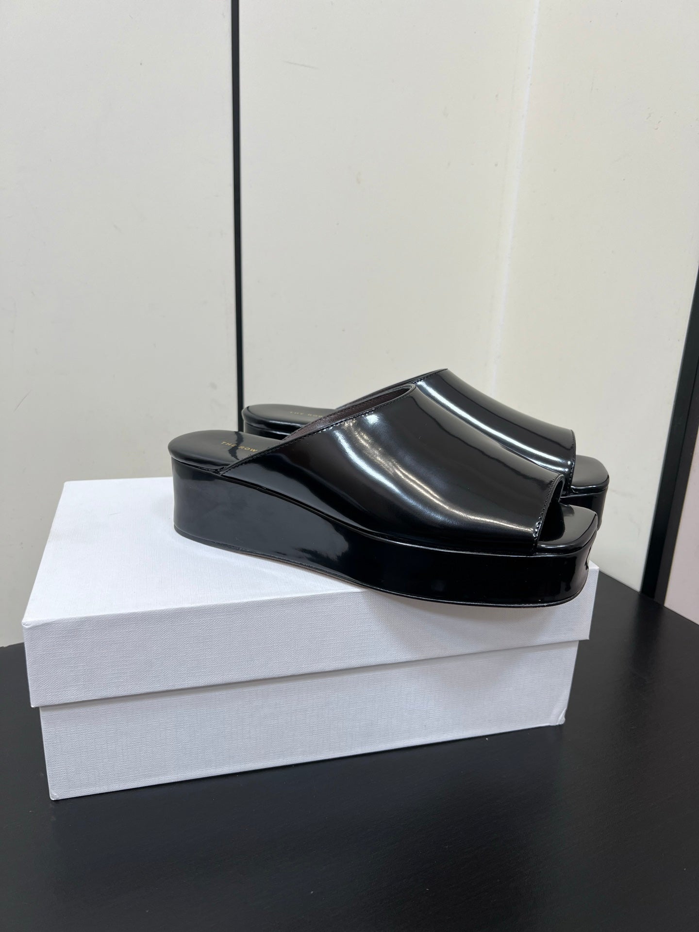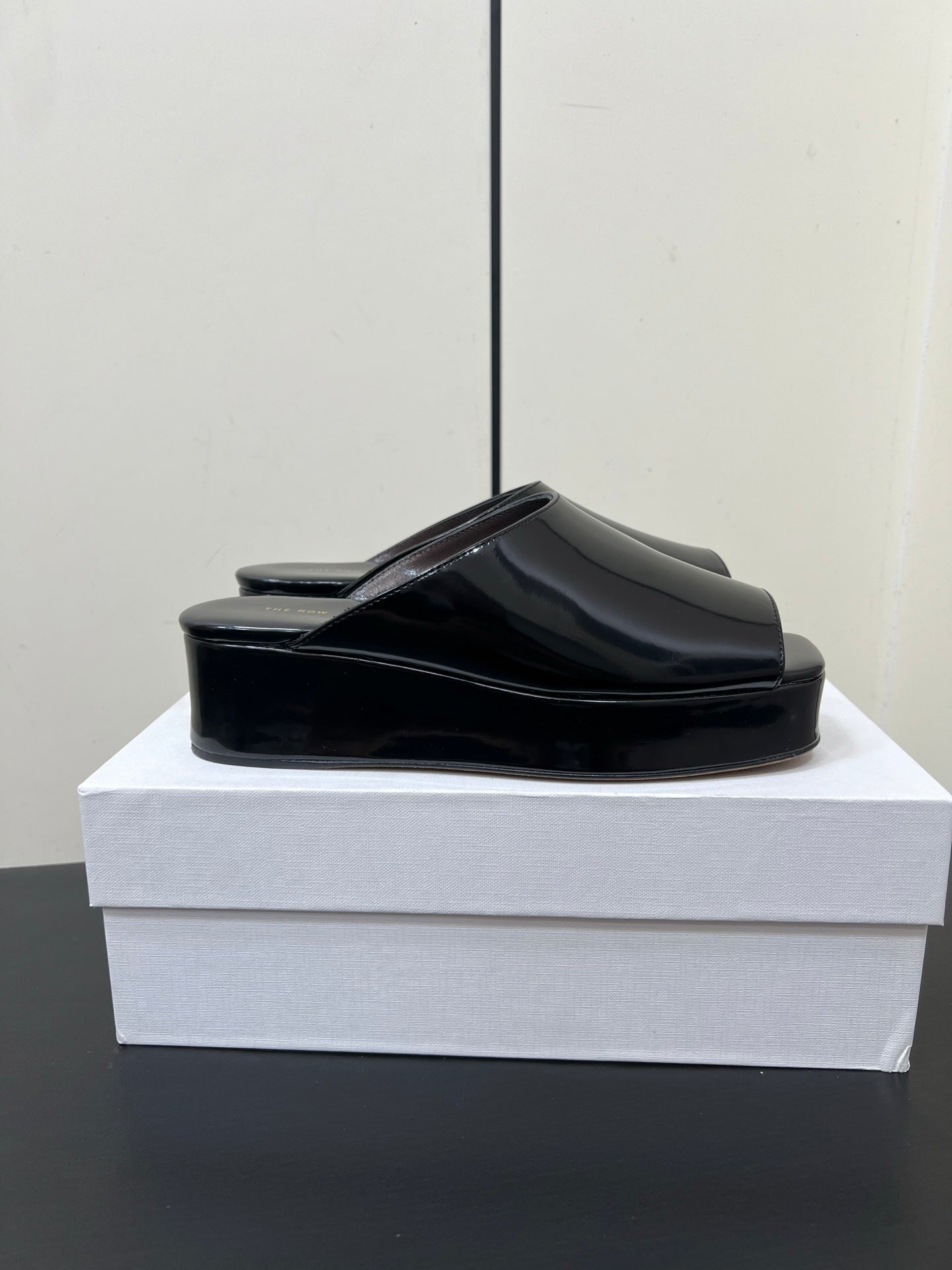 The Row Emi Flatform Sandal 50mm Black Patent Leather 340005