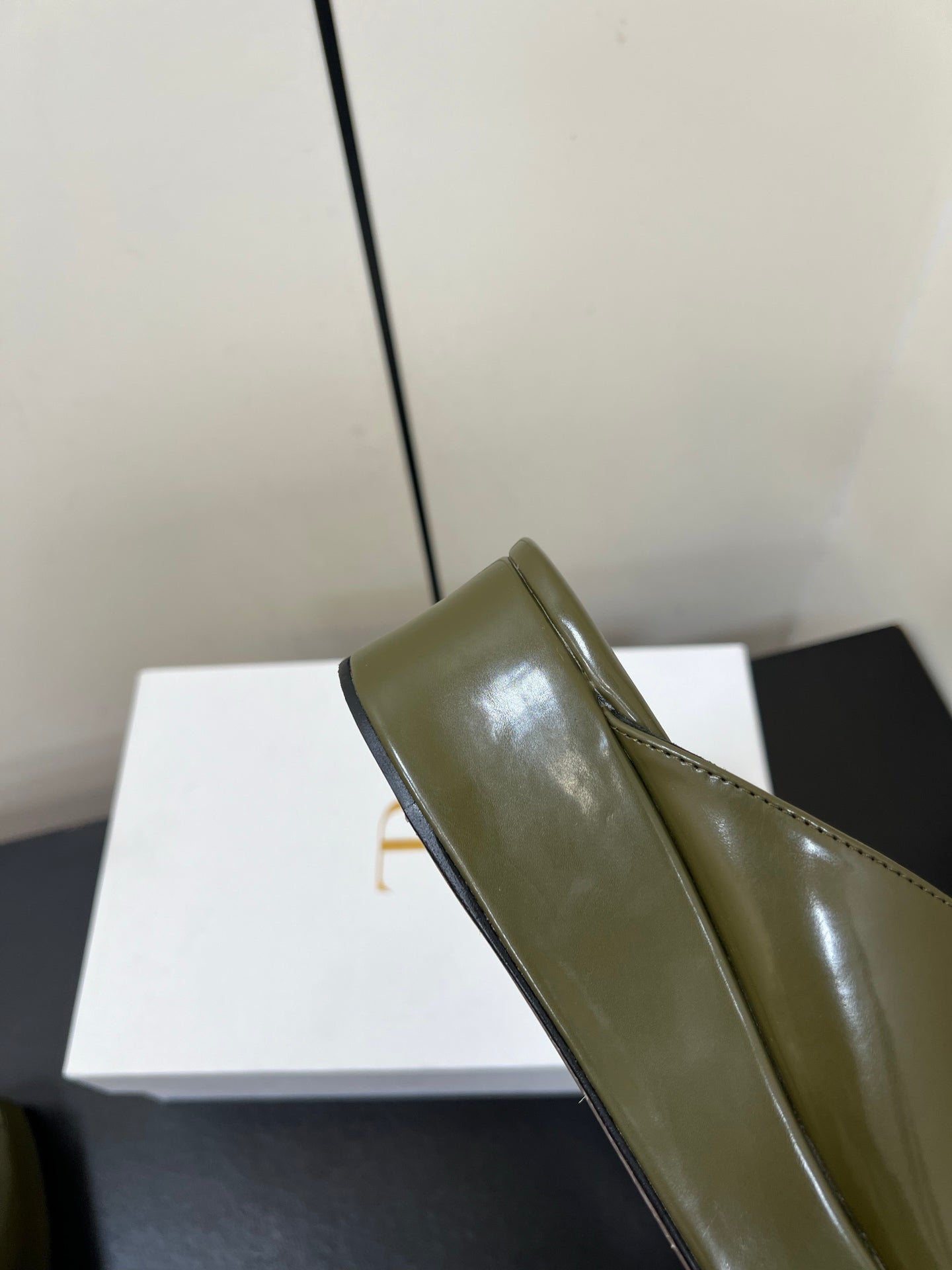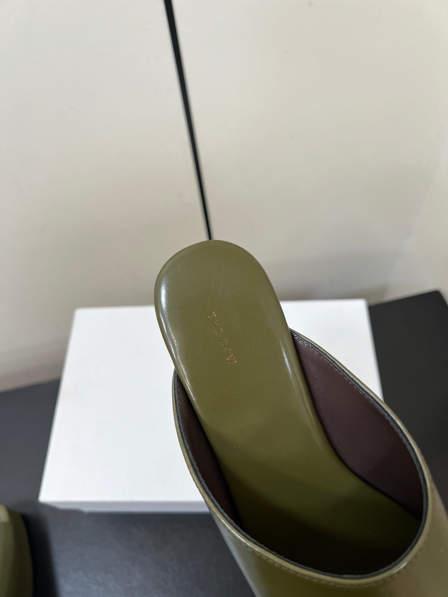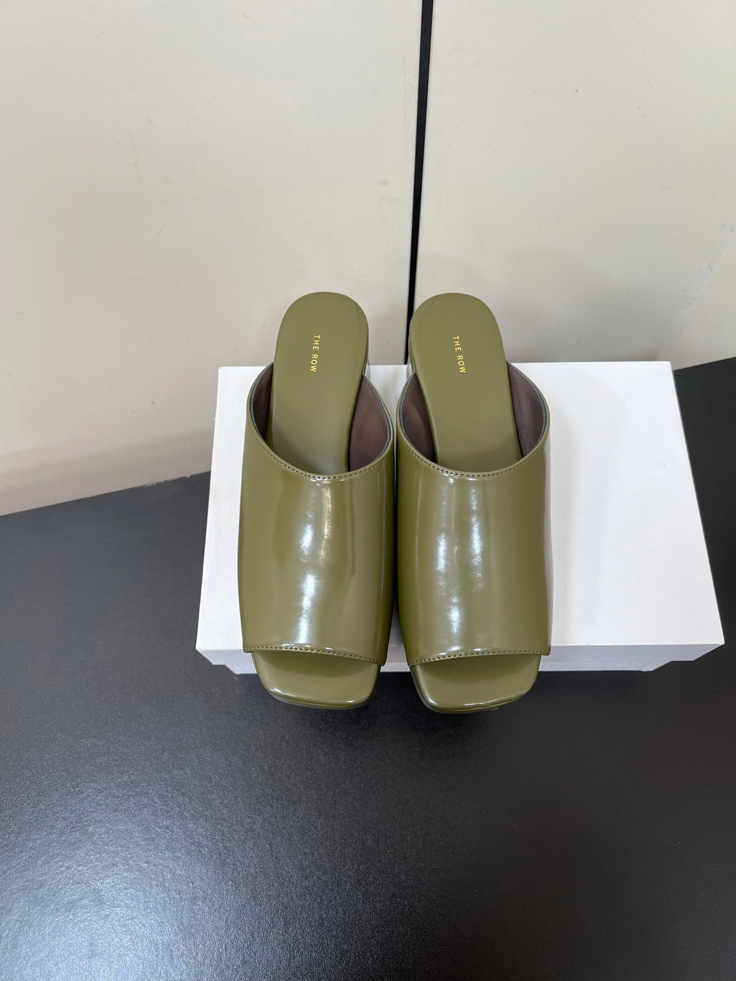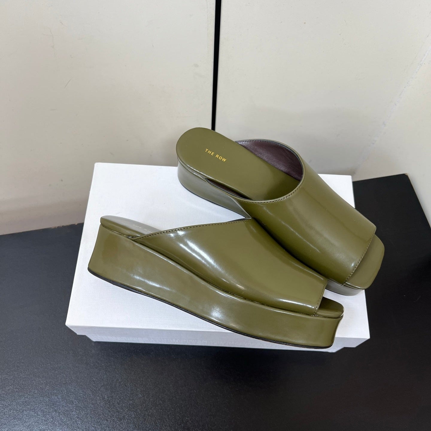 The Row Emi Flatform Sandal 50mm Olive Patent Leather 340004