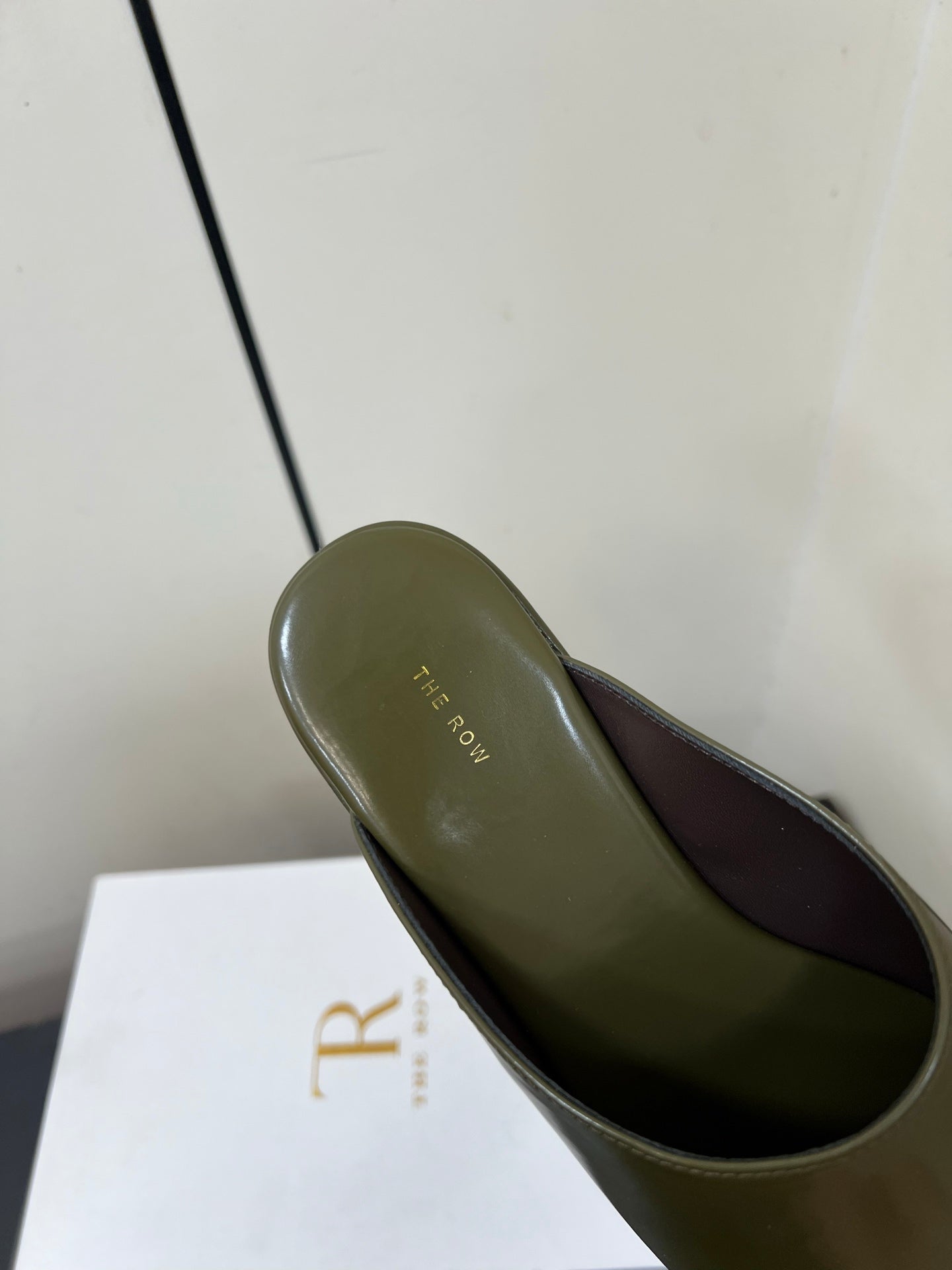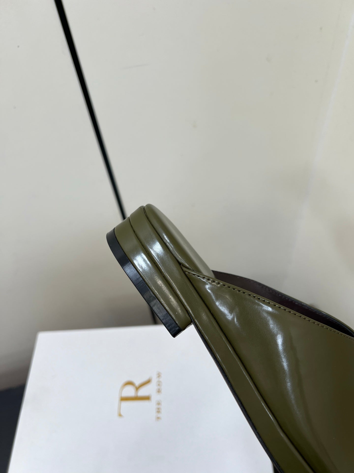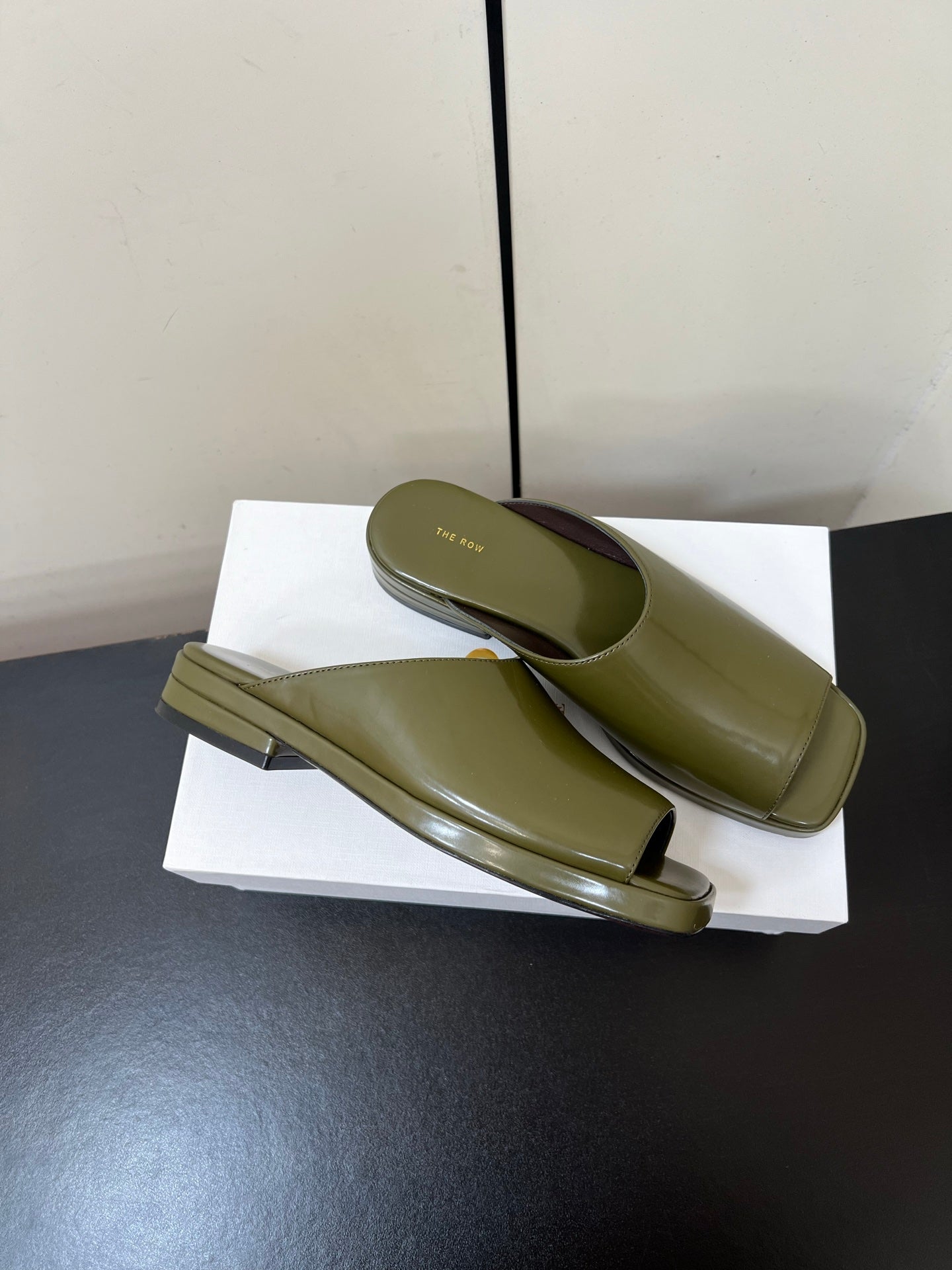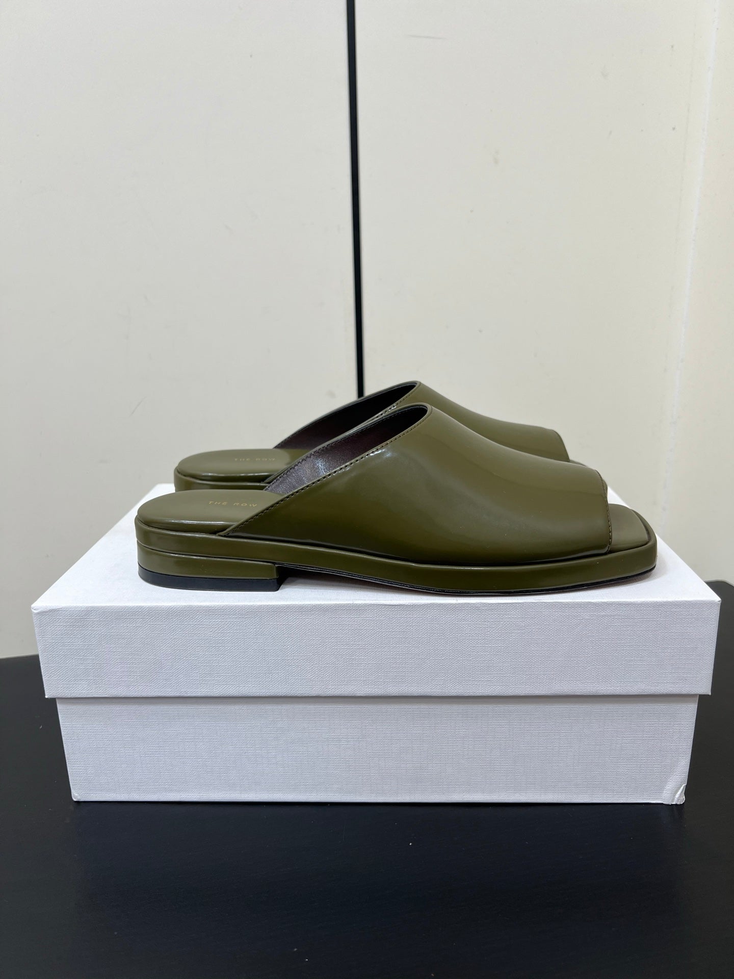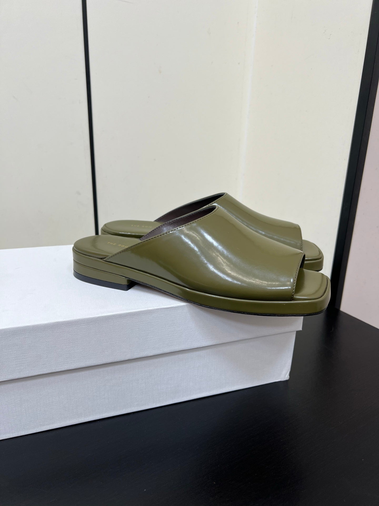 The Row Emi Flatform Sandal 25mm Olive Patent Leather 340006