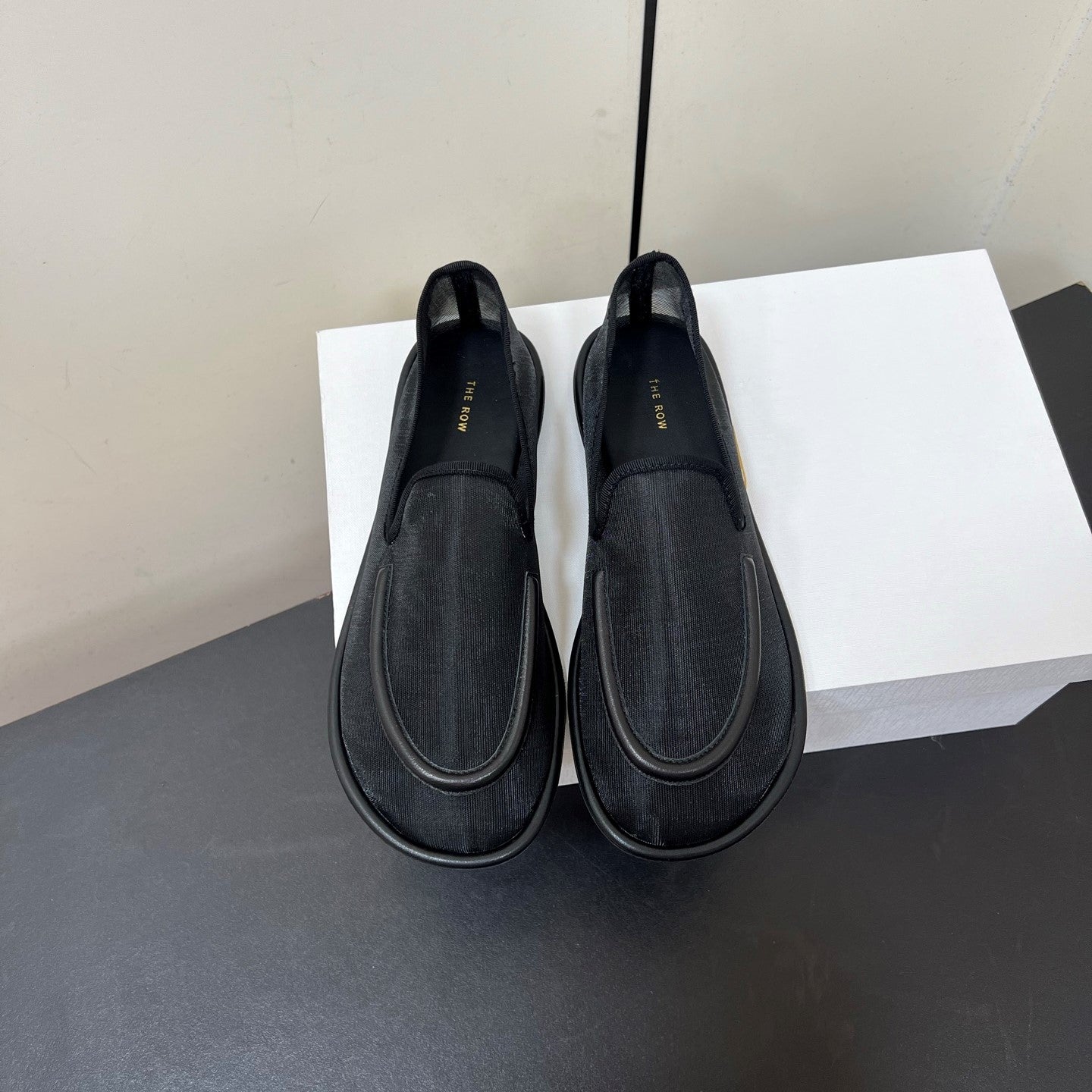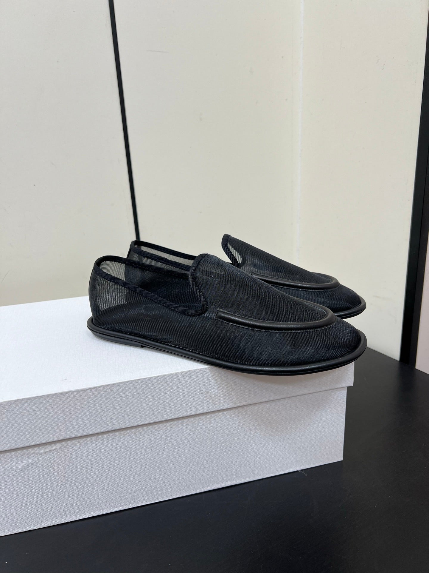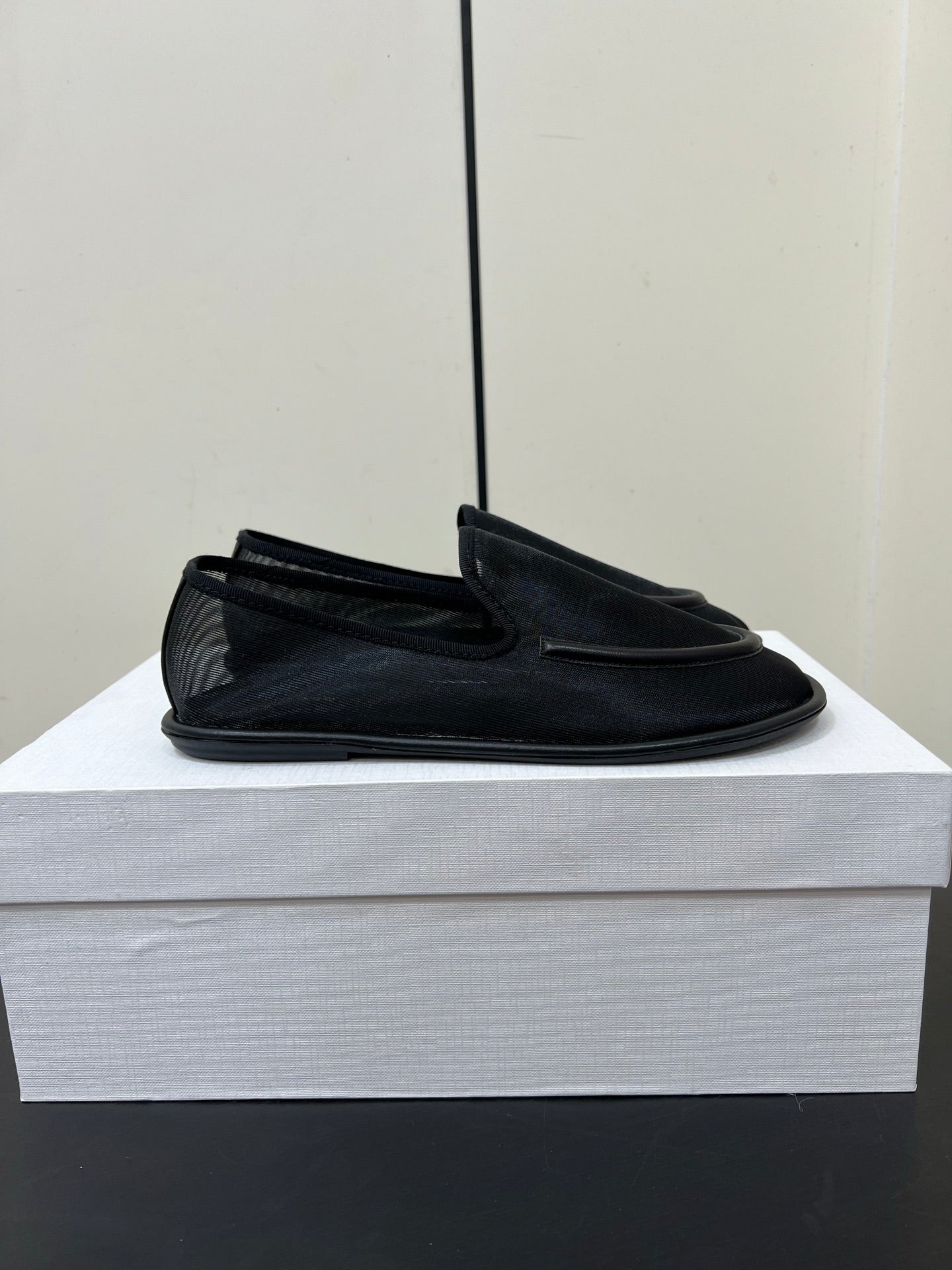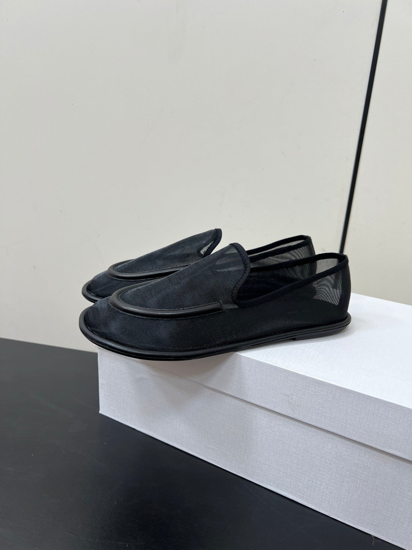 The Row Loafer 10mm Black Mesh And Sheepskin 340017