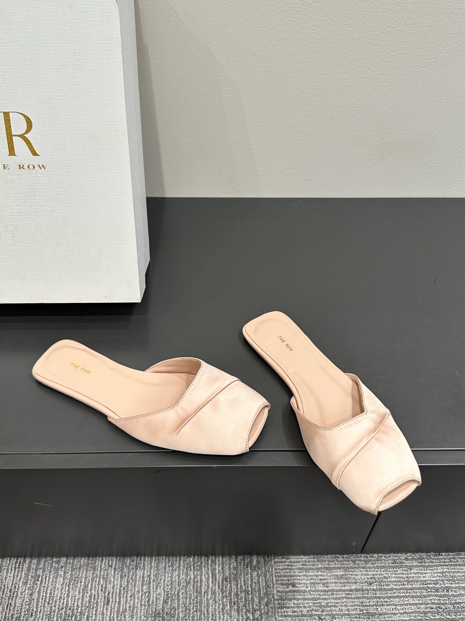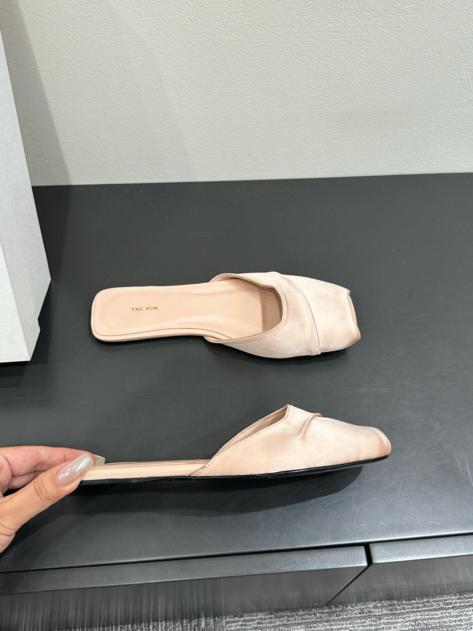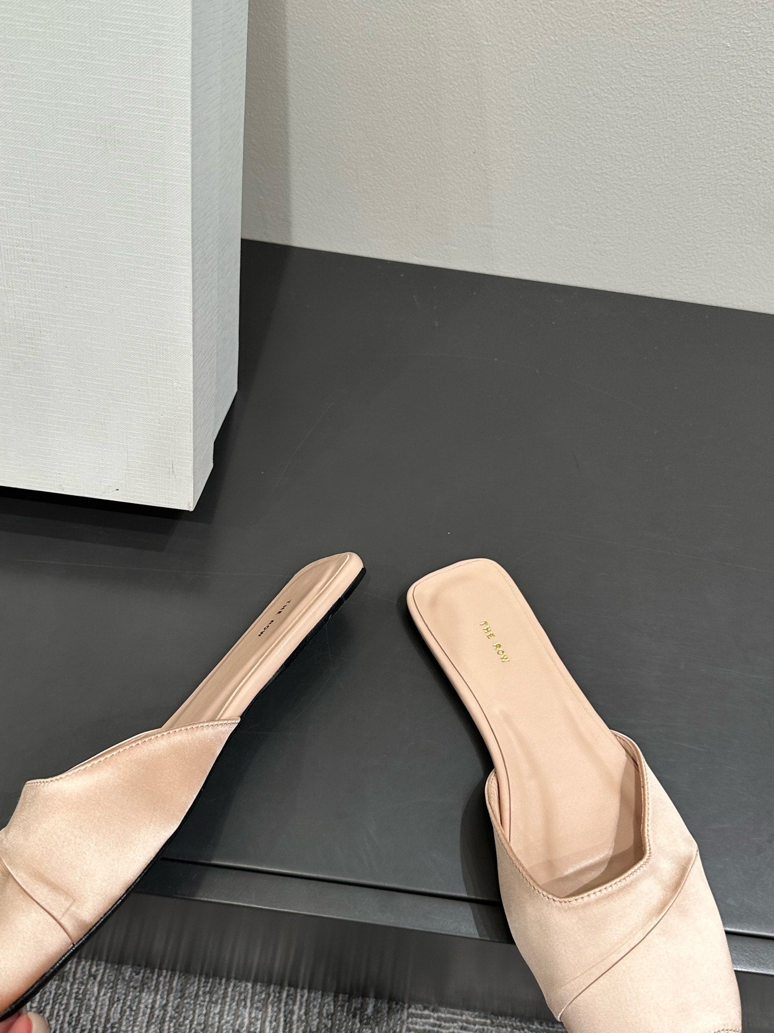 The Row Mule Sandal Beige Satin And Sheepskin Lining 337507
