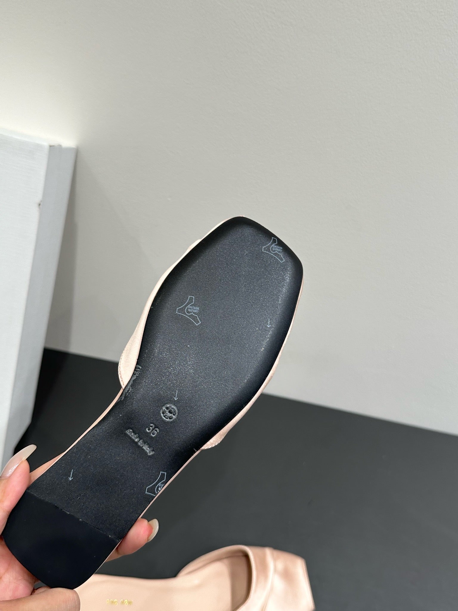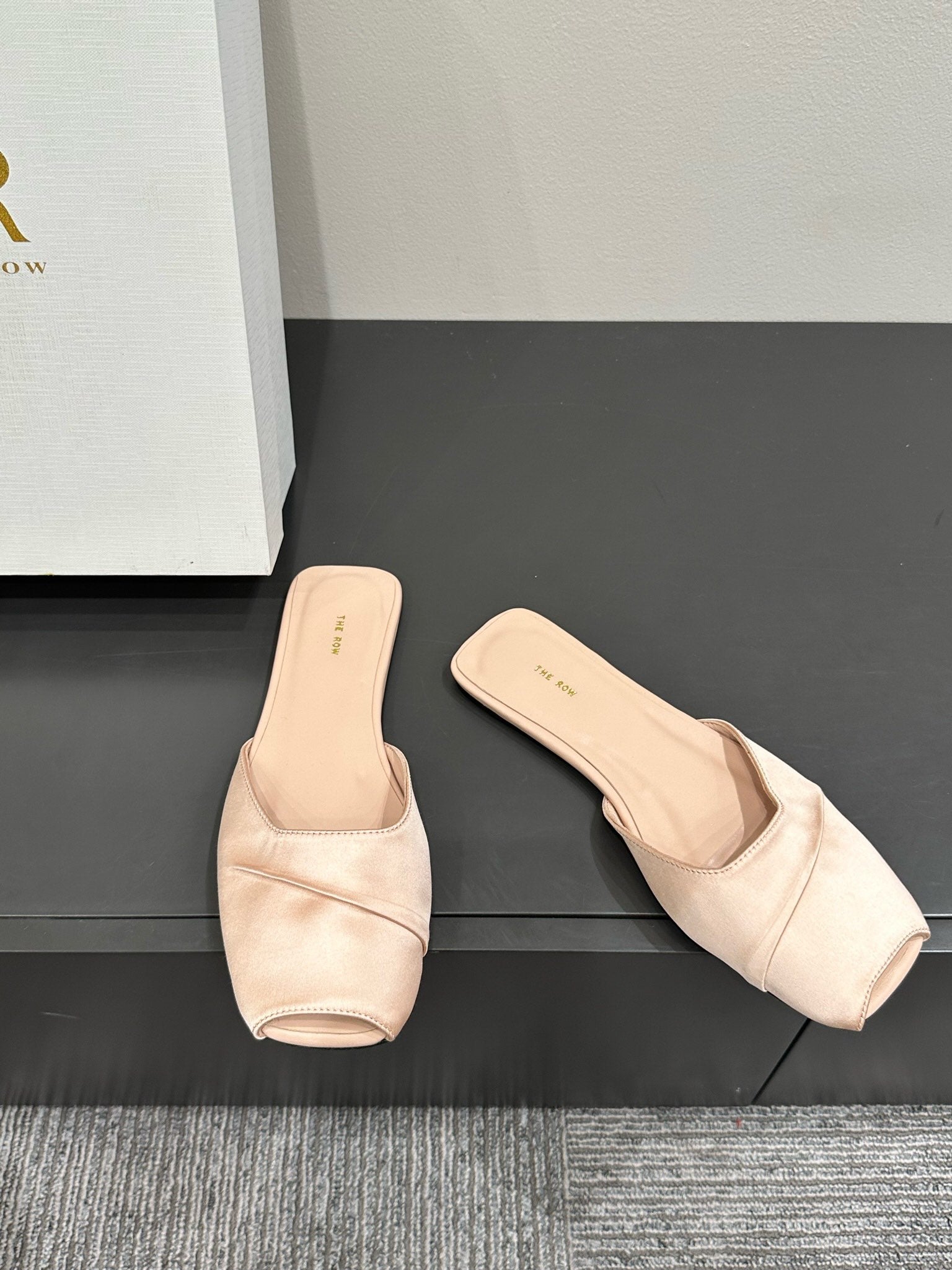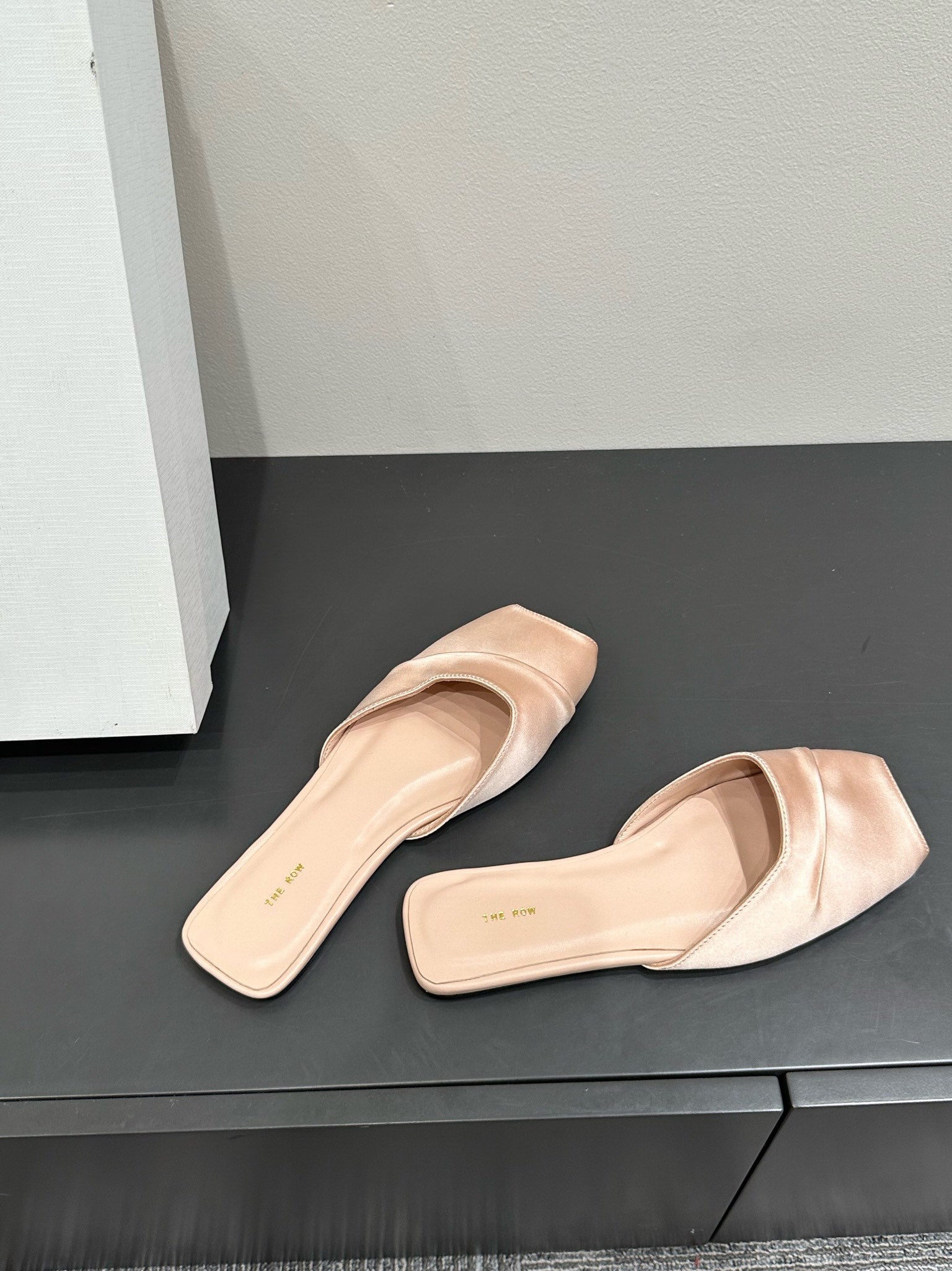 The Row Mule Sandal Beige Satin And Sheepskin Lining 337507