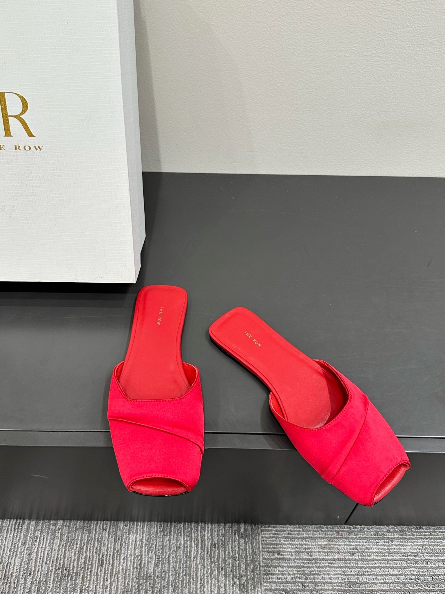 The Row Mule Sandal Red Satin And Sheepskin Lining 337506
