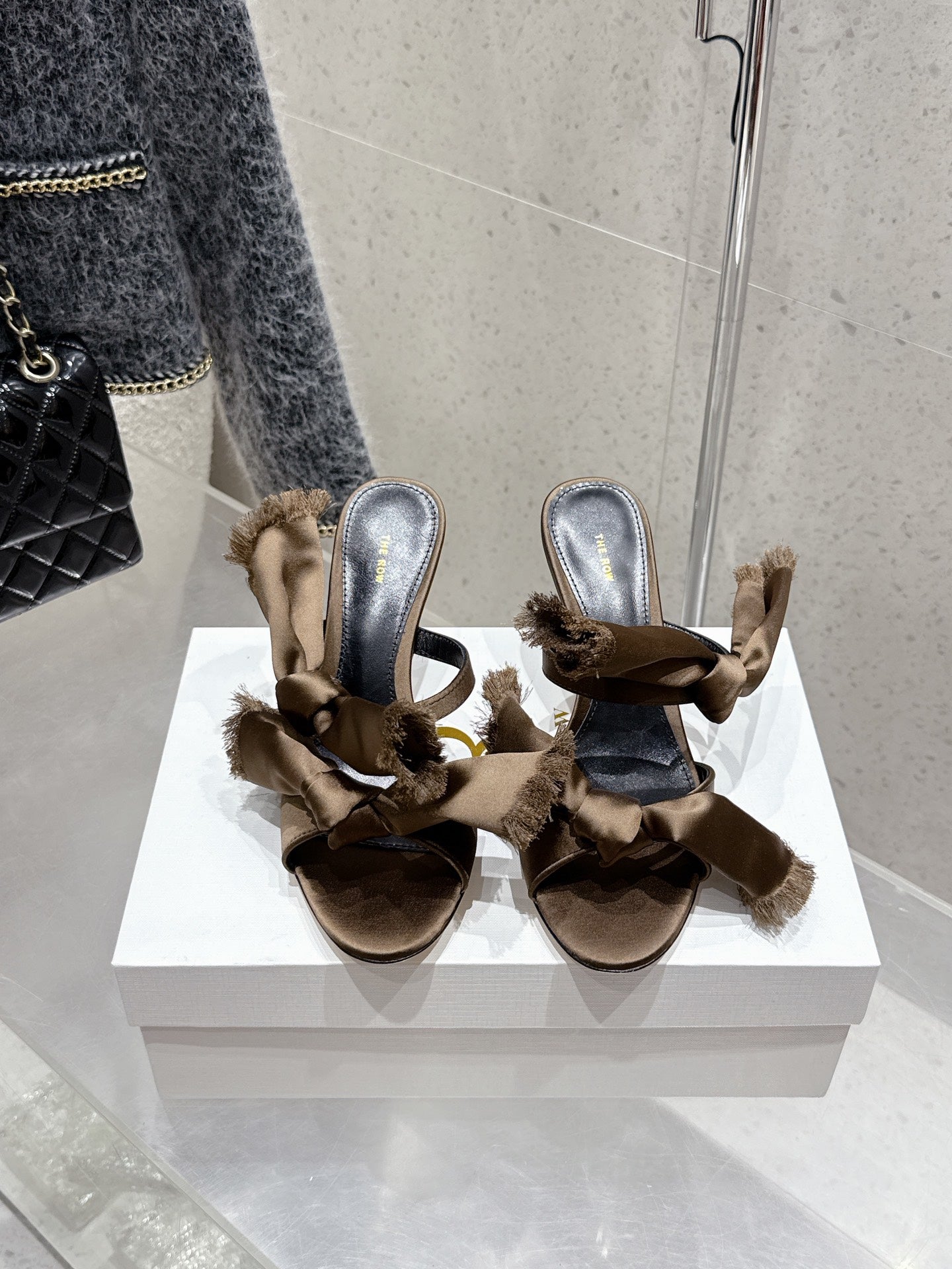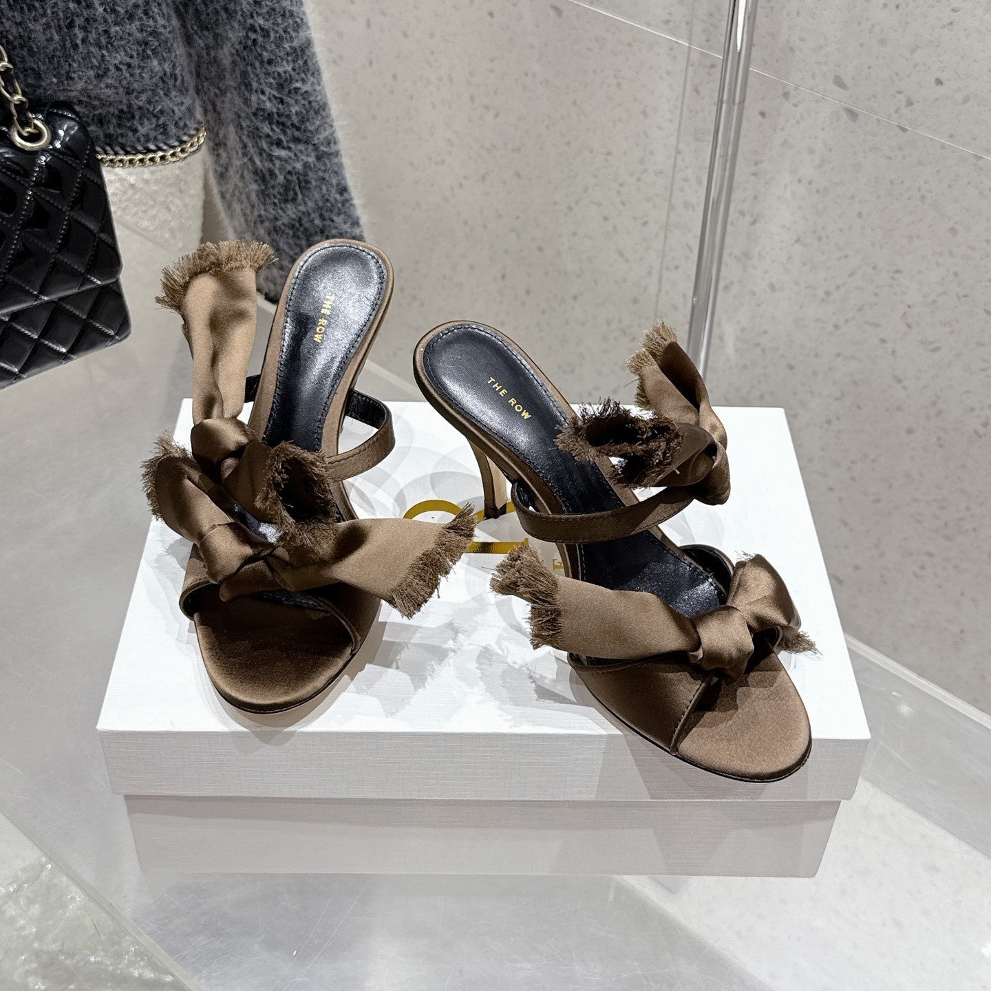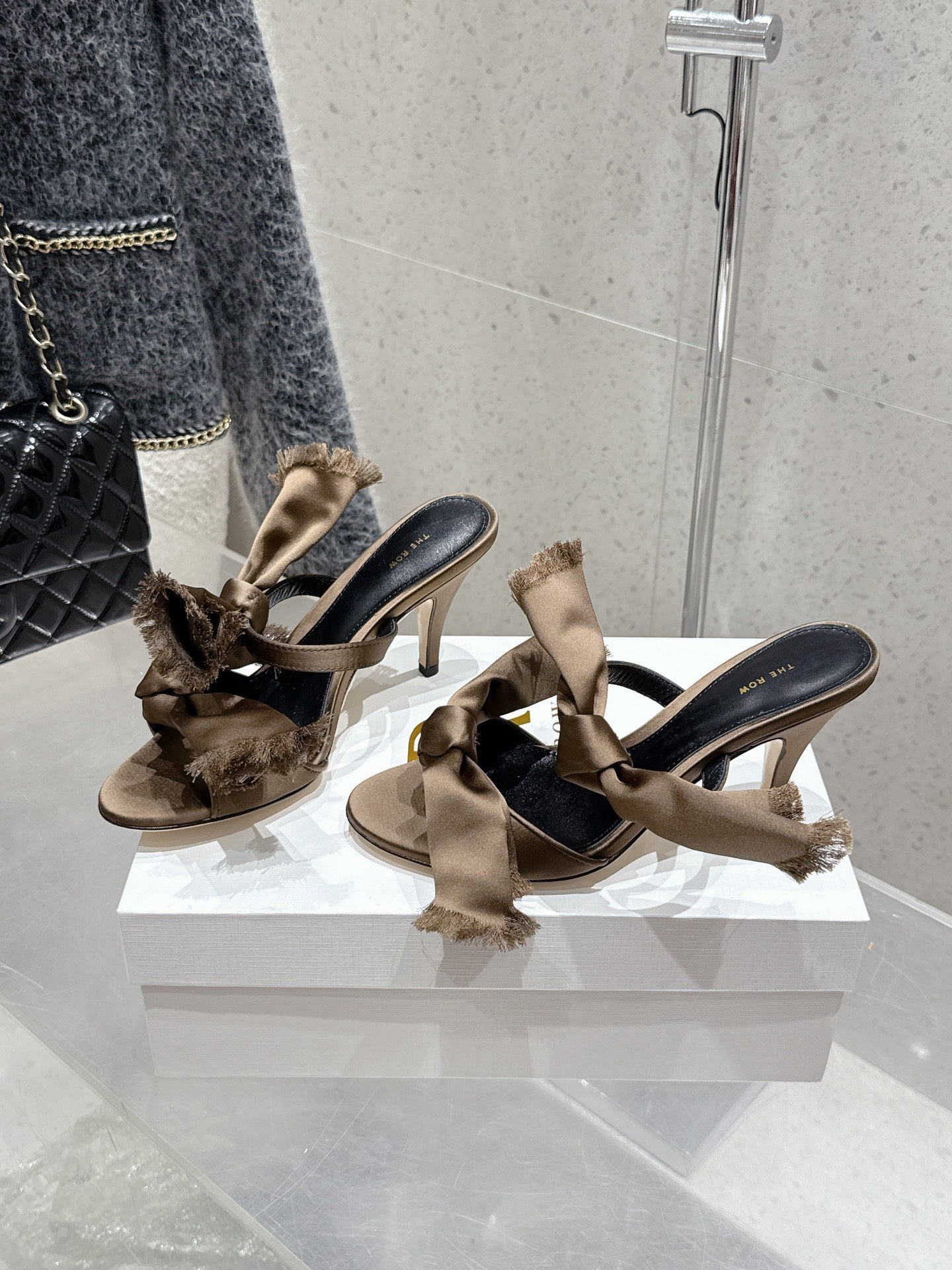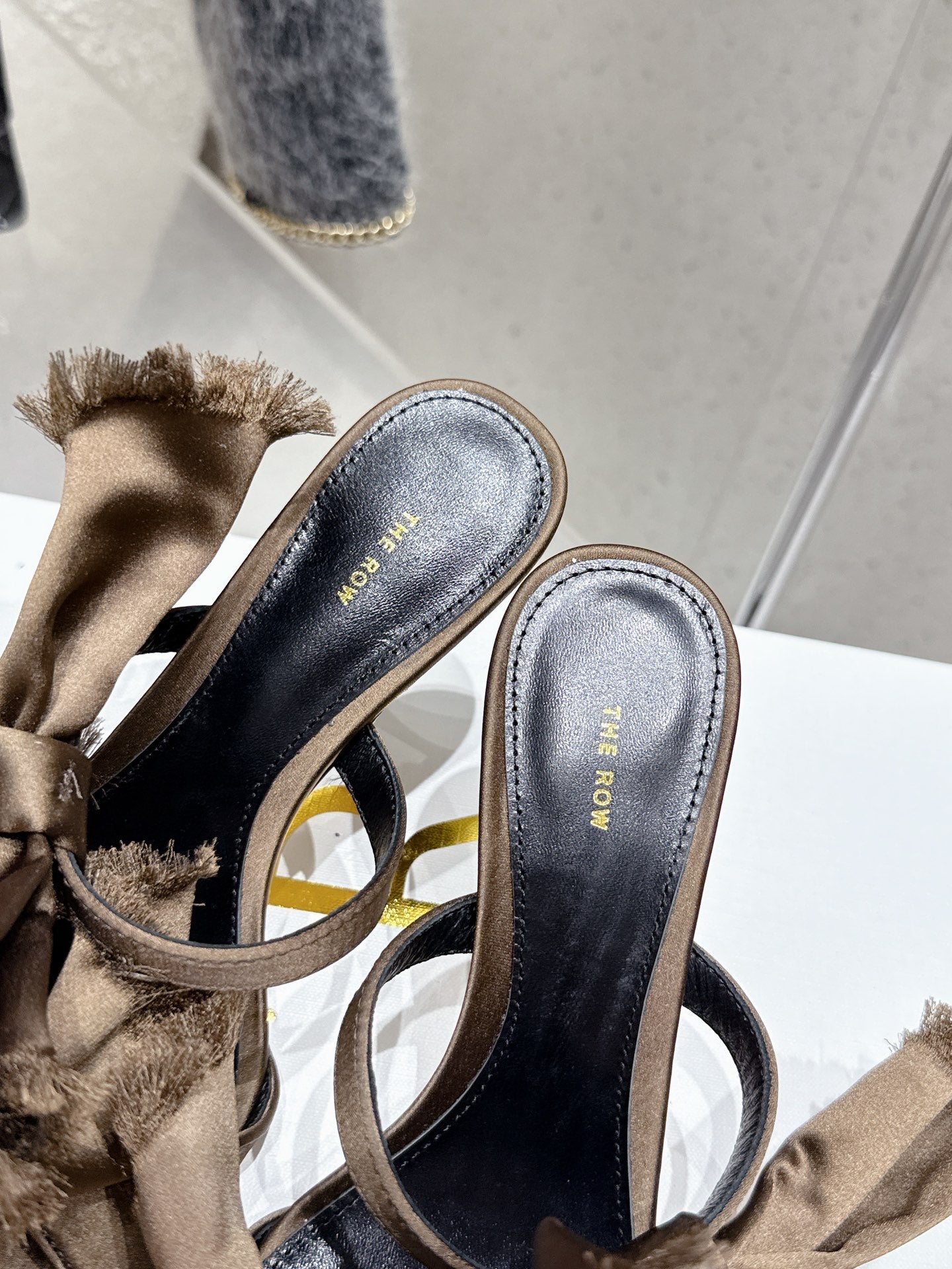 The Row Strap High Heel Mule Sandals 80mm Brown Satin And Black Sheepskin 338379