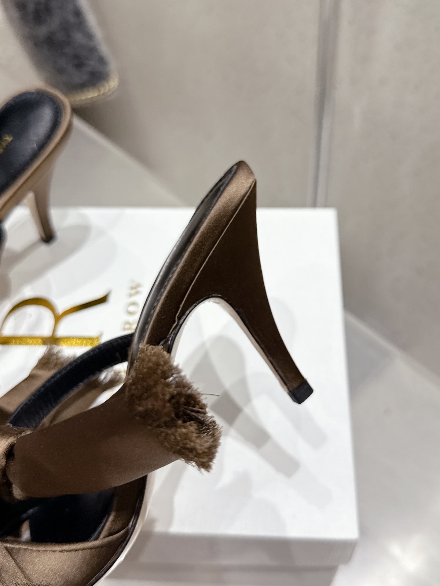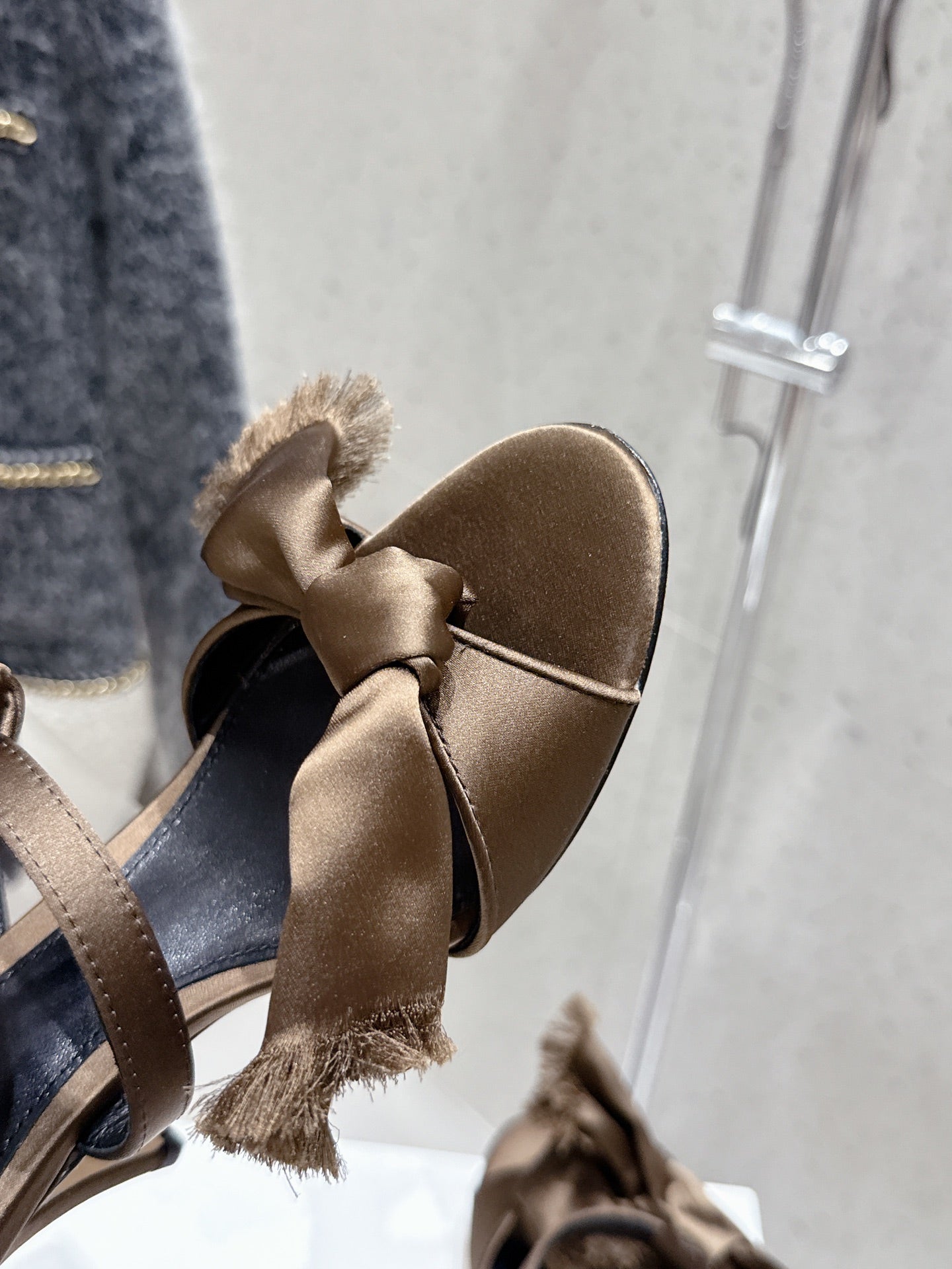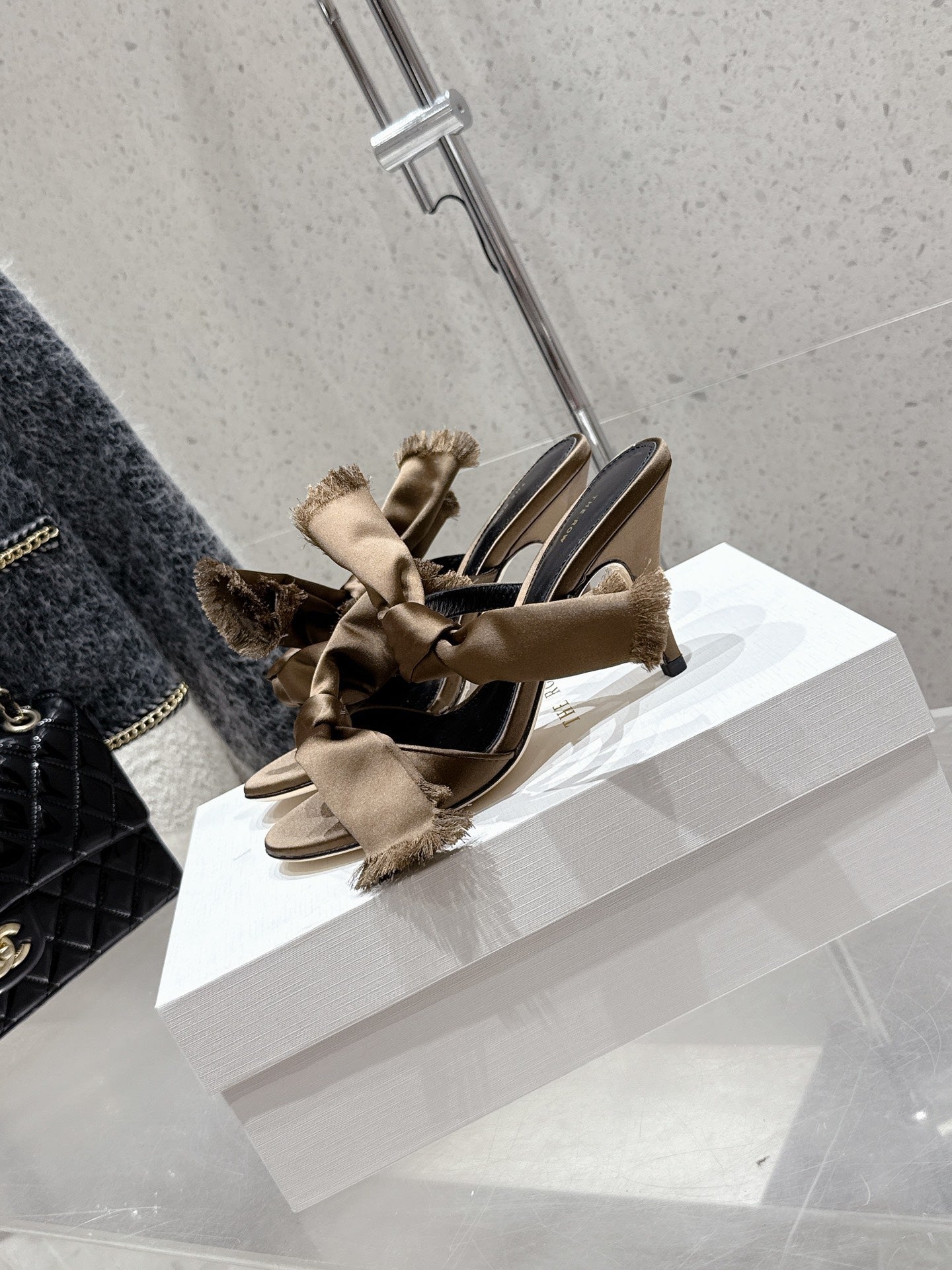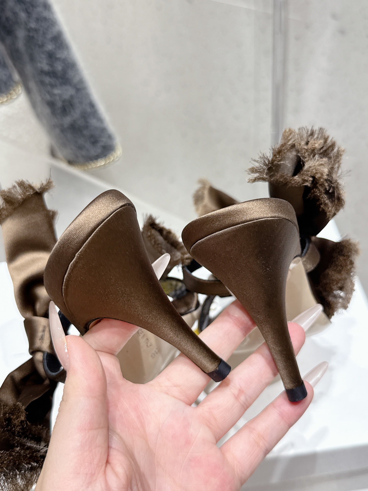 The Row Strap High Heel Mule Sandals 80mm Brown Satin And Black Sheepskin 338379