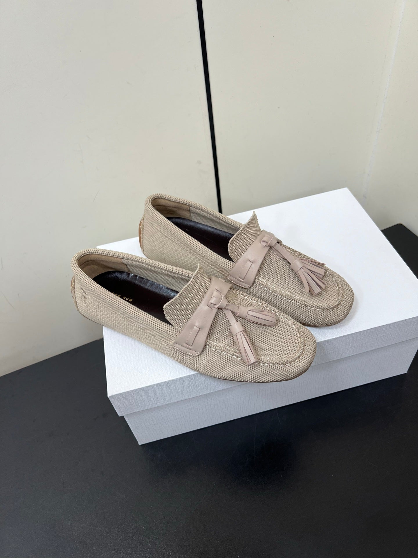 The Row Tassel-Knit Loafer Beige Canvas And Sheepskin 339995