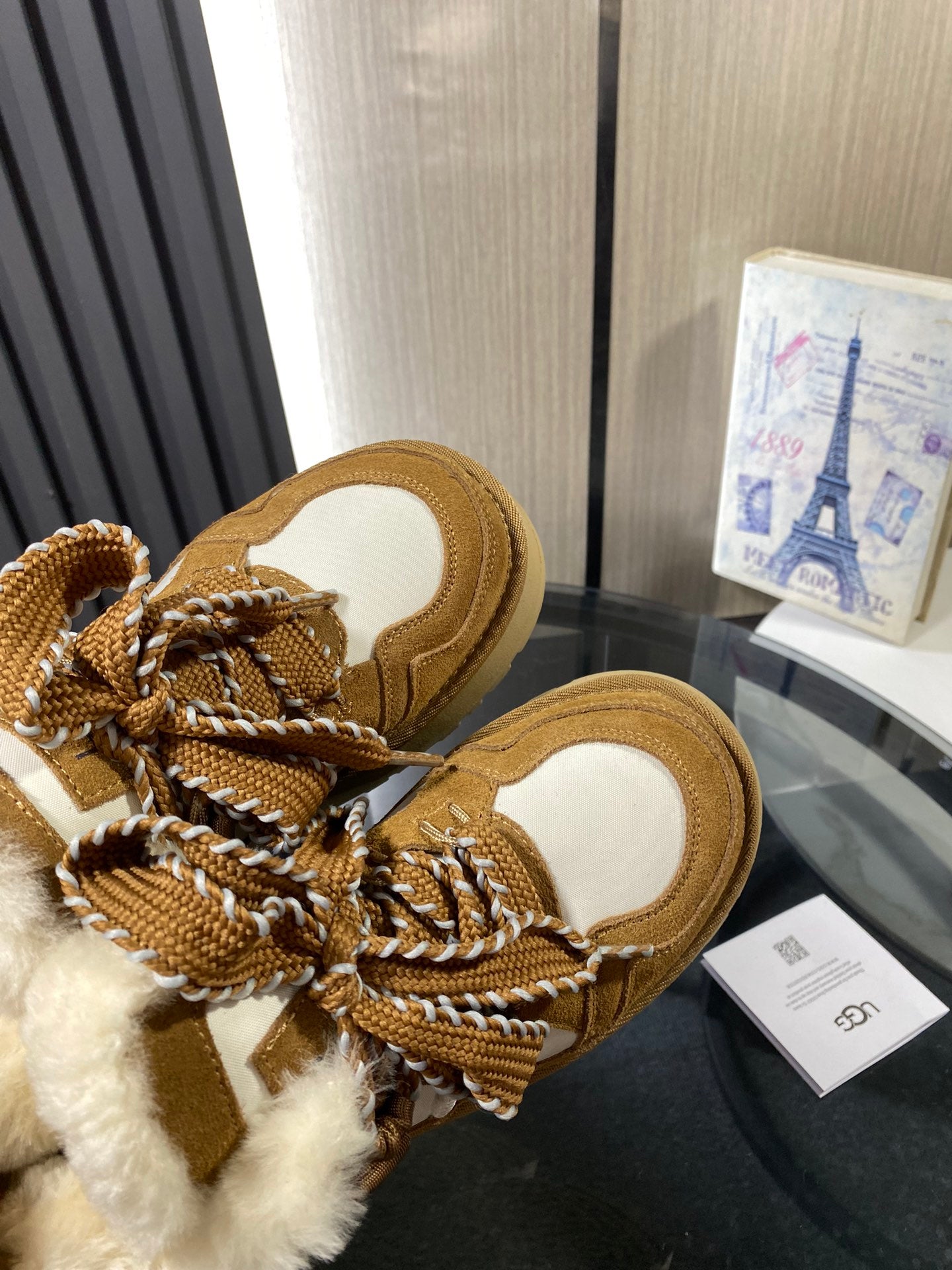 UGG Astromel Platform Sneakers White Brown Suede Frabic 512863