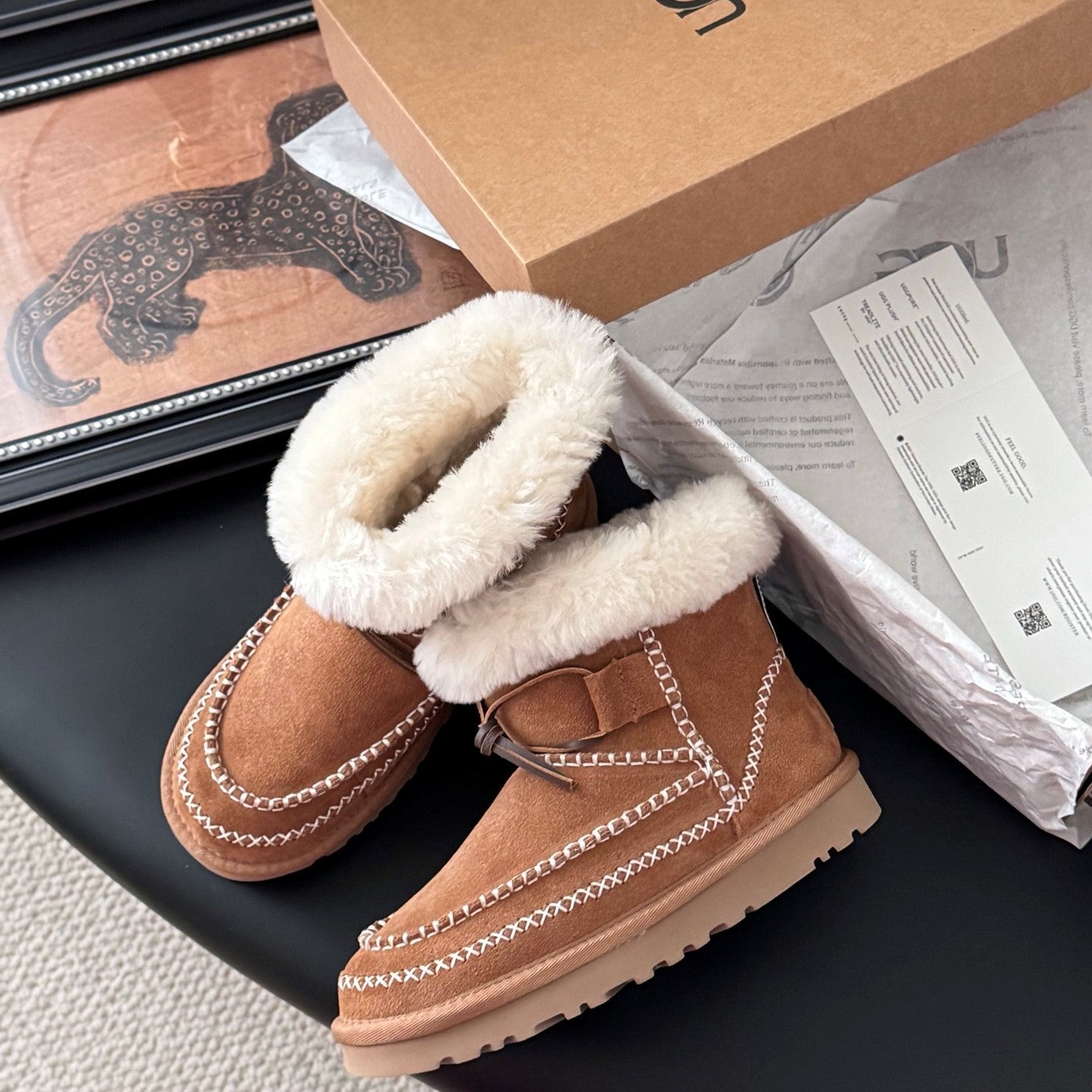 UGG Classic Ultra Mini Alpine Boots Brown White Wool Suede 508049