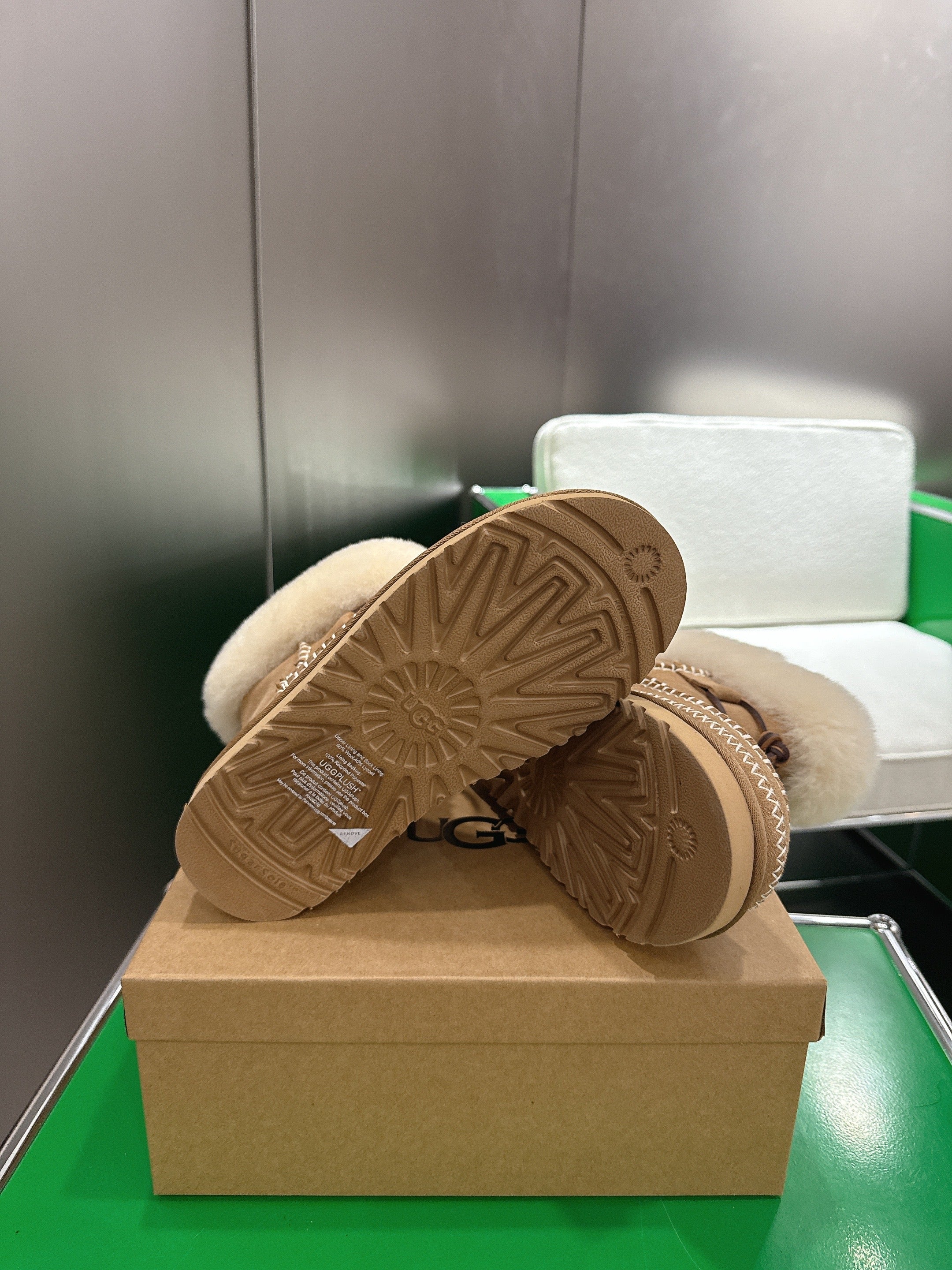 UGG Classic Ultra Mini Alpine Caramel Boots Brown White Wool Suede 507683